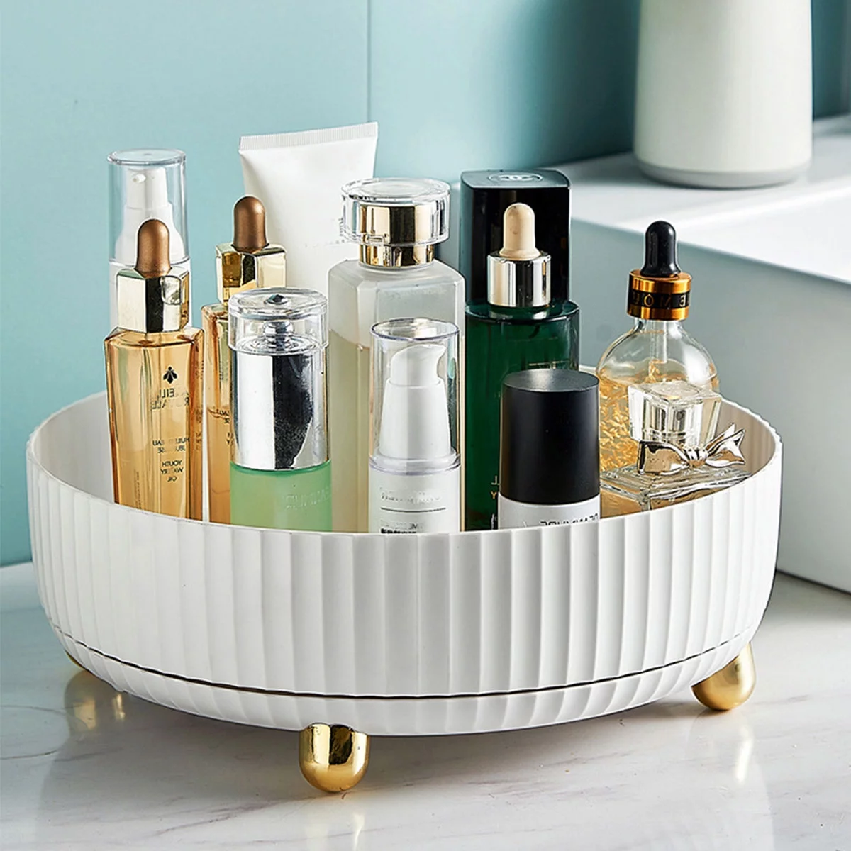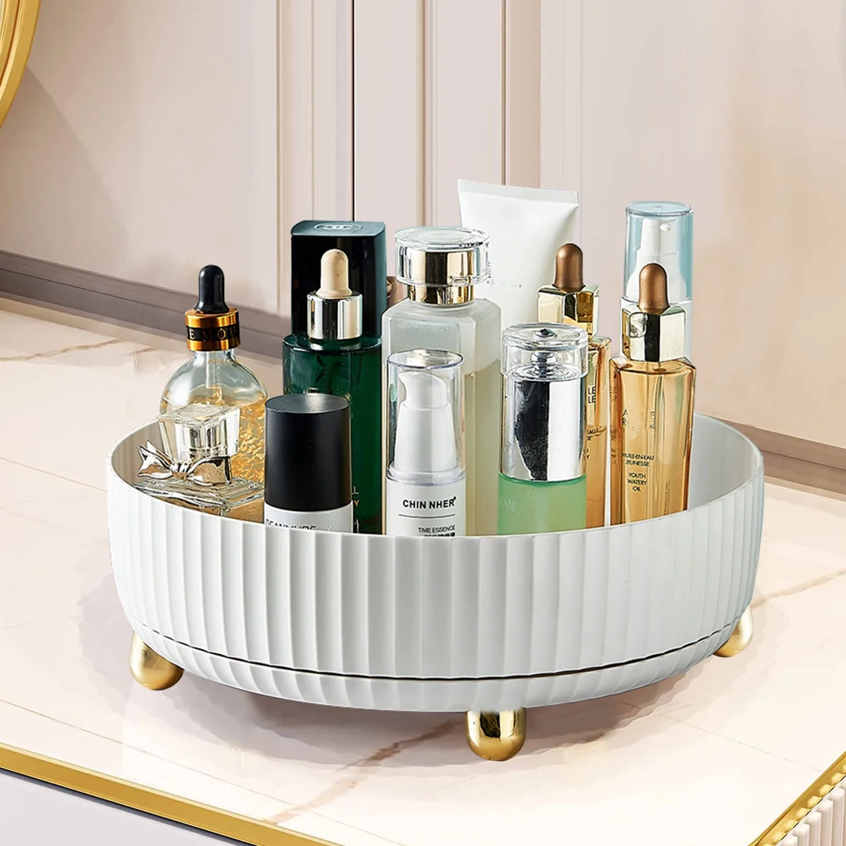 Isyunen Makeup Perfume Organizer, 360 Degree Rotating Lazy Susan Makeup Organizer Turntable Cosmetic Desk Storage Lotions Display Stand Case , for Your Jewelry