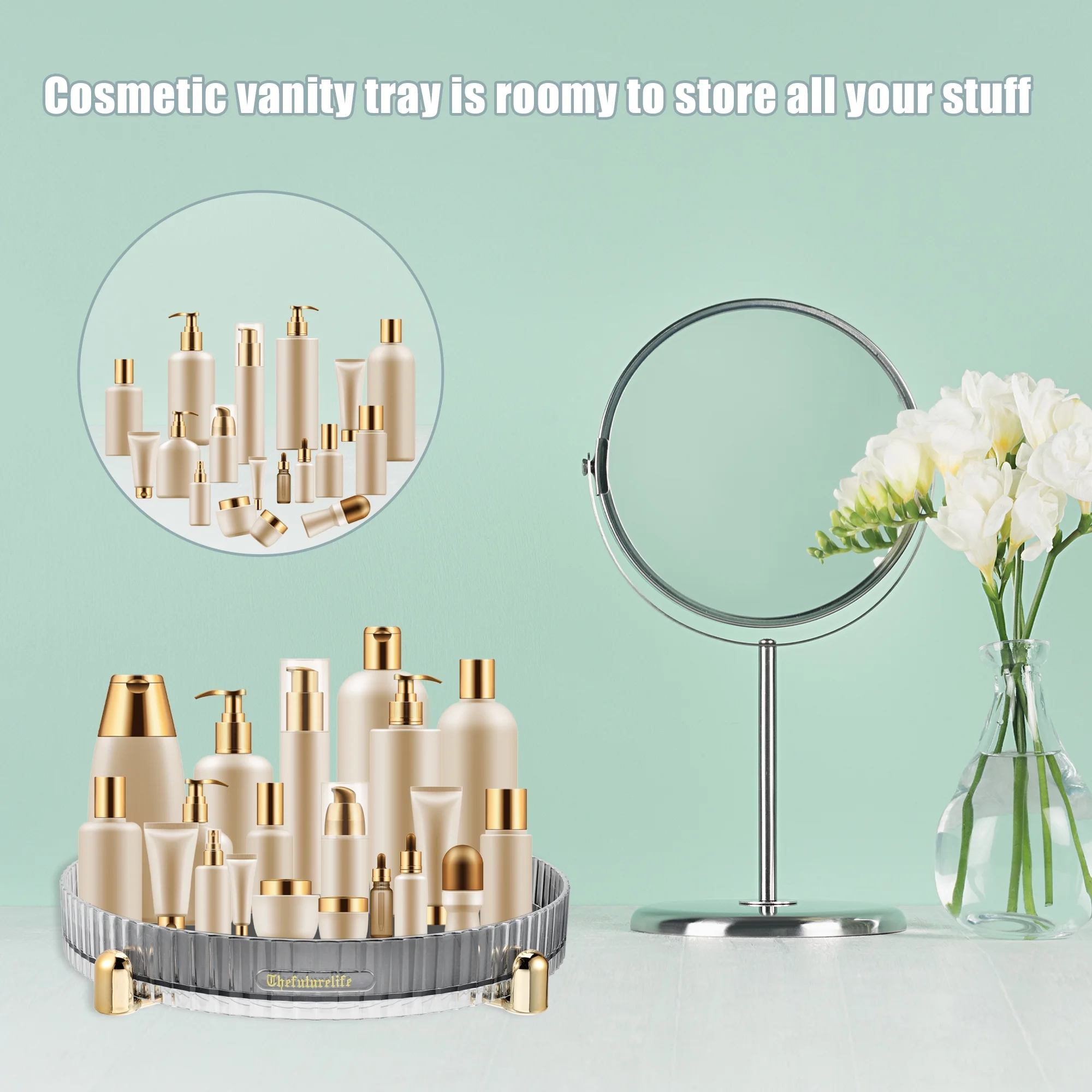 Unique Bargains Makeup Perfumes Organizer 360 Degree Rotating Tray Lazy Susan Storage Gray