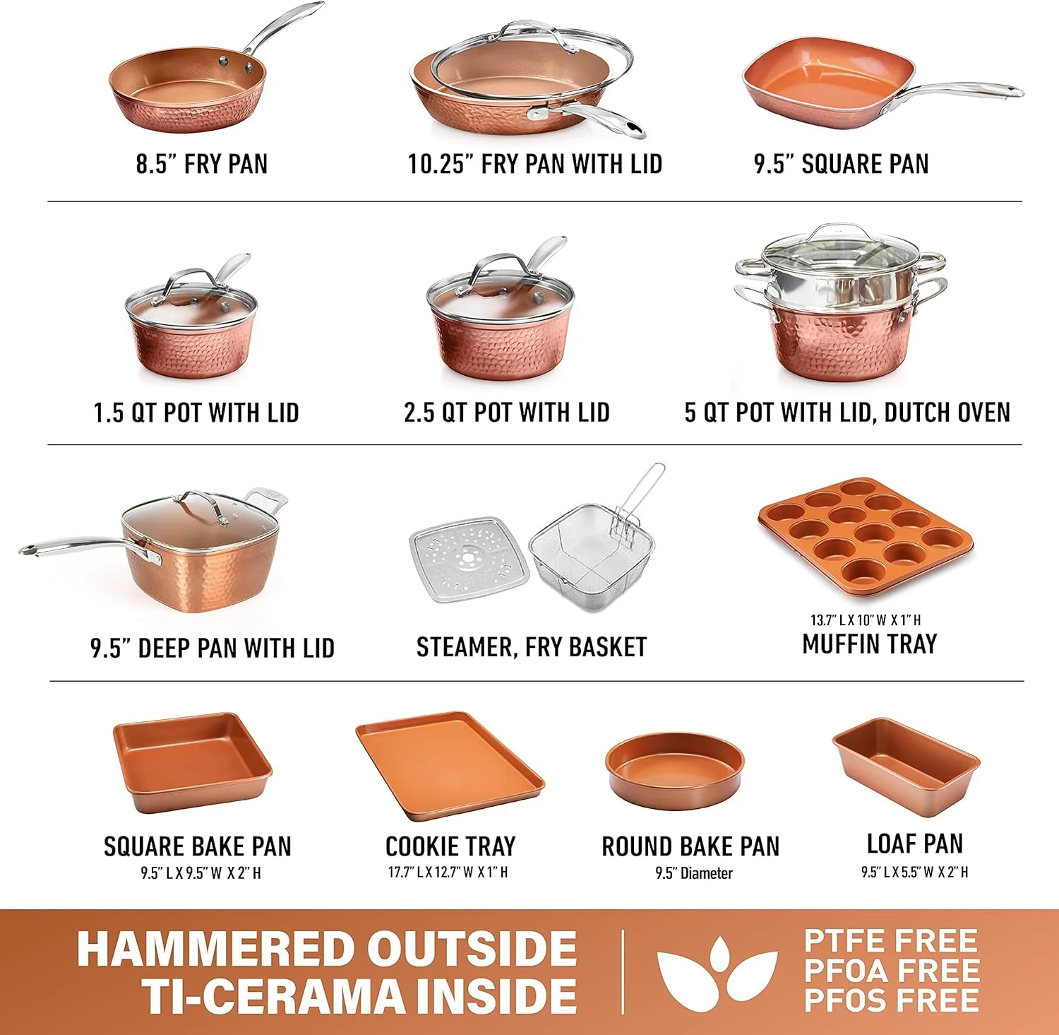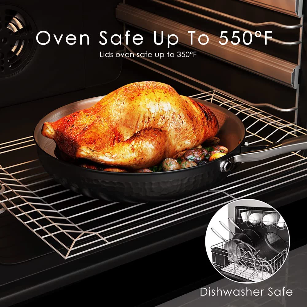 WAGEE Hammered Copper Collection – 20 Piece Premium Pots and Pans Set Nonstick Ceramic Cookware + Bakeware Set for Kitchen, Induction/Dishwasher/Oven Safe, Healthy and Non Toxic