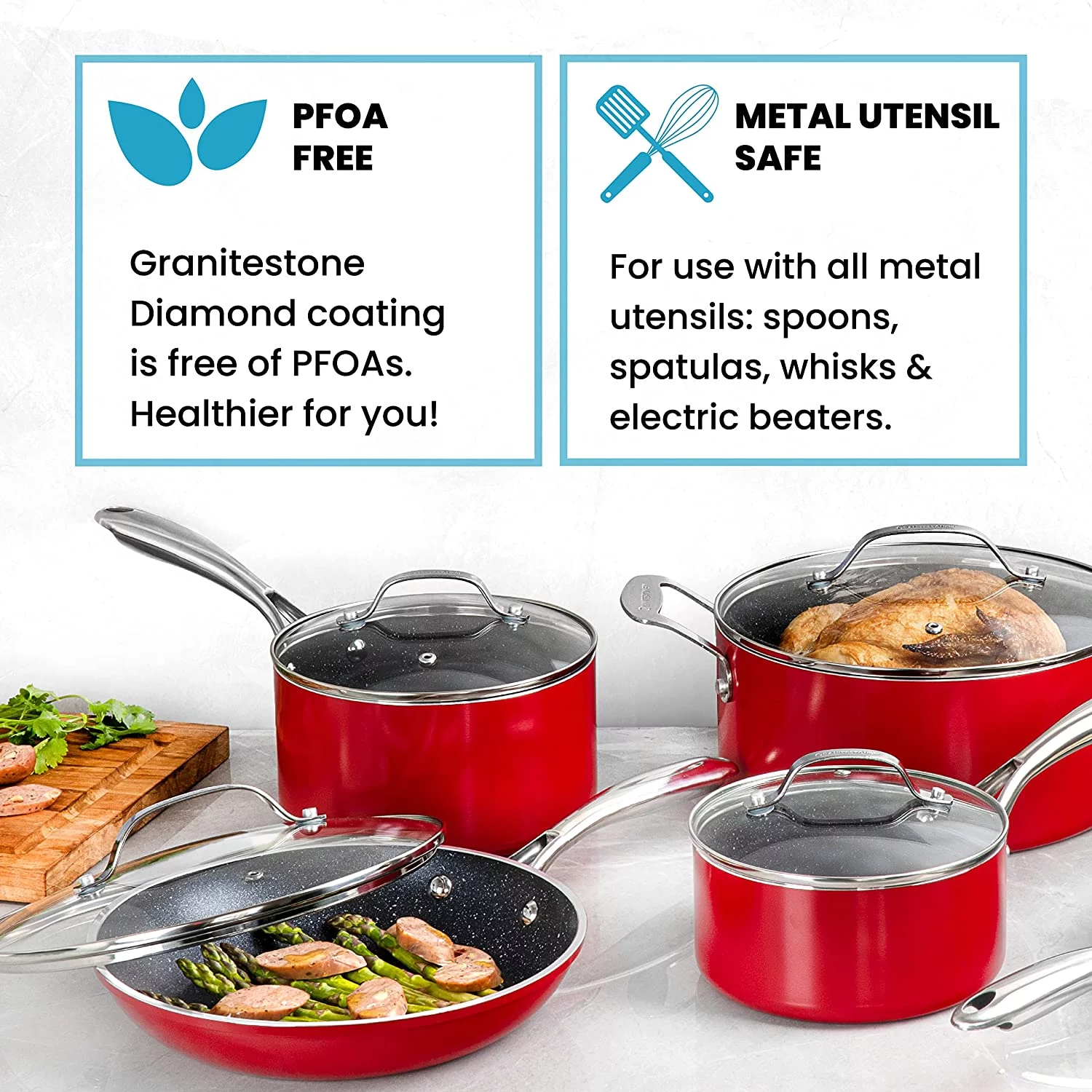 Excellent en Red Pots and Pans Set Nonstick 20 Pc Kitchen Cookware Set & Bakeware Set with Mineral & Diamond Coating Long Lasting Nonstick Ultra Durable Oven and Dishwasher Sa