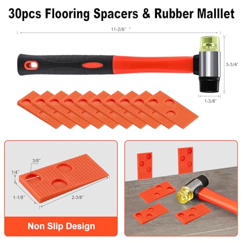 Laminate/Vinyl Flooring Tools, NAACOO Heavy Tapping Block for Vinyl Plank Floor - Knock 1-2 Times, Heavy Pull Bar, 40pc Flooring Spacers, Rubber Mallet - 4 in 1 Floor Installation Kit