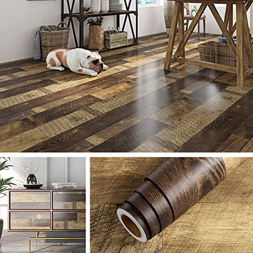 Livelynine 15.8x394 Wood Floor Contact Paper Waterproof Peel and Stick Wood Adhesive Paper for Furniture Desk Table Kitchen Countertop Covers Stick on Accent Wall Panels Rustic Vinyl Flooring Roll