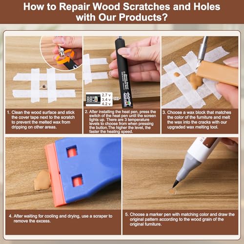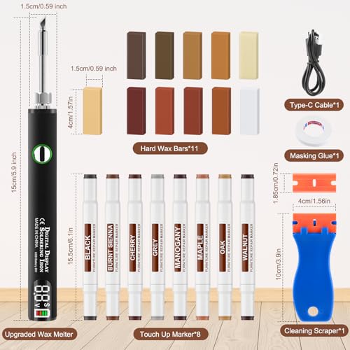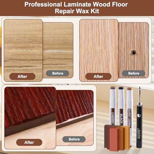 Vinyl Floor Repair Kit with Upgraded Heat Pen - 11 Colors Hardwood Wax 8 Colors Dual Tip Furniture Touch Up Markers, Laminate Flooring Scratch Repair Kit Covers Wooden Scratches, Cracks, Holes