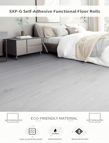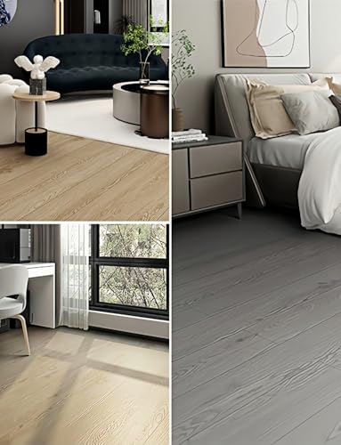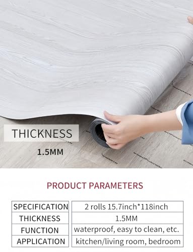 2 Rolls 15.7'' Wide Peel and Stick Floor Tiles FOGZUVR: 25.73 Sq.ft Self-Adhesive Thick Vinyl Flooring, Durable Waterproof Wood Grain Large Plank for Bathroom & Kitchen (Paleish Grey, 118''x15.7'')