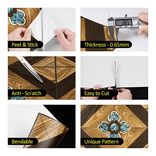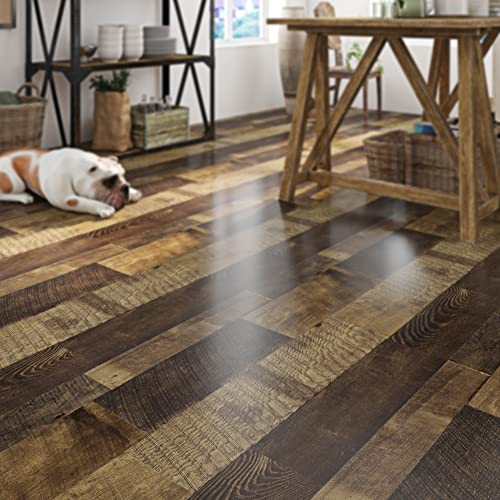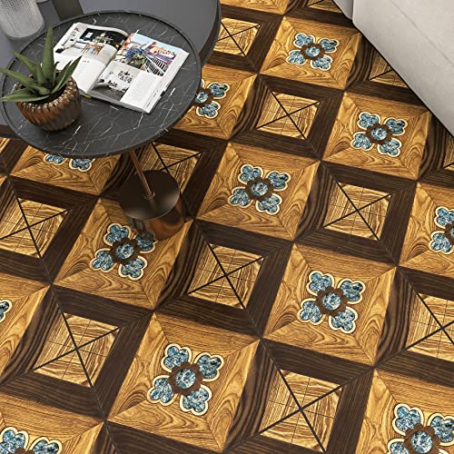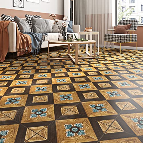 FunStick Vinyl Flooring Peel and Stick Floor Tile Vintage Sevilla 12x12 in 15 Pack Brown Wood Sticky Floor Tiles Peel and Stick Waterproof Stick on Laminate Flooring for Bathroom Kitchen Camper Walls