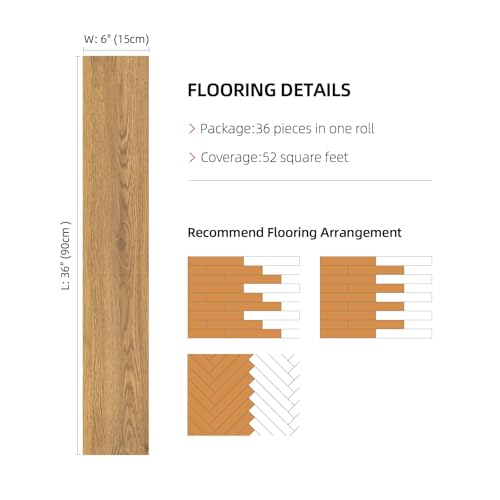 Decotalk 36 Pack 52 Sq.Ft Peel and Stick Tiles Vinyl Wood Flooring Planks, Bathroom Floor Tile Peel and Stick Waterproof, Wood Grain Tile Floor Laminate Flooring Adhesive