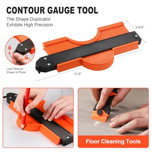 Saker Laminate Flooring Tools, 65-Piece Wood Flooring Installation Kit with 60 Flooring Spacers,Tapping Block with Handle, Pull Bar, 10”Contour Gauge, Rubber Mallet, Tape Measure