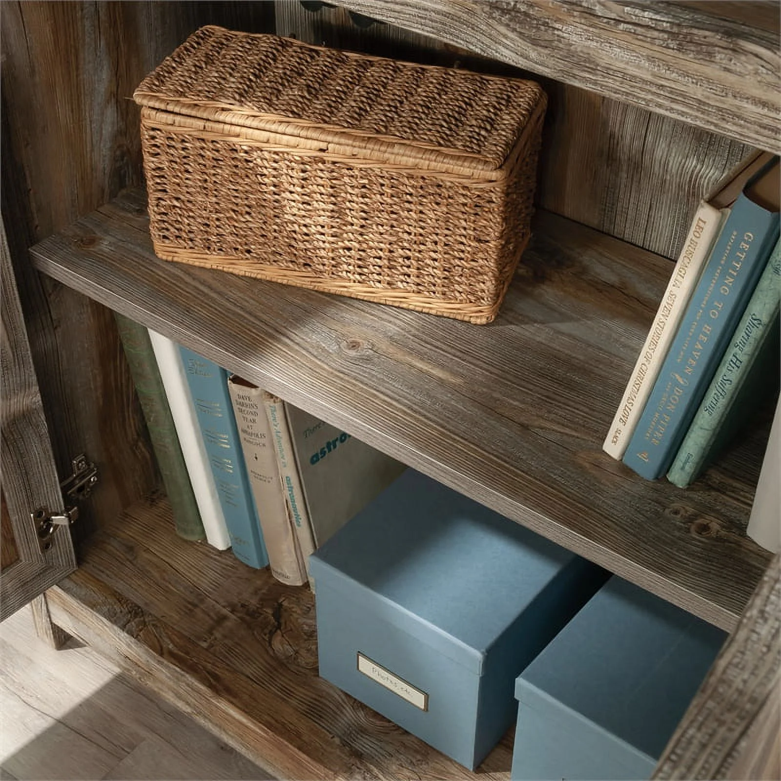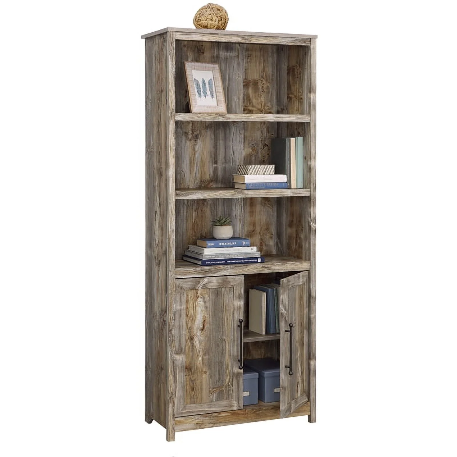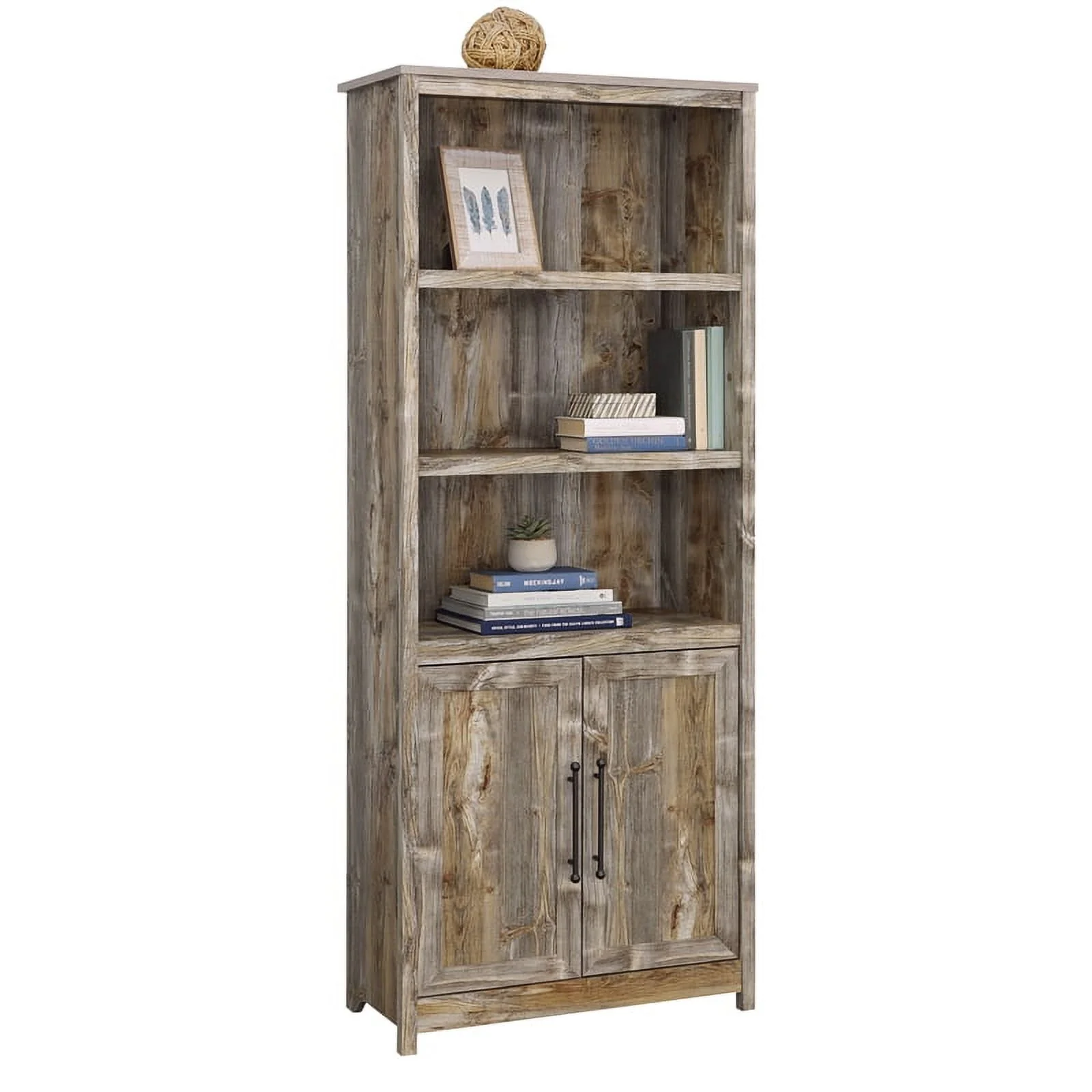 Sauder Granite Trace Engineered Wood Library with Doors in Rustic Cedar/Brown