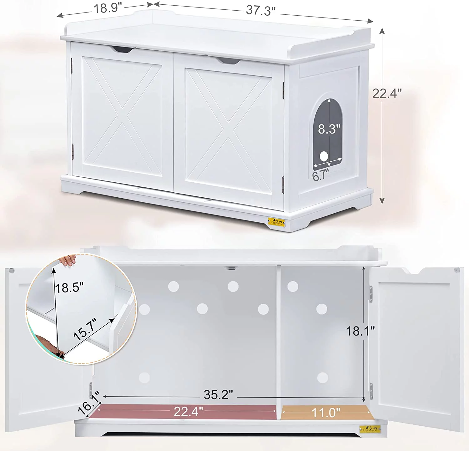 Coziwow Cat Litter Box Enclosure Washroom Storage Bench Cat House Furniture, White