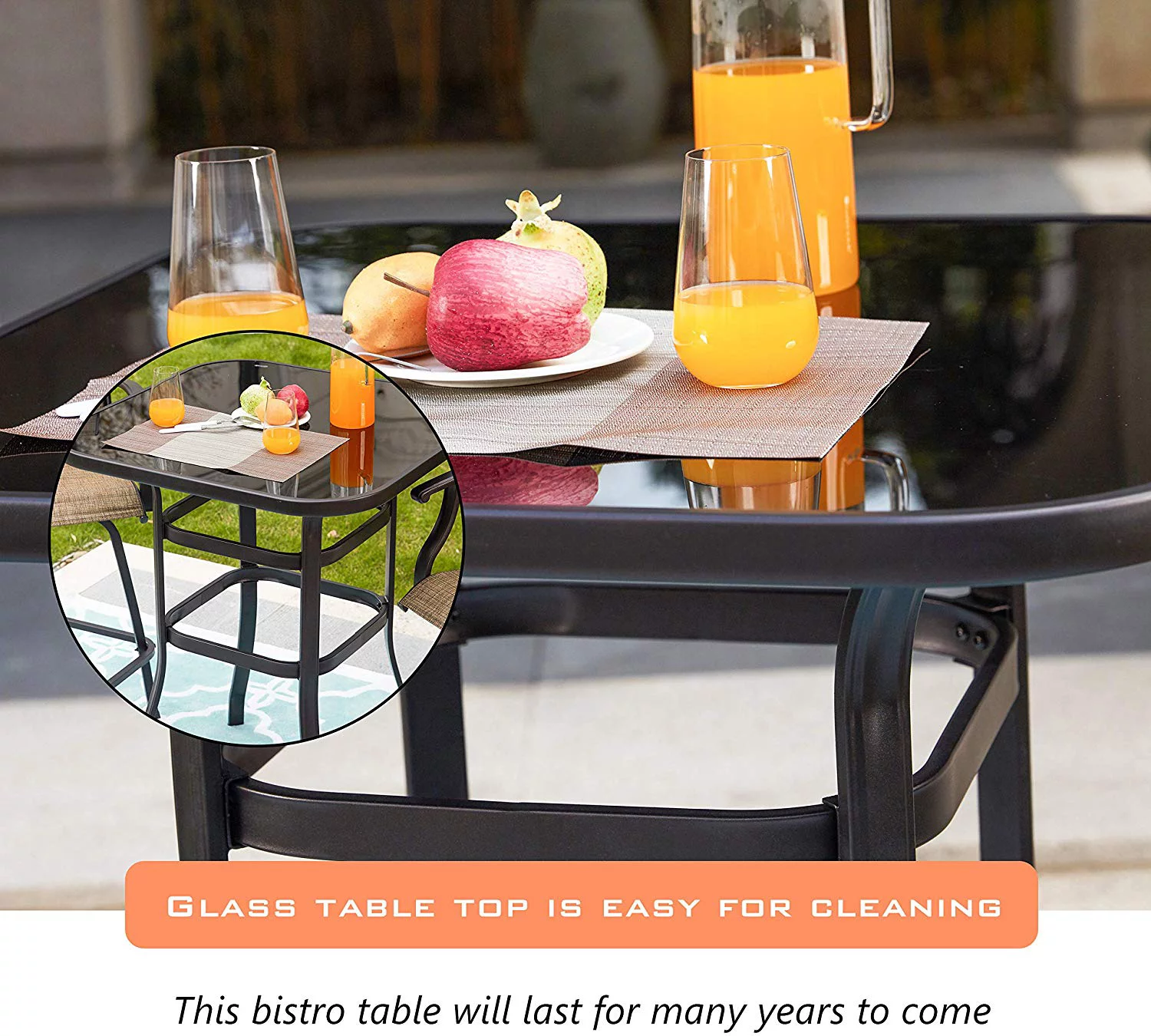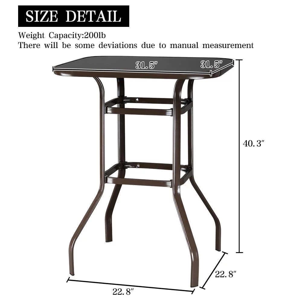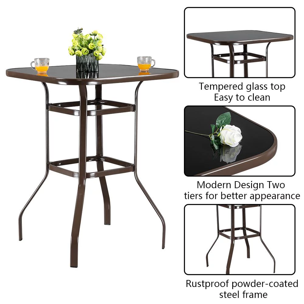 SalonMore Square Glass 32" x 40" Dining Table Brown, Outdoor