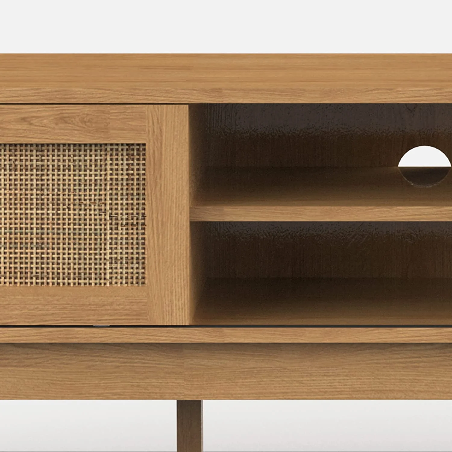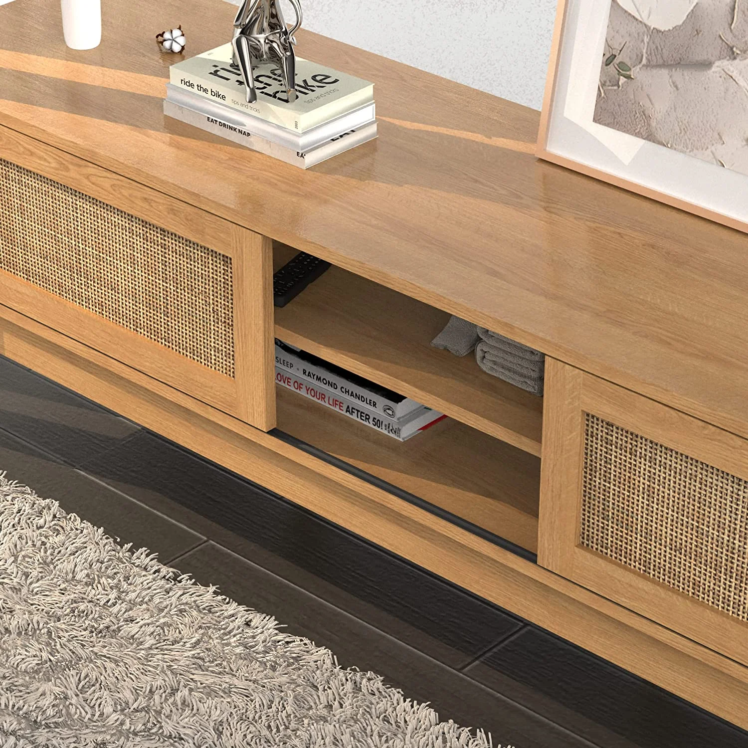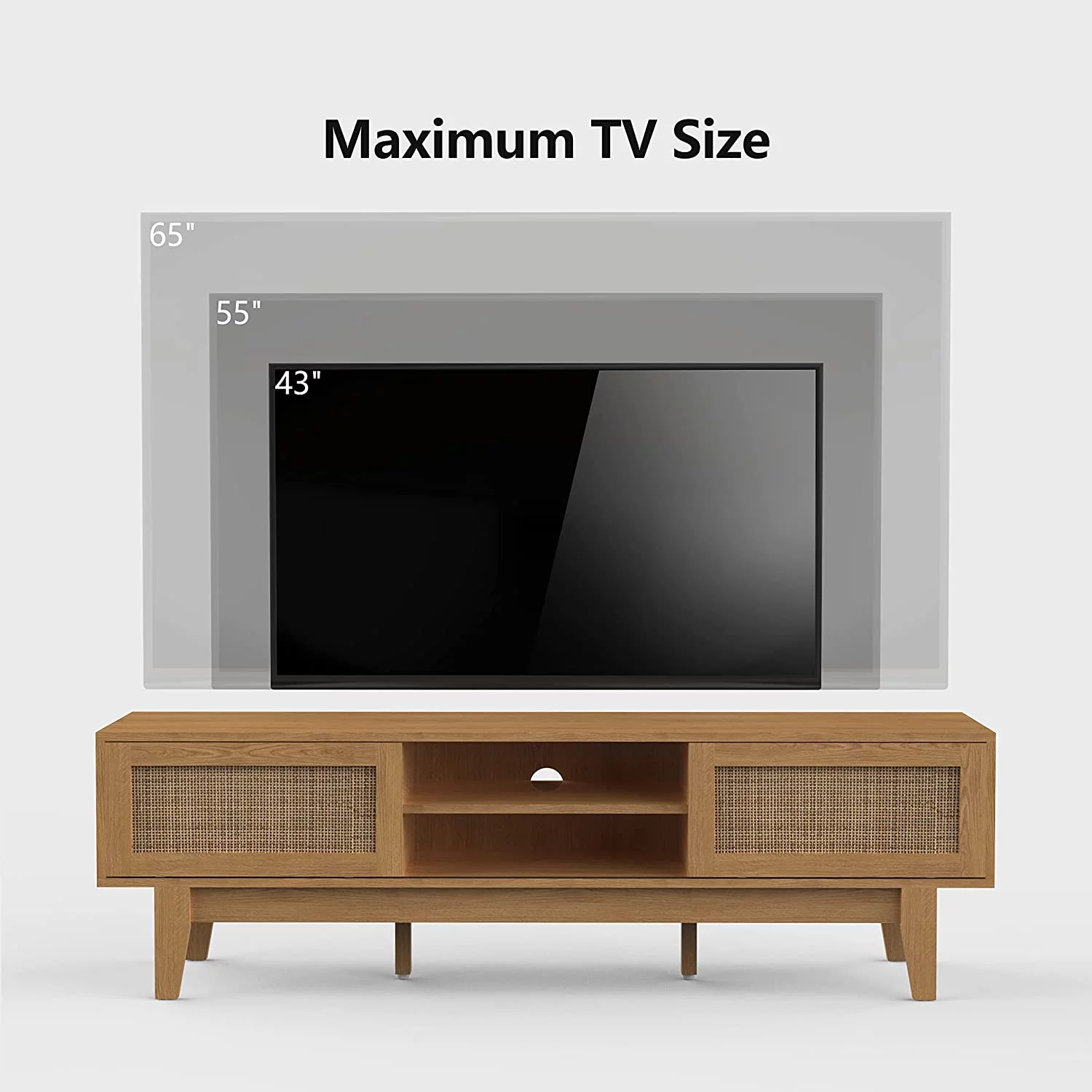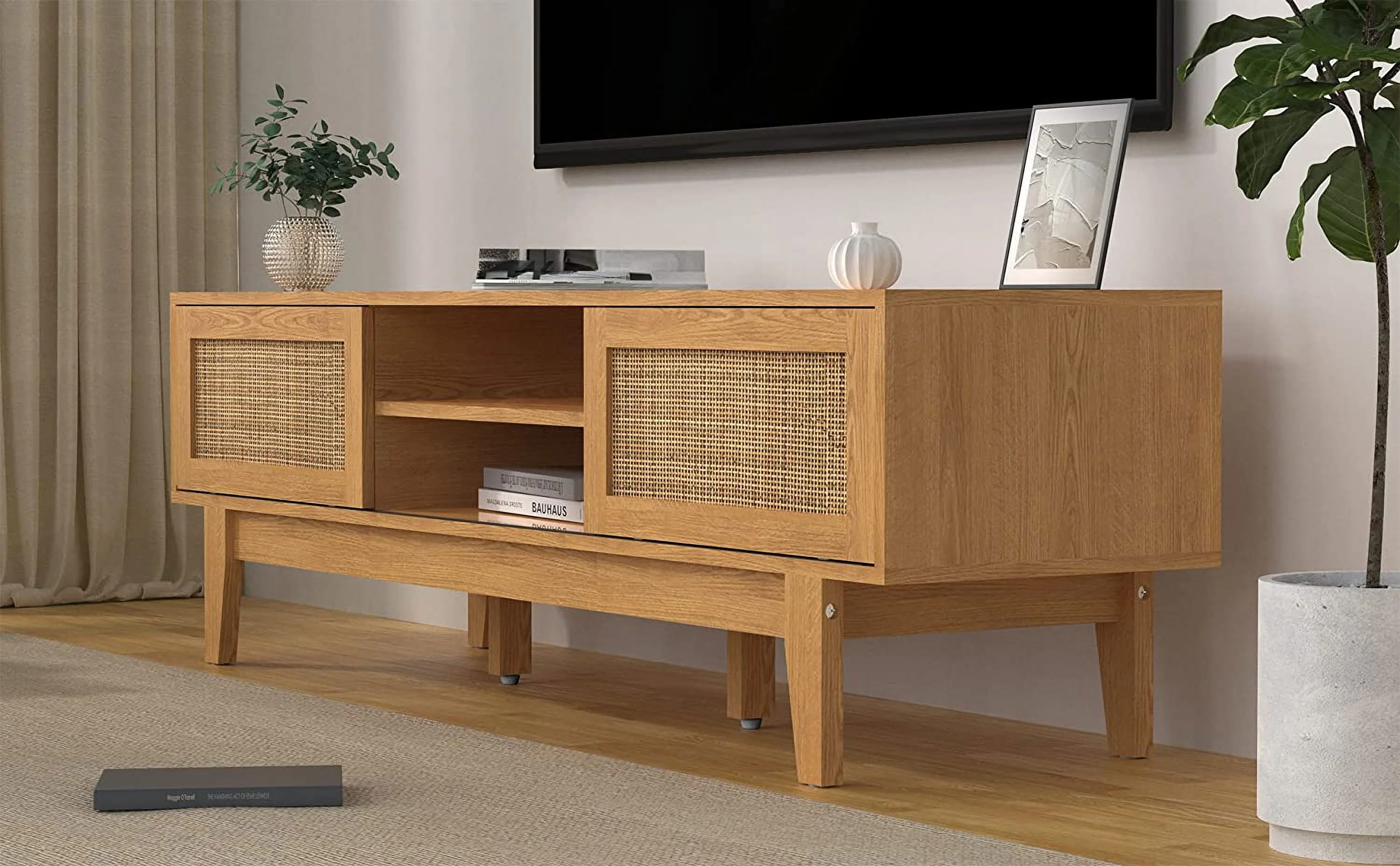Popular TV Stand with Rattan Sliding Doors Low Profile Television Stands for TVs up to 65 Inches TV Modern Farmhouse Boho Home Media Console for Living Room Bedroom 59 Inch
