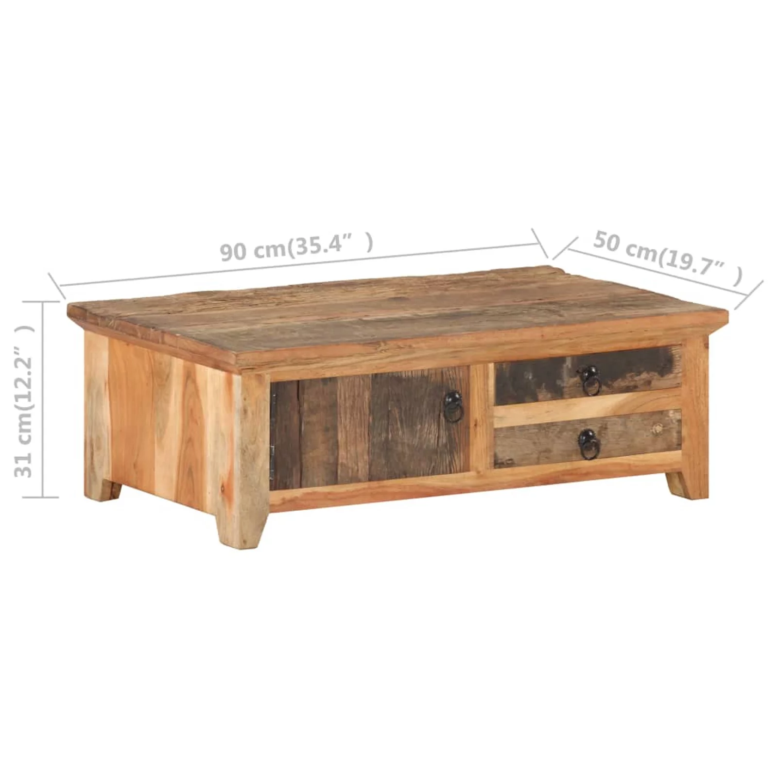 Dcenta Coffee Table with Door and 2 Storage Drawers Reclaimed Wood Sofa and Couch End Side Table for Living Room, Home Furniture 35.4 x 19.7 x 12.2 Inches (L x W x H)