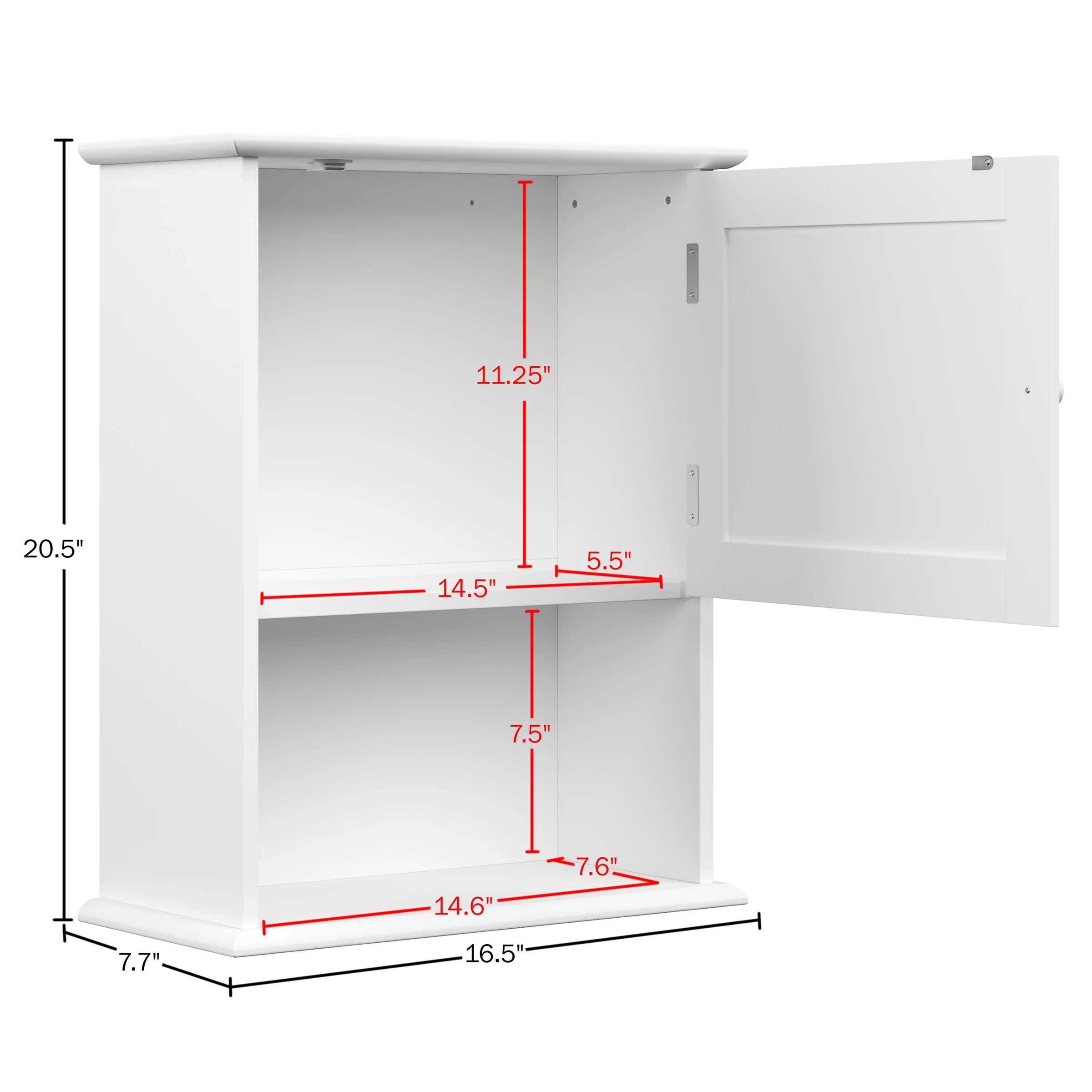 Lavish Home Wall-Mounted Storage Cabinet with Open Shelf, White