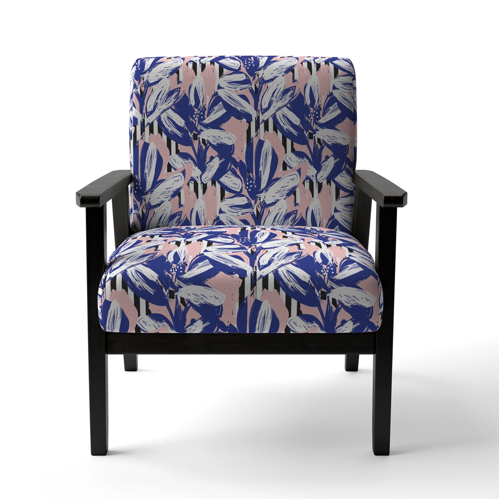 Designart "Pink and Blue Floral Striped" Upholstered Patterned Accent Chair and Arm Chair