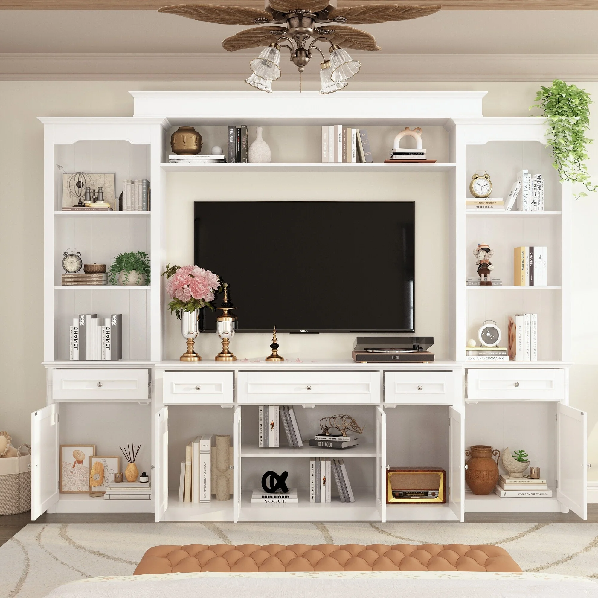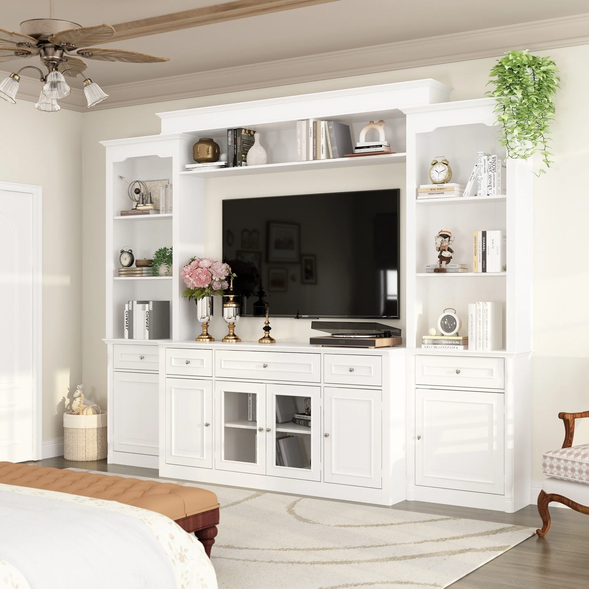 104.3"x82.3" Complete Entertainment Wall Unit White TV Stand Display TV Stand