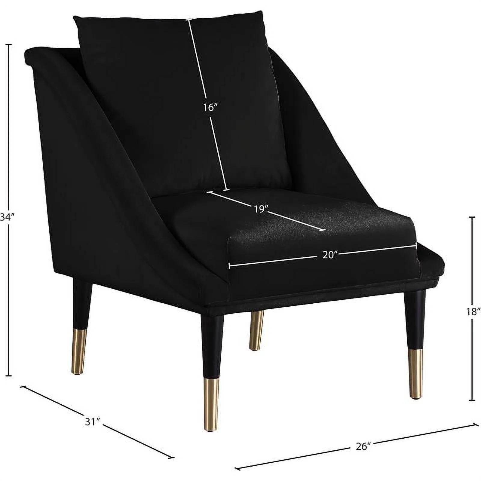 Pemberly Row Contemporary Velvet Accent Chair in Soft Black/Black/Gold
