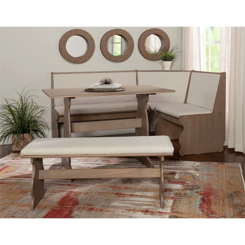 Pemberly Row Transitional Wood Corner Nook Dining Set in Brown