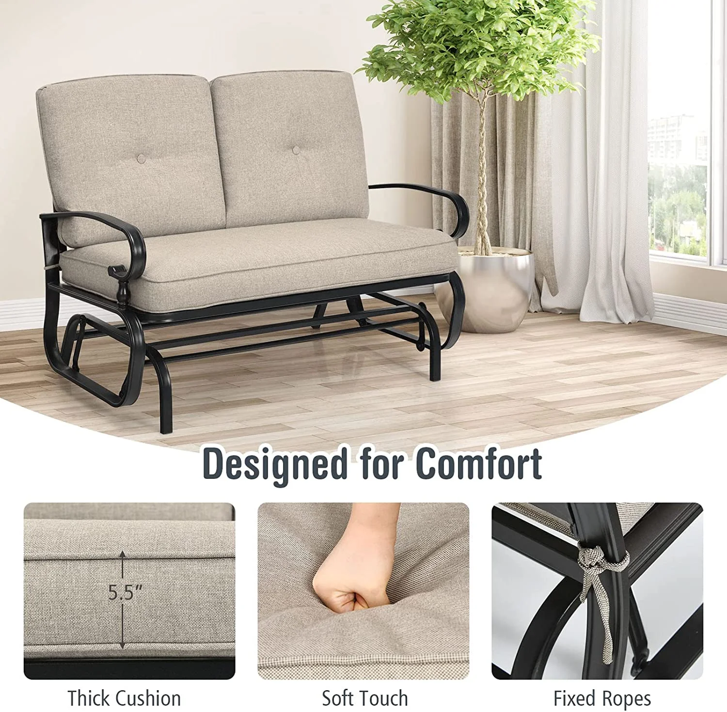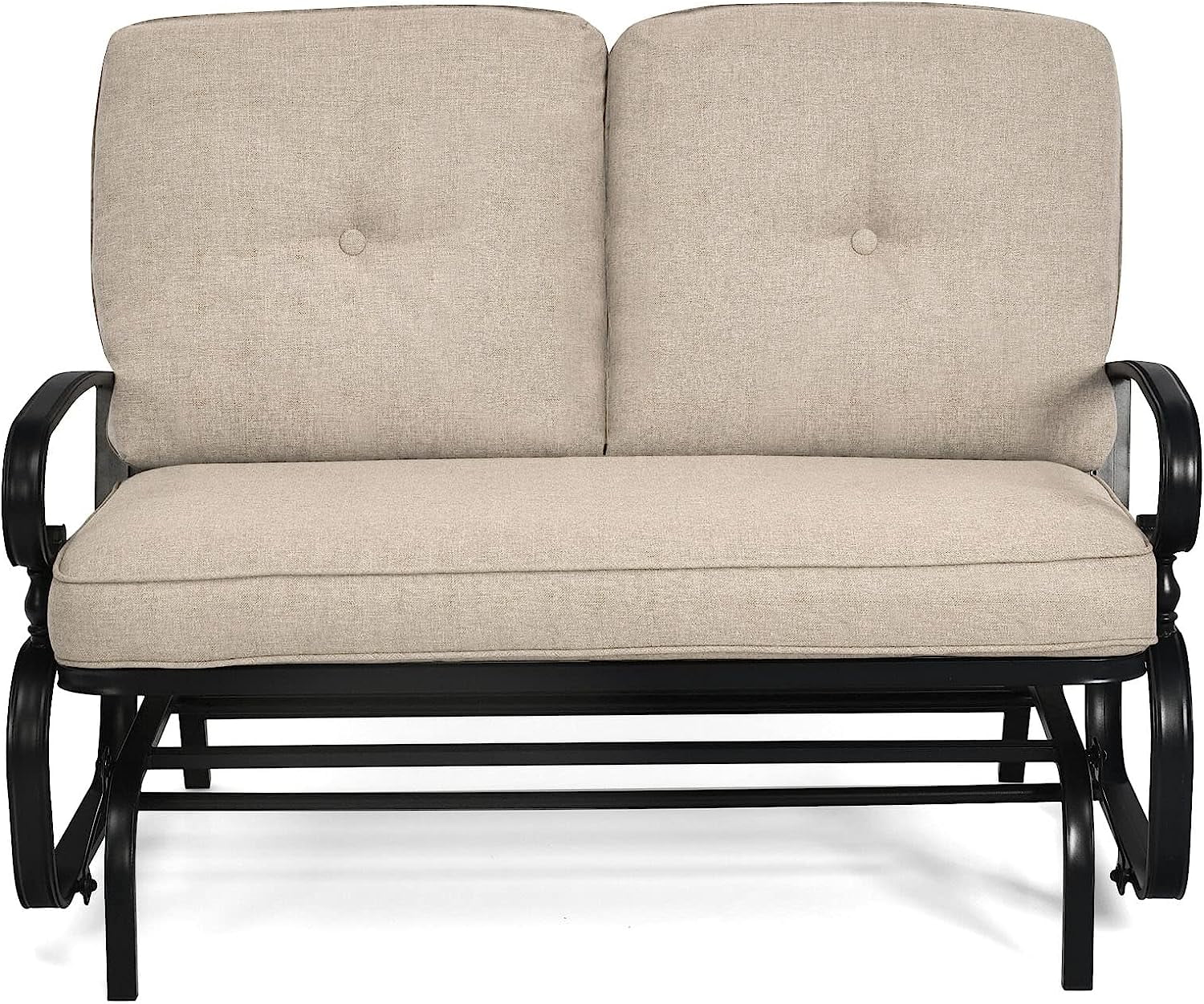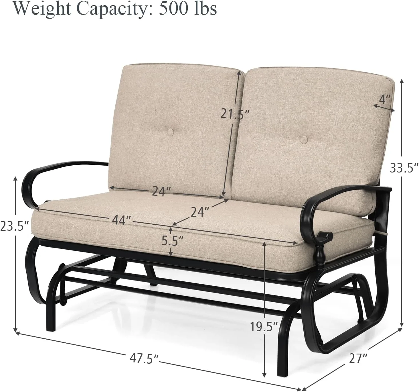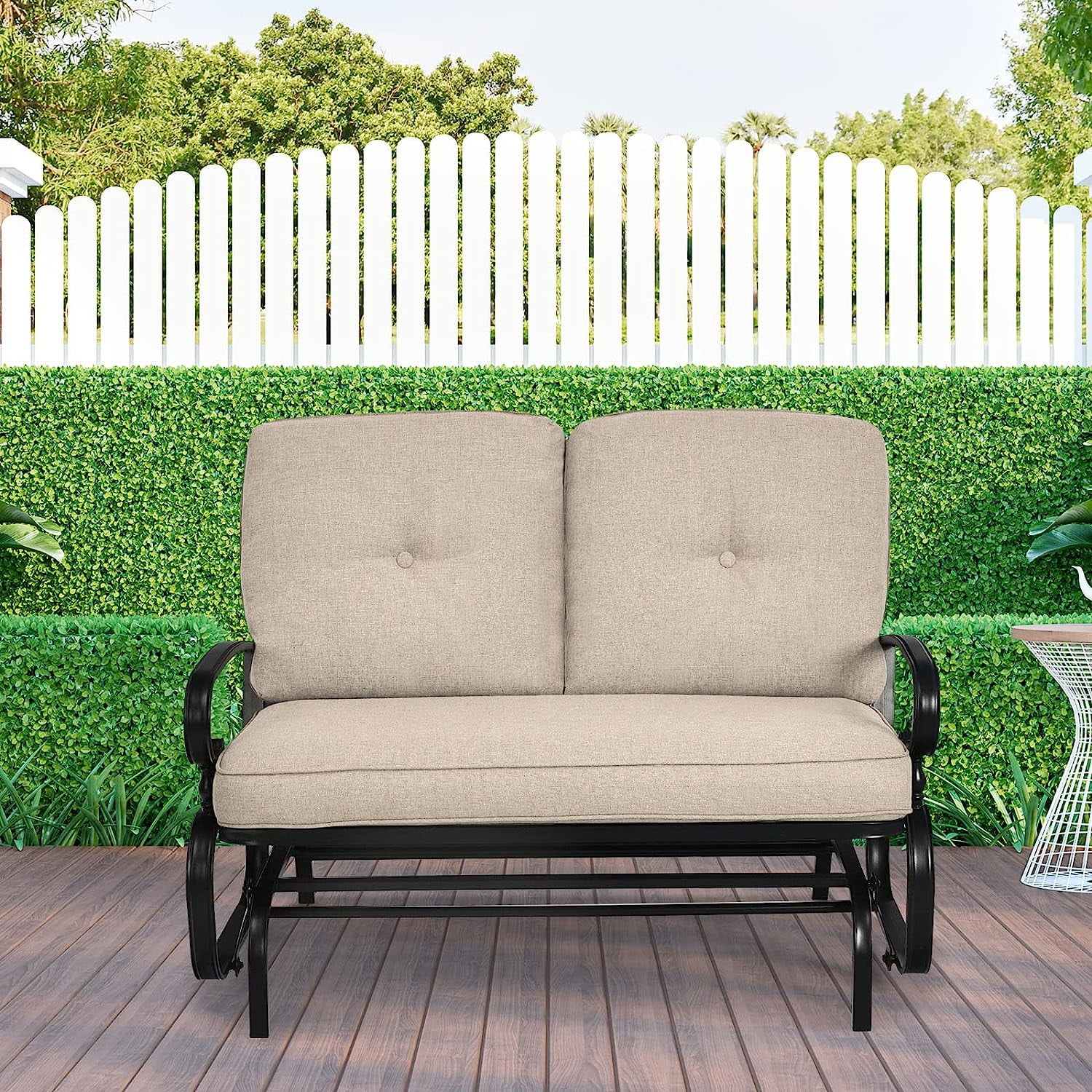 Outdoor Glider Bench Patio Loveseat with Cushions, 2-Person Outdoor Rocking Chair, Porch Glider Swing for Garden, Backyard, Poolsise, Patio Seating Rocker (Beige)