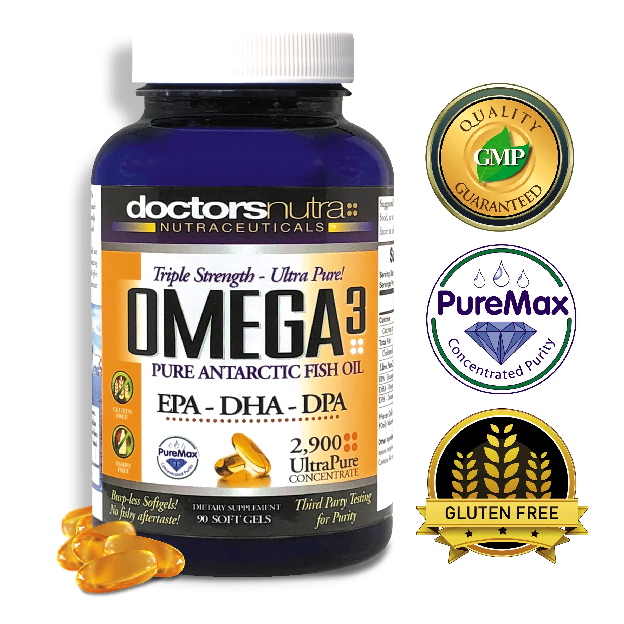 (Pack of 2) Natural Wild Omega 3 DPA Fish Oil Supplement by Doctors Nutra Nutraceuticals - 2,900 Milligrams Triple Strength Ultra Pure Concentrated, EPA-DPA-DHA, Soft-Gels with no Fish-Tasting Burps