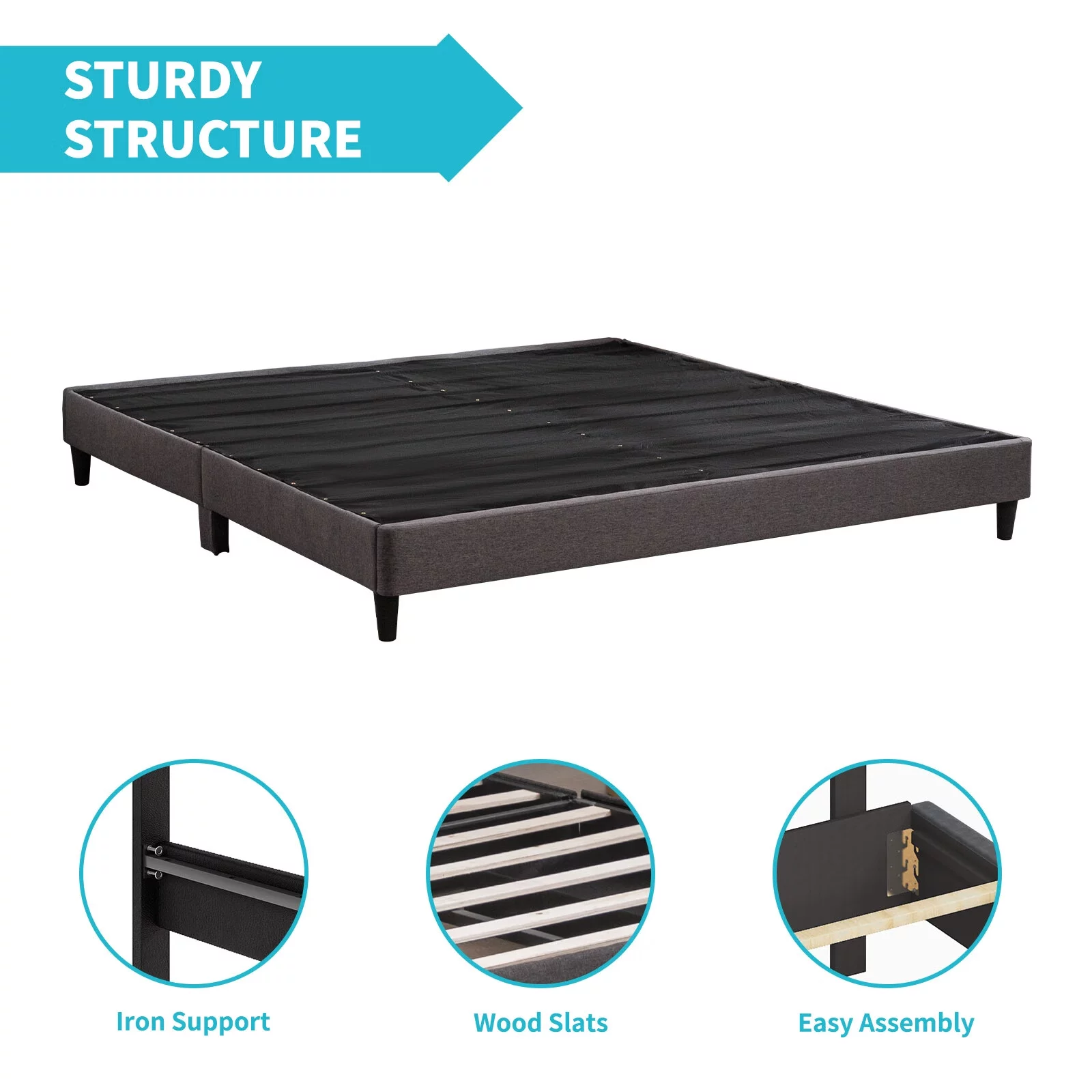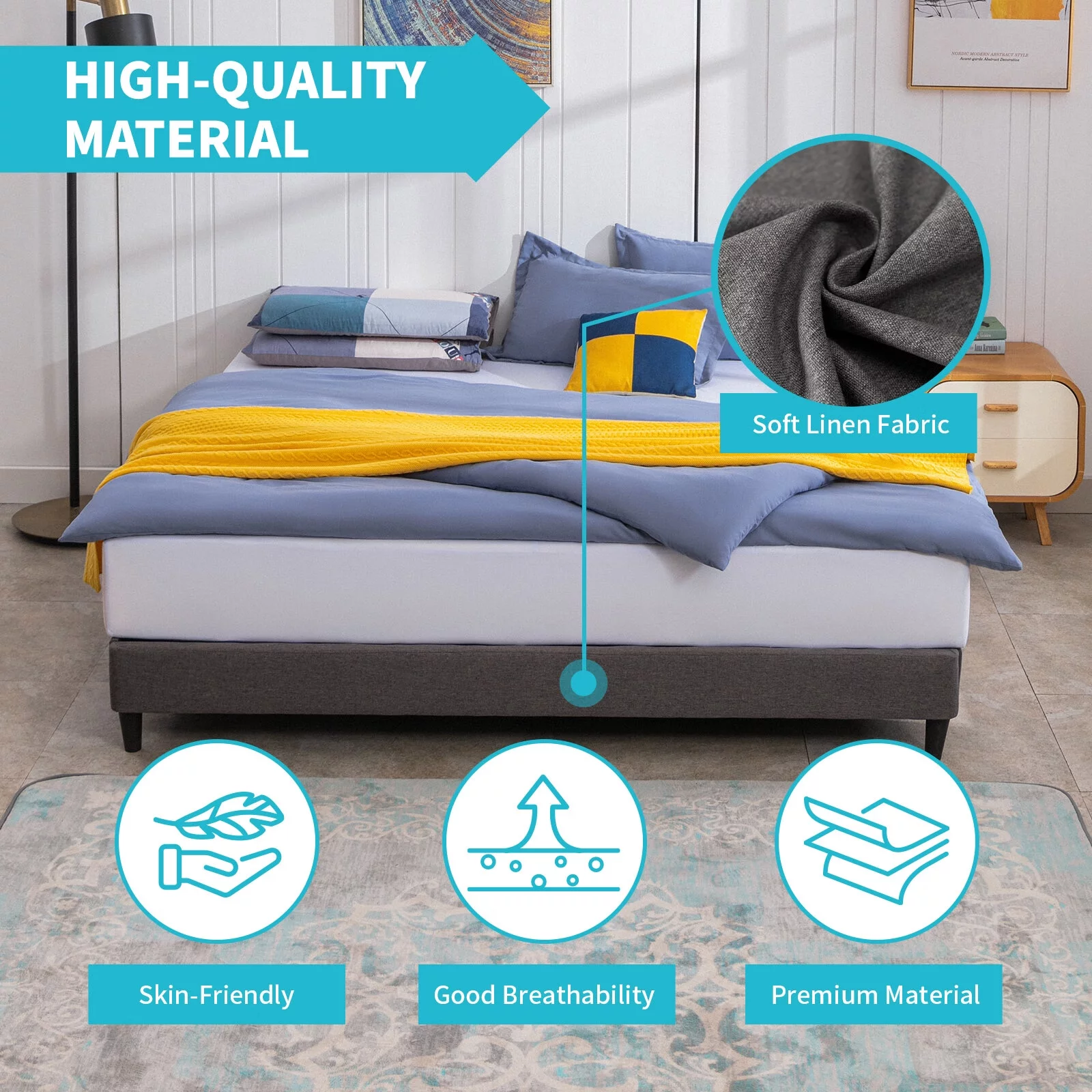 CECER California King Size Bed Frame, Linen Platform Bed Frame with Wood Slat Support, Wooden Bed Frame, Easy Assembly, Dark Grey