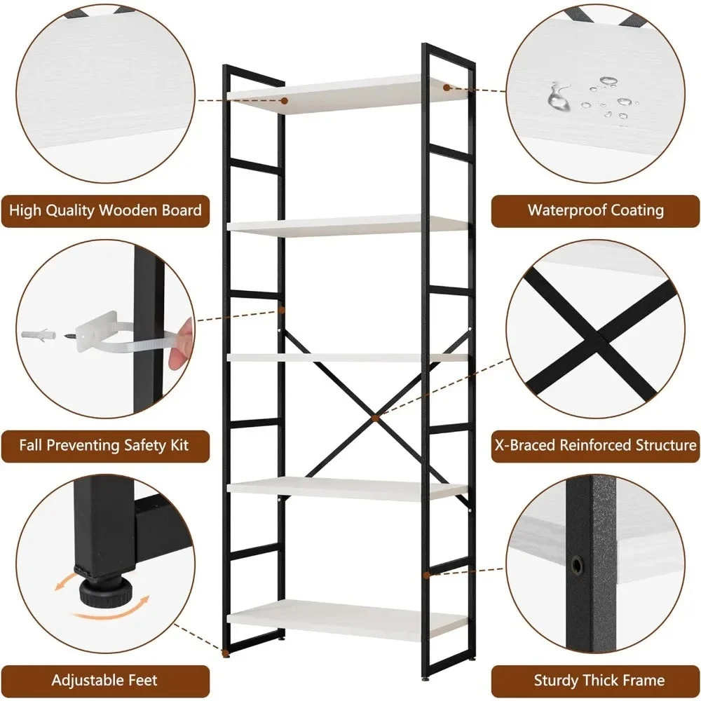Classically Tall Bookcase Shelf 2 Pieces 5 Tiers Bookshelf Industrial Book Rack Librero Storage Furniture Living Room Home