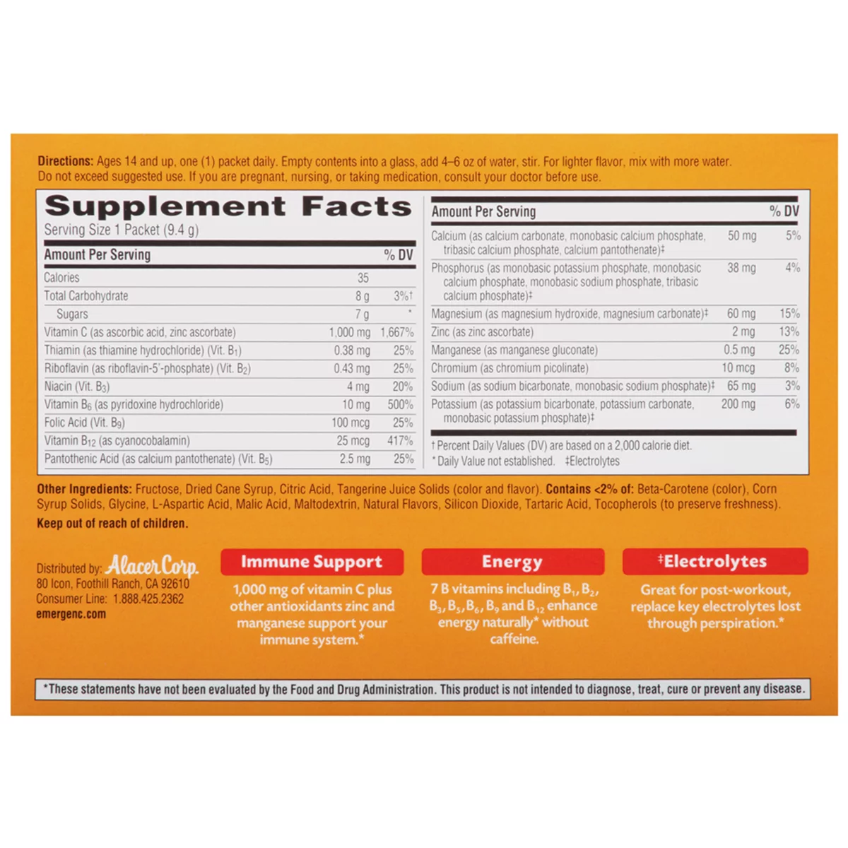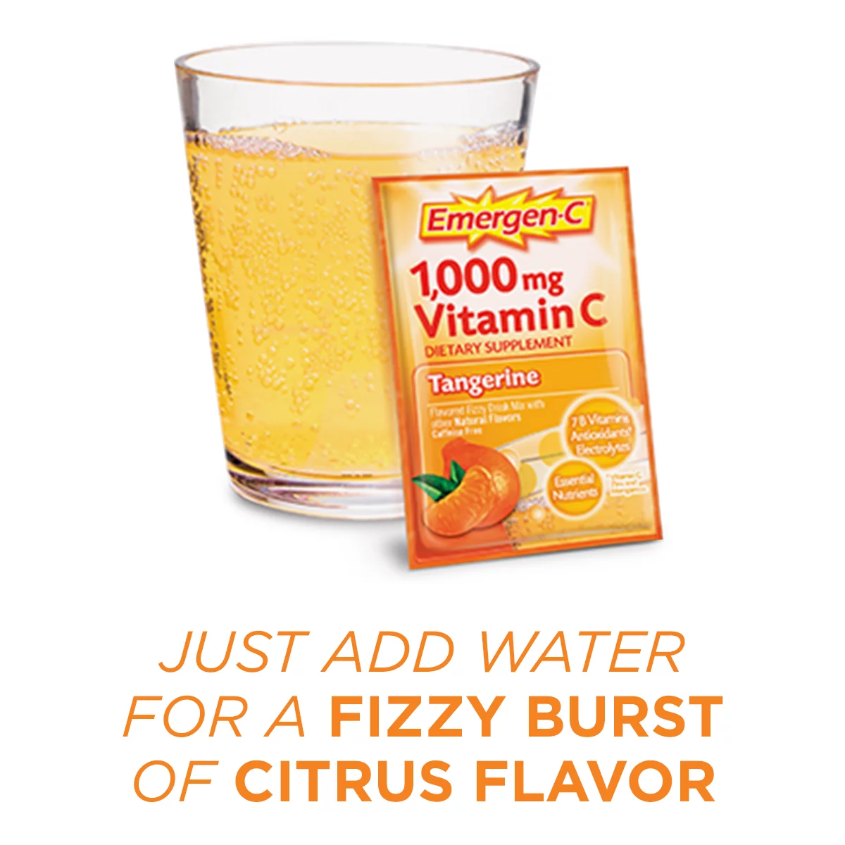 Emergen-C (30 Count, Tangerine Flavor) Dietary Supplement Drink Mix with 1000 mg Vitamin C, 0.33 Ounce Packets, Caffeine Free