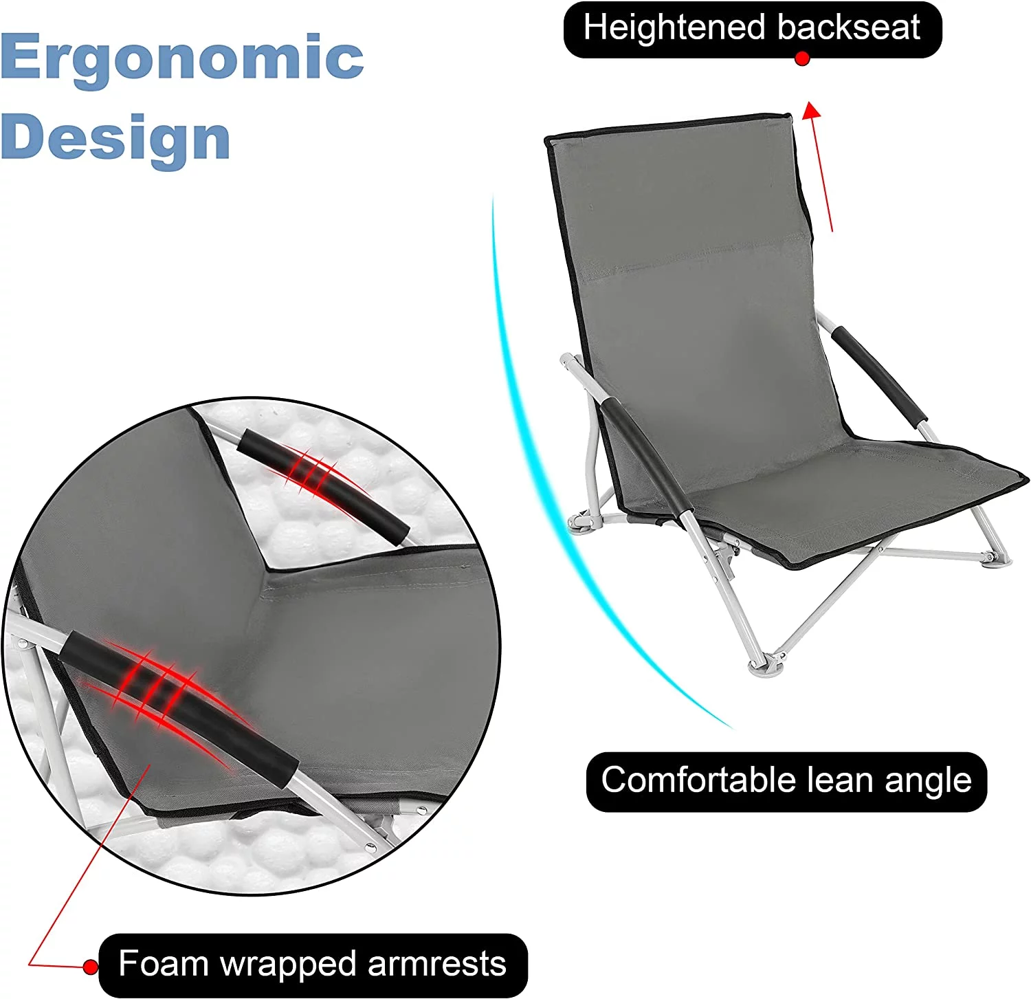 YSSOA Beach Camping Folding Adults with Carry Bag︱Low Profile, Lightweight, Portable Chair for Outdoor , 1-Pack