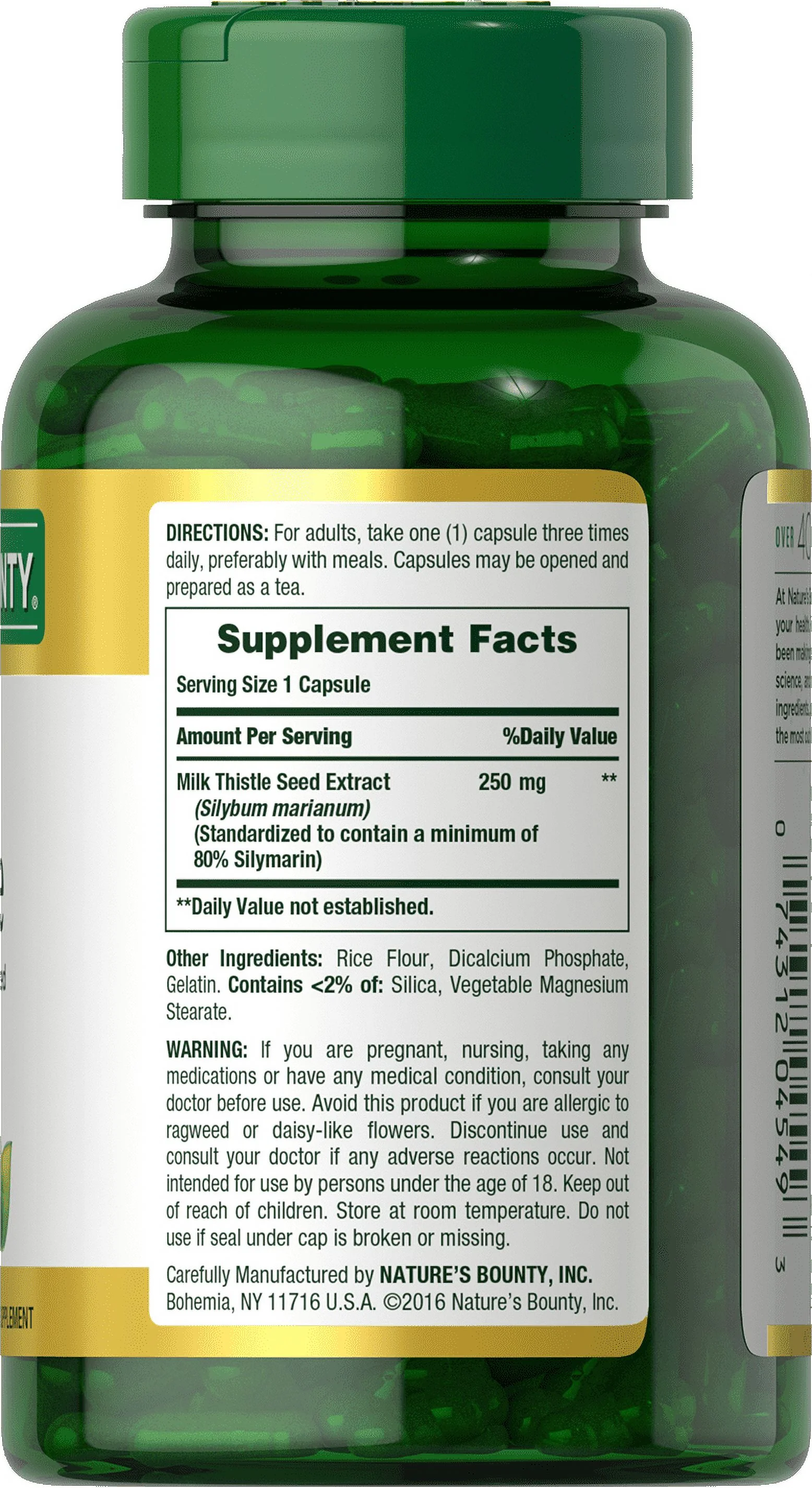 Nature's Bounty Milk Thistle 250 mg Capsules for Liver Health Support, 200 Ct