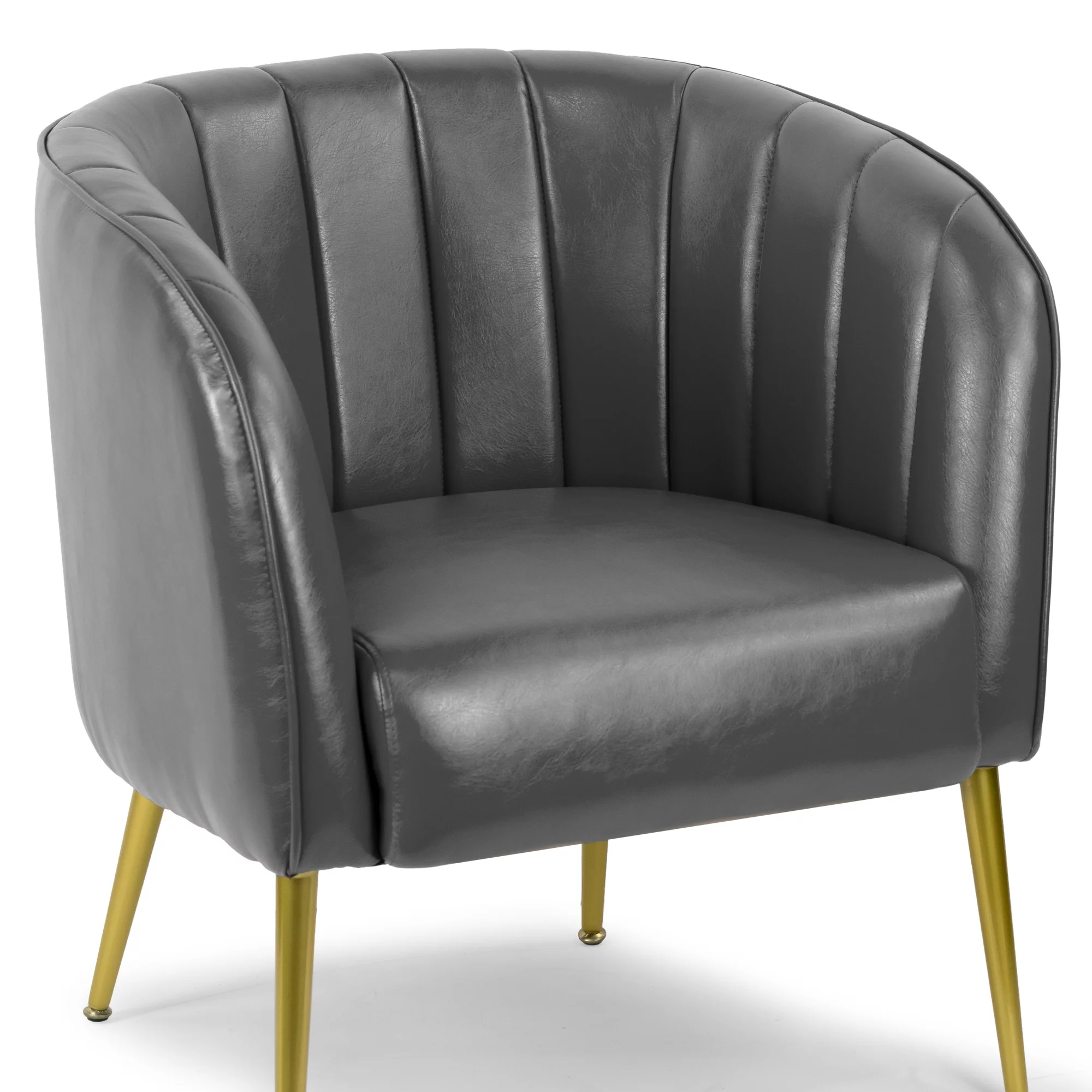 Avia Grey Faux Leather Accent Chair with Decorative Stitching