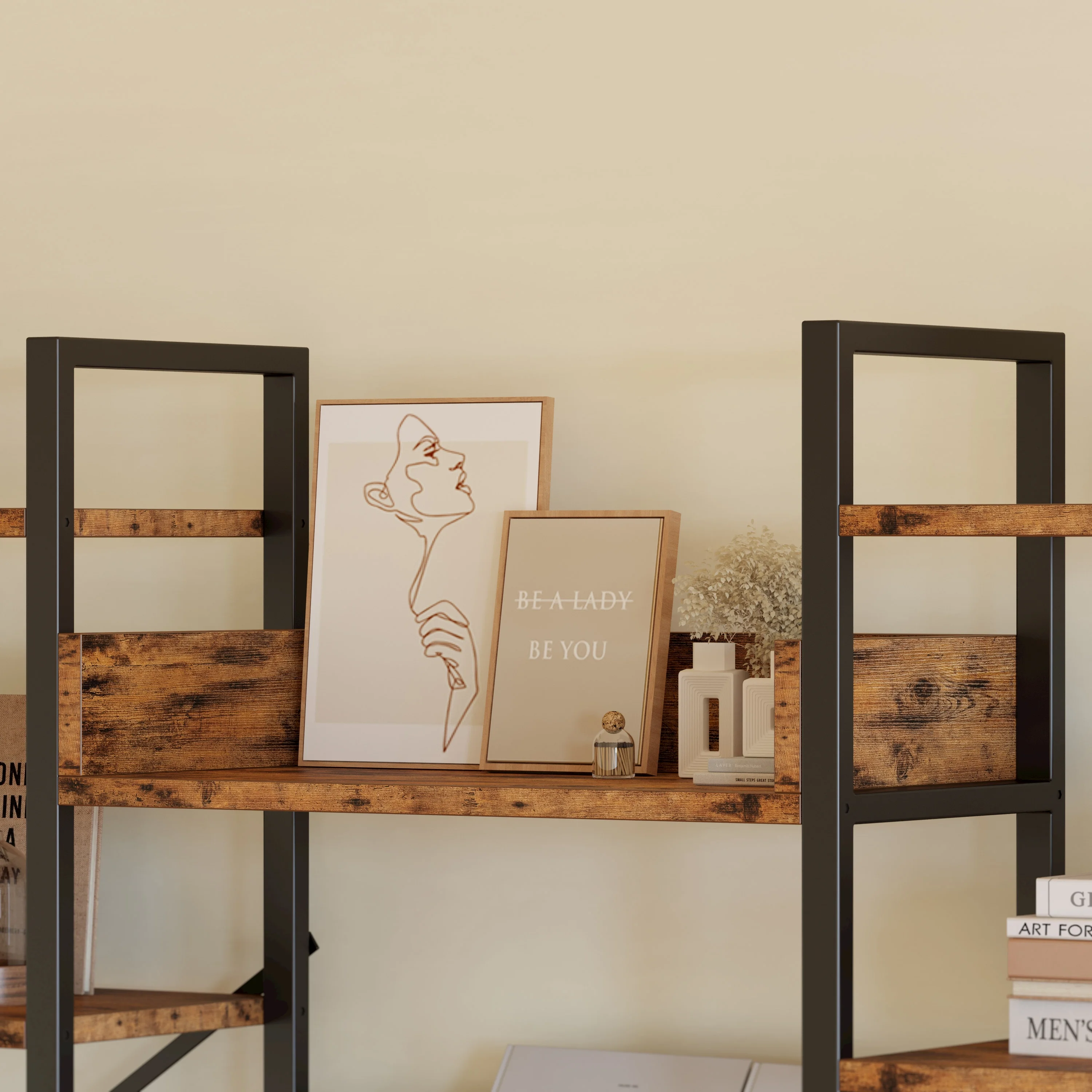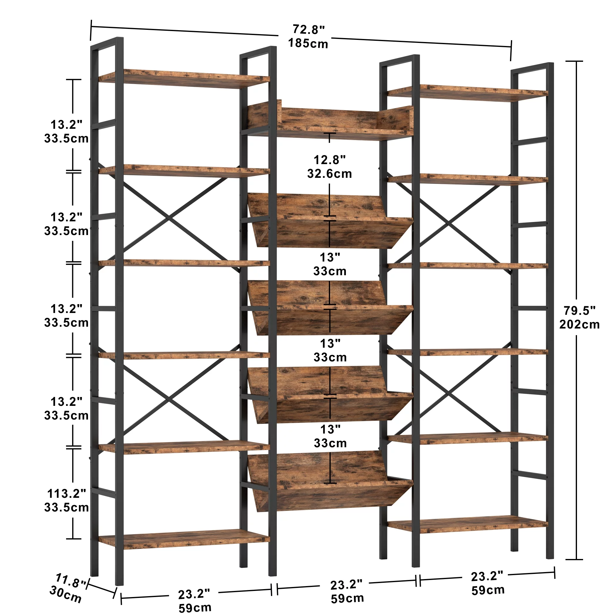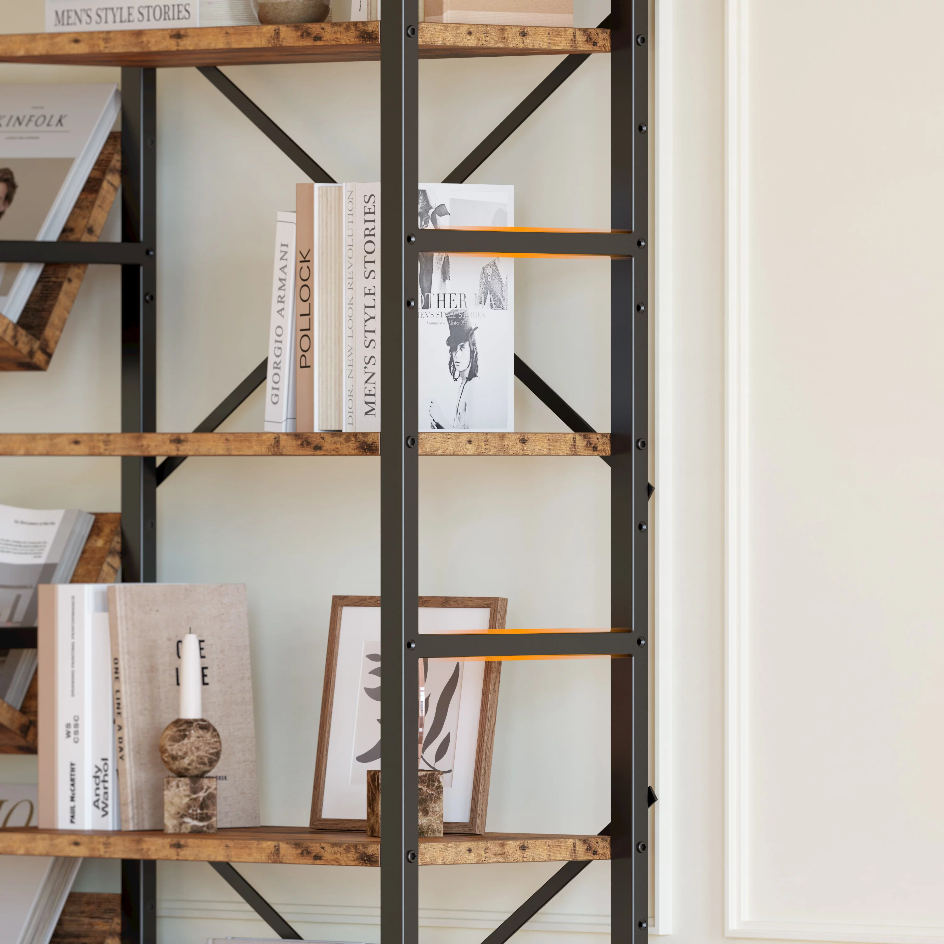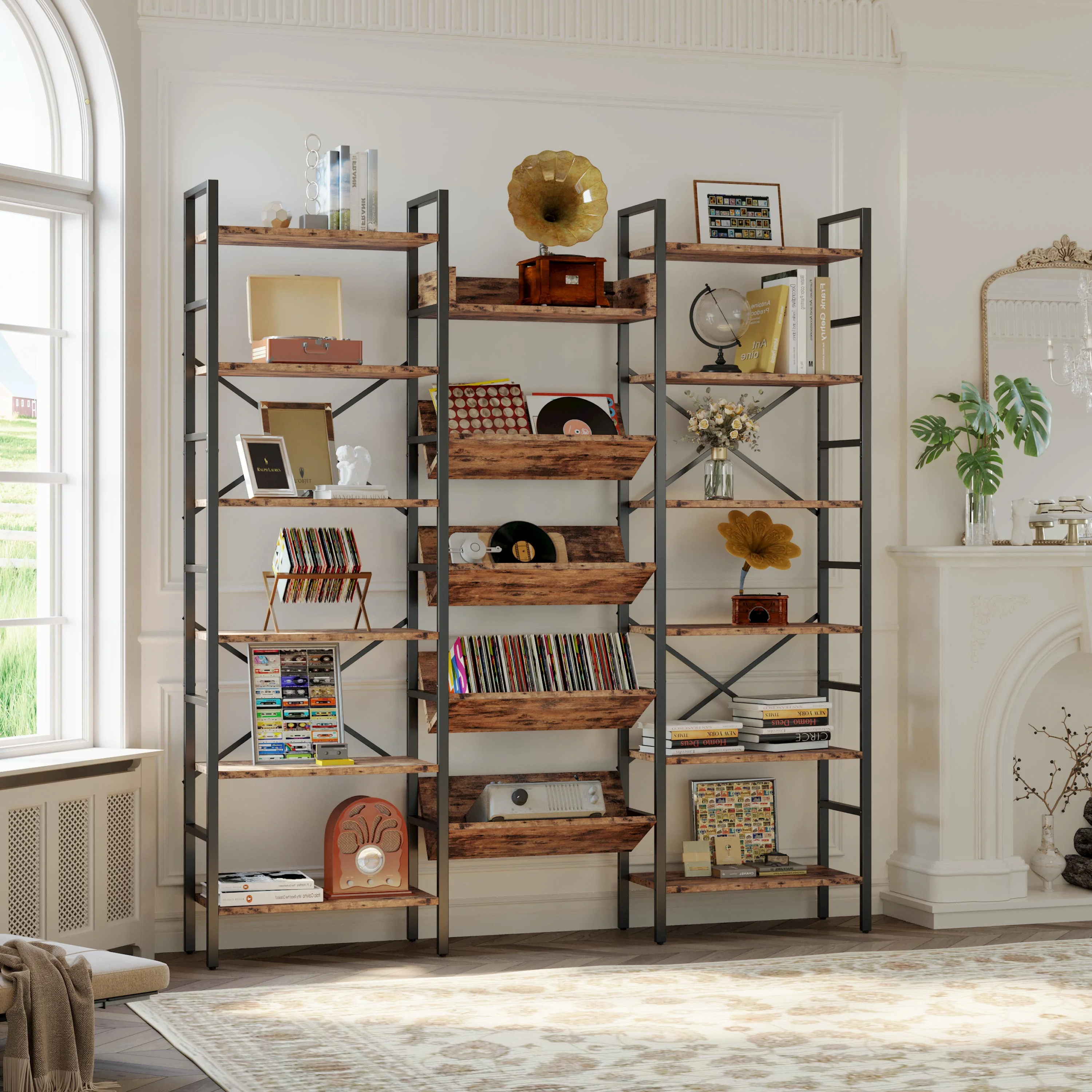 IRONCK Industrial Bookshelves Triple Wide 6 Tiers, Large Etagere Bookshelf Open Record Player Bookcase with Metal Frame for Living Room Home Office