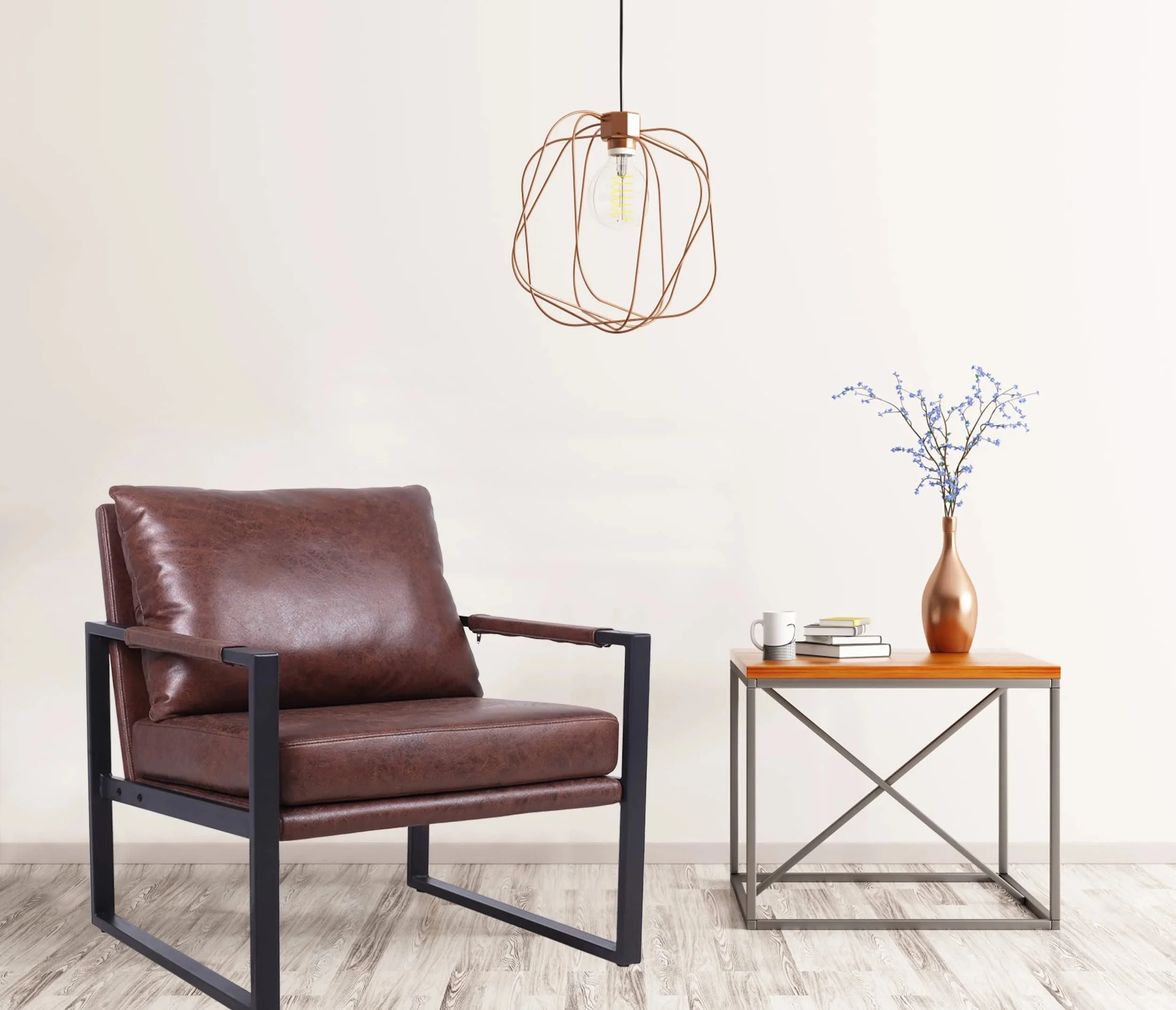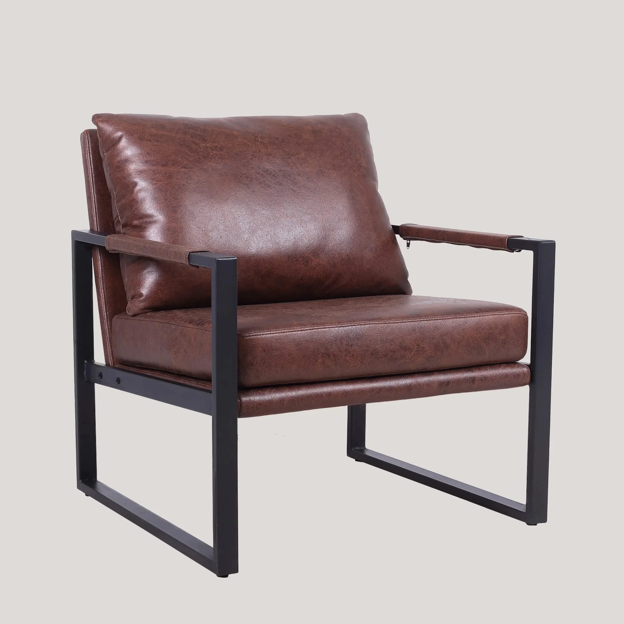 Accent Chair Mid Century Modern Chair for Living Room, Armchair Faux Leather Upholstered Chair with Metal Frame Zipper Padded, Single Sofa Chair Reading Chair for Bedroom Reception, Brown