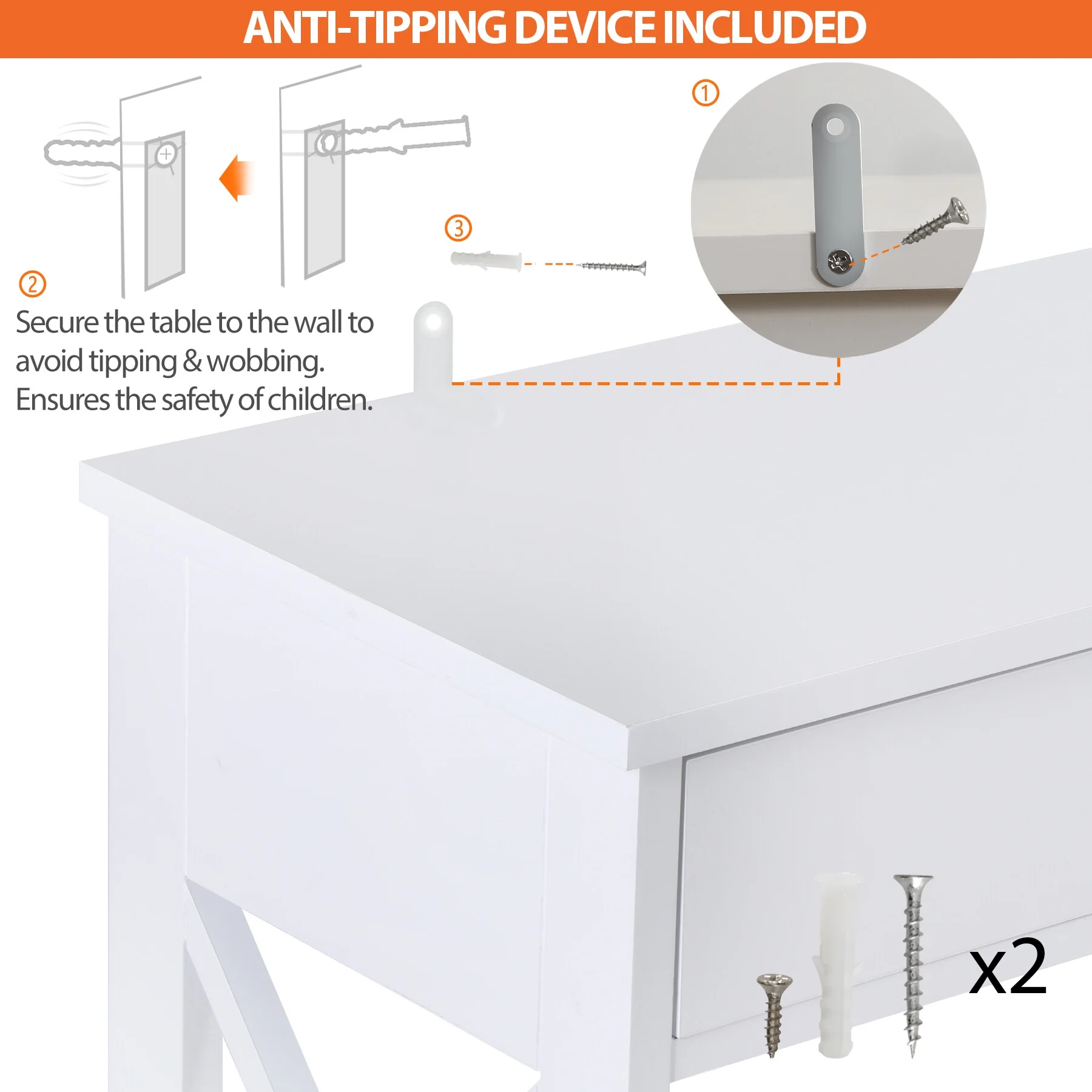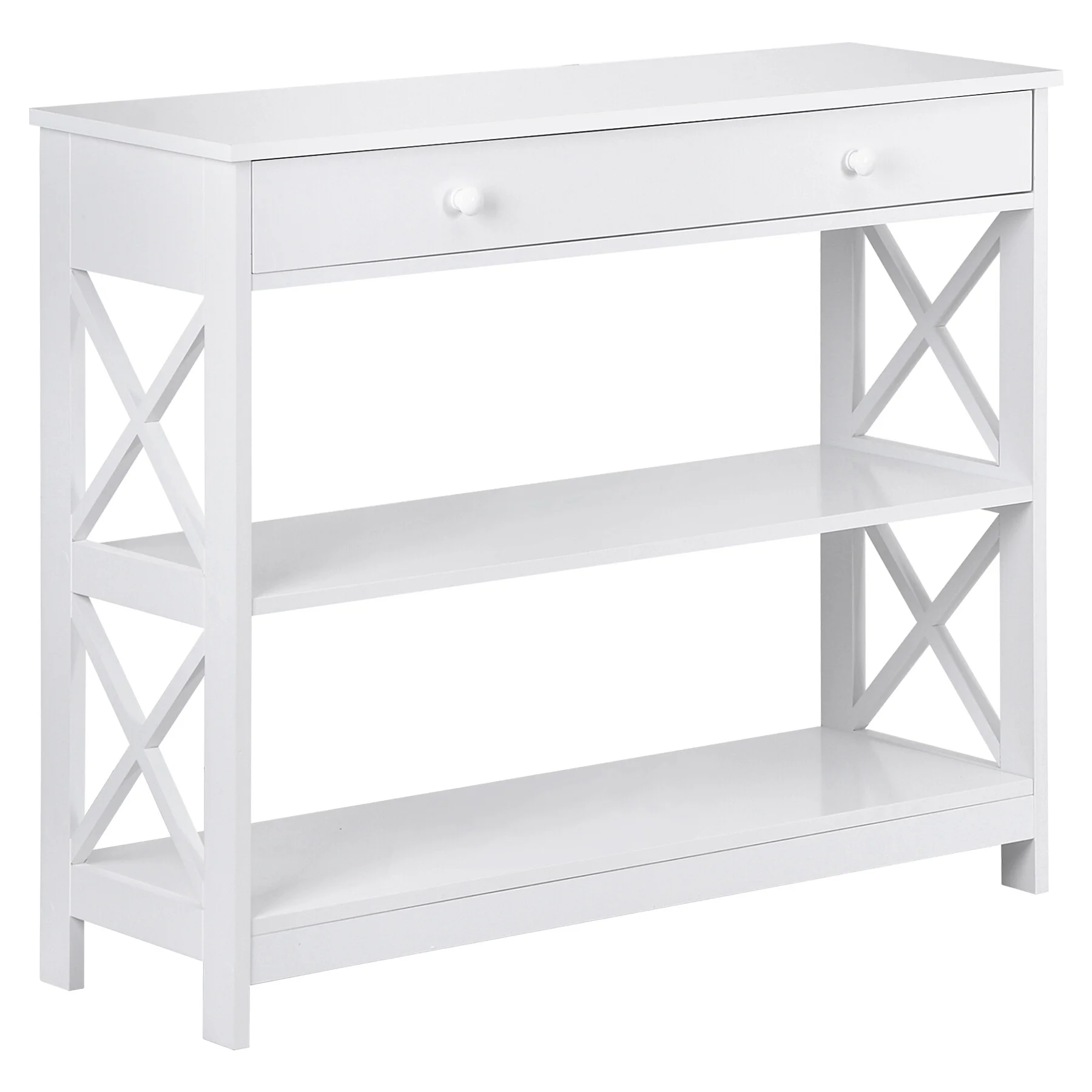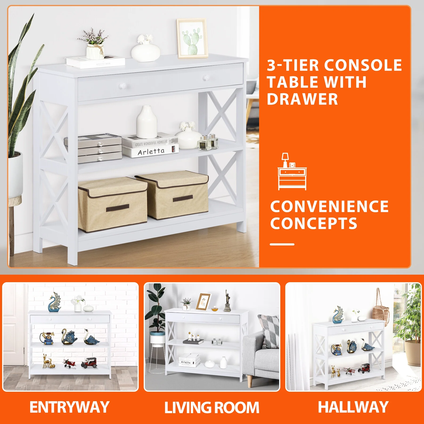 ZENY X-Design Console Table with 1 Drawer Wooden Sofa Side Table Entryway Table 2 Storage Shelves for Living Room, White