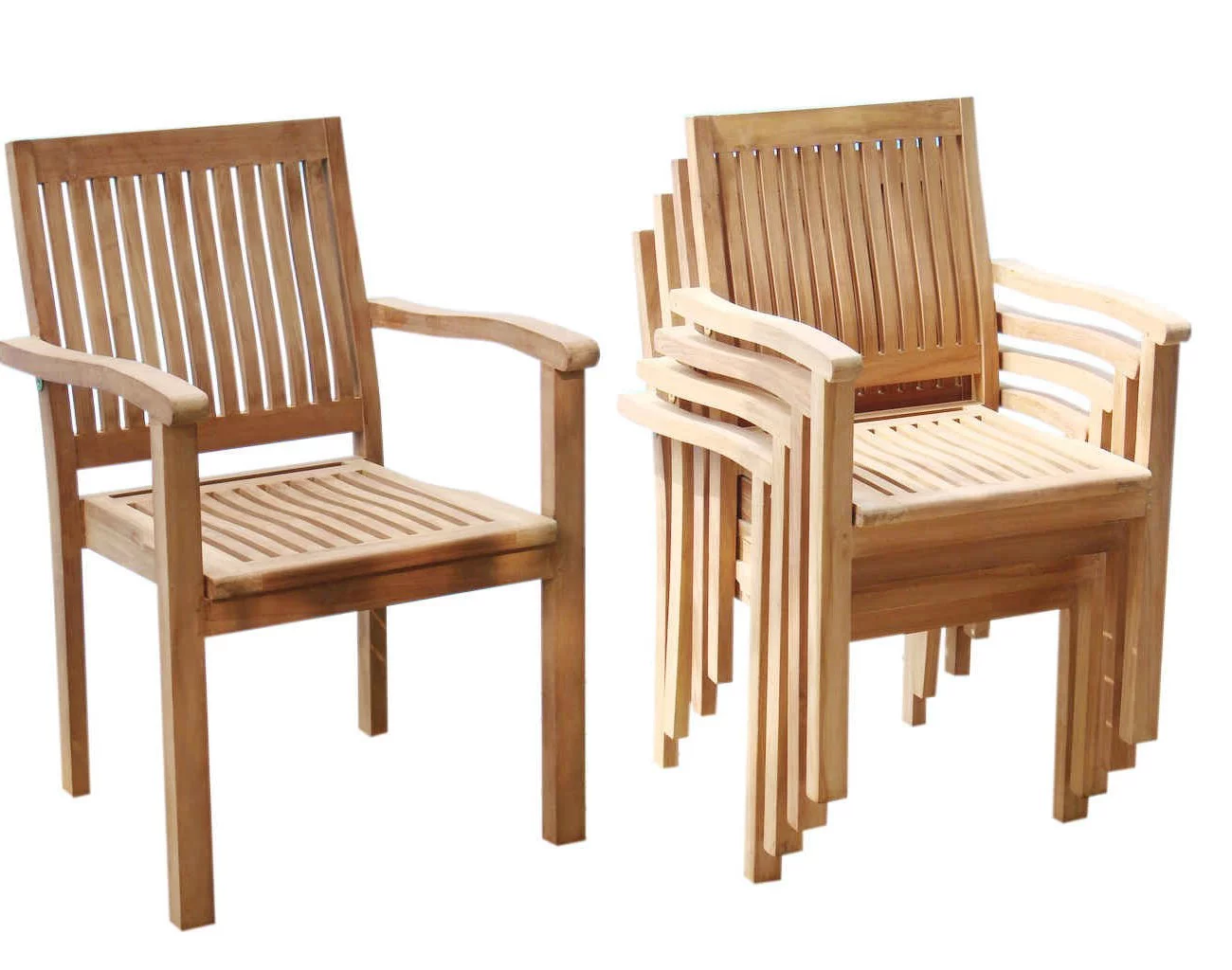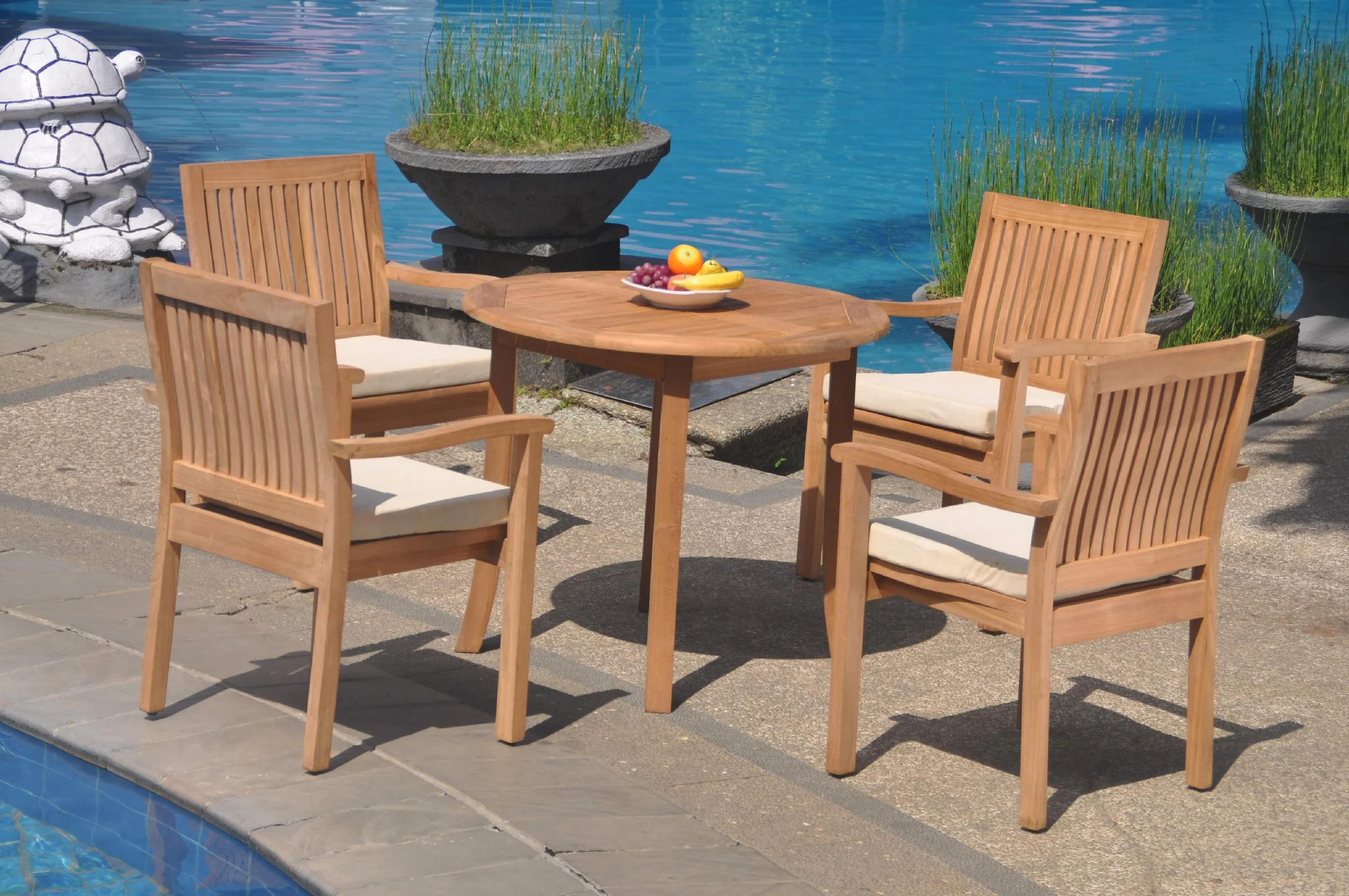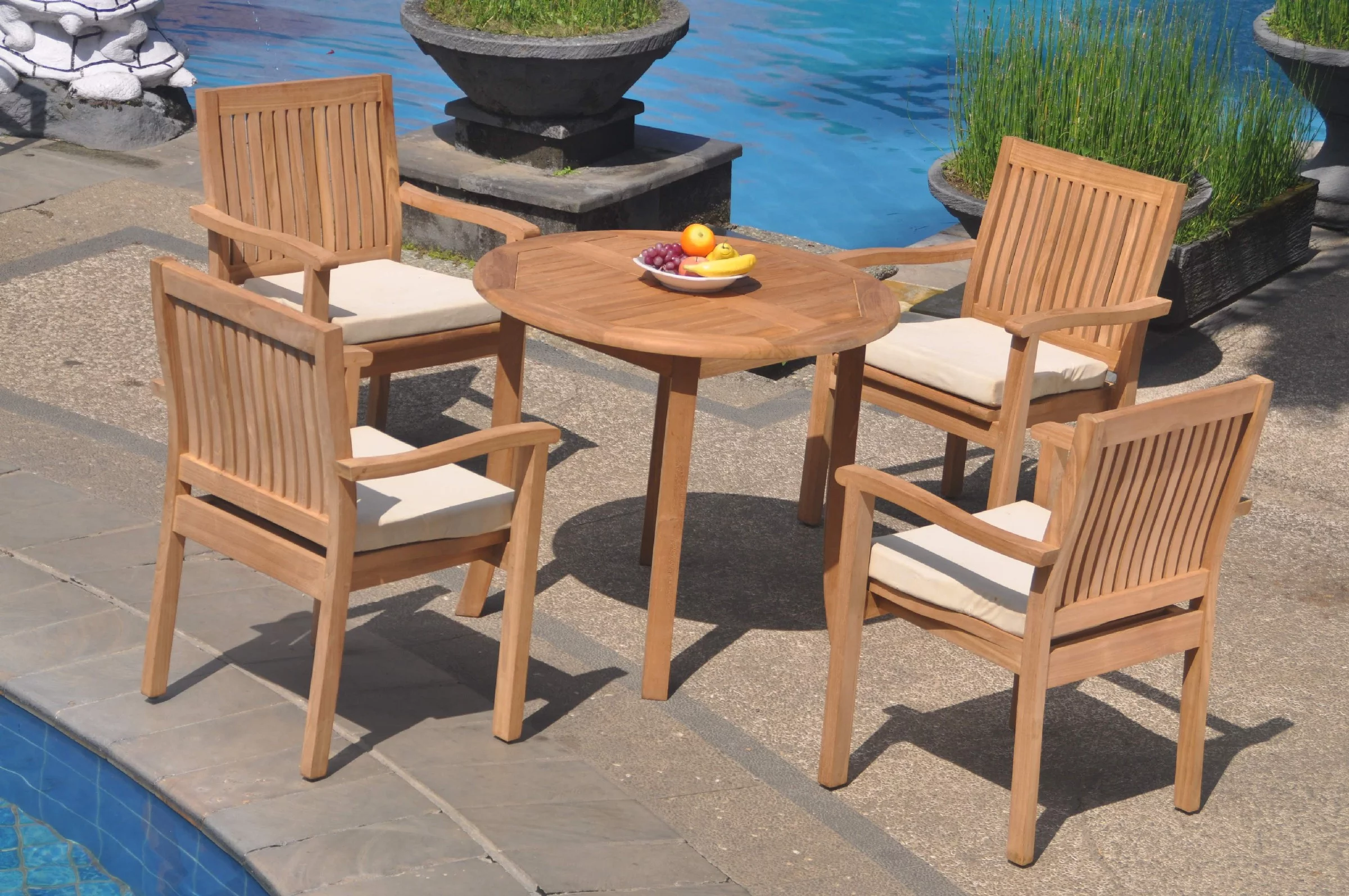 Grade-A Teak Dining Set: 4 Seater 5 Pc: 36" Round Table And 4 Leveb Stacking Arm Chairs Outdoor Patio WholesaleTeak #51LV0705