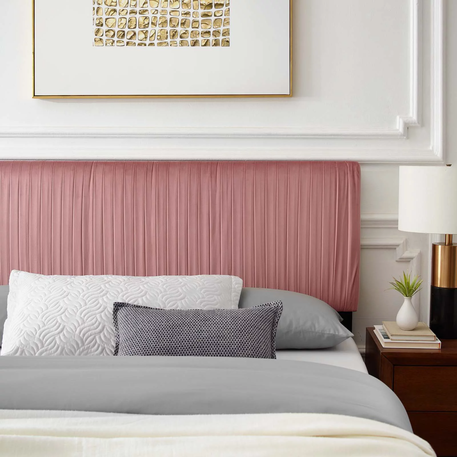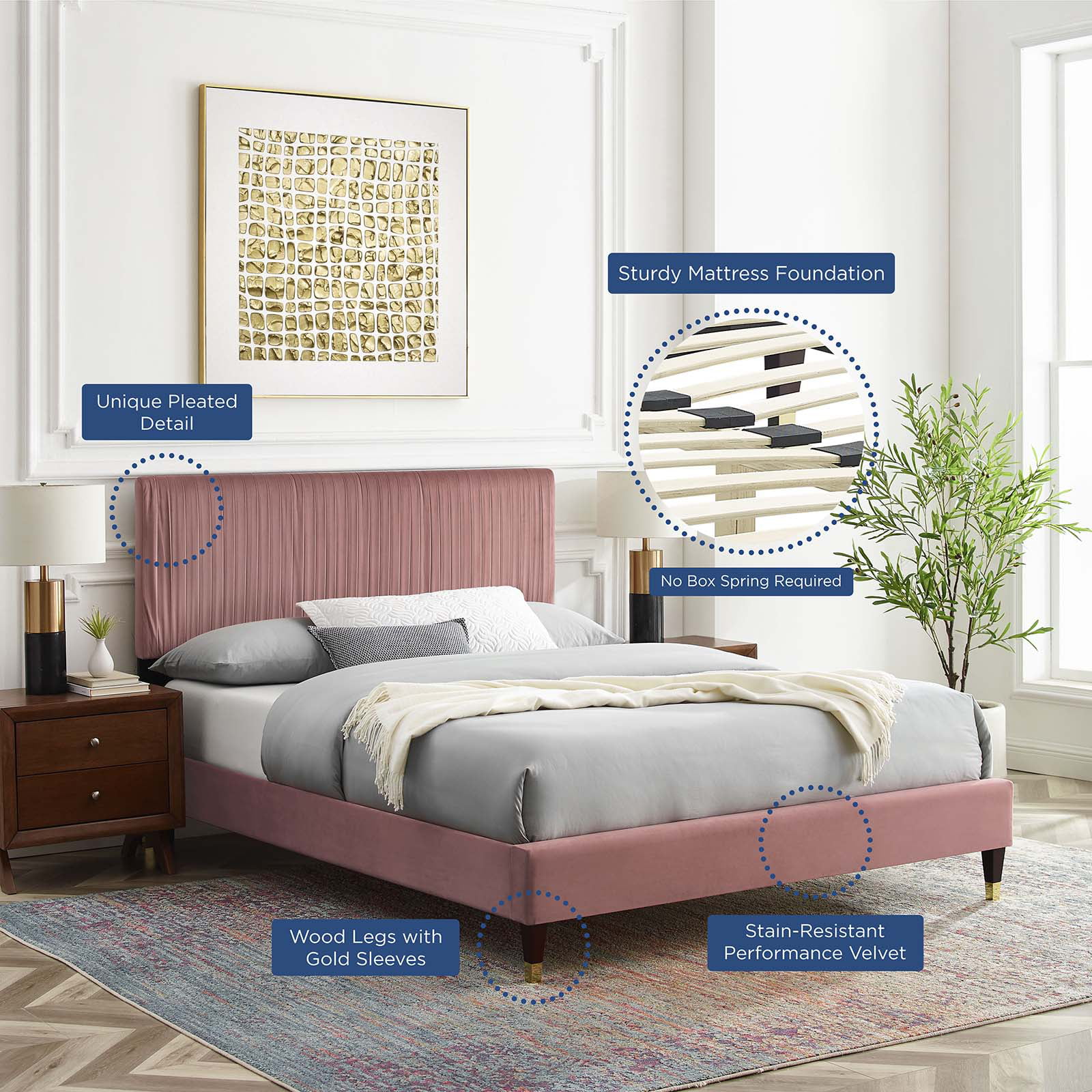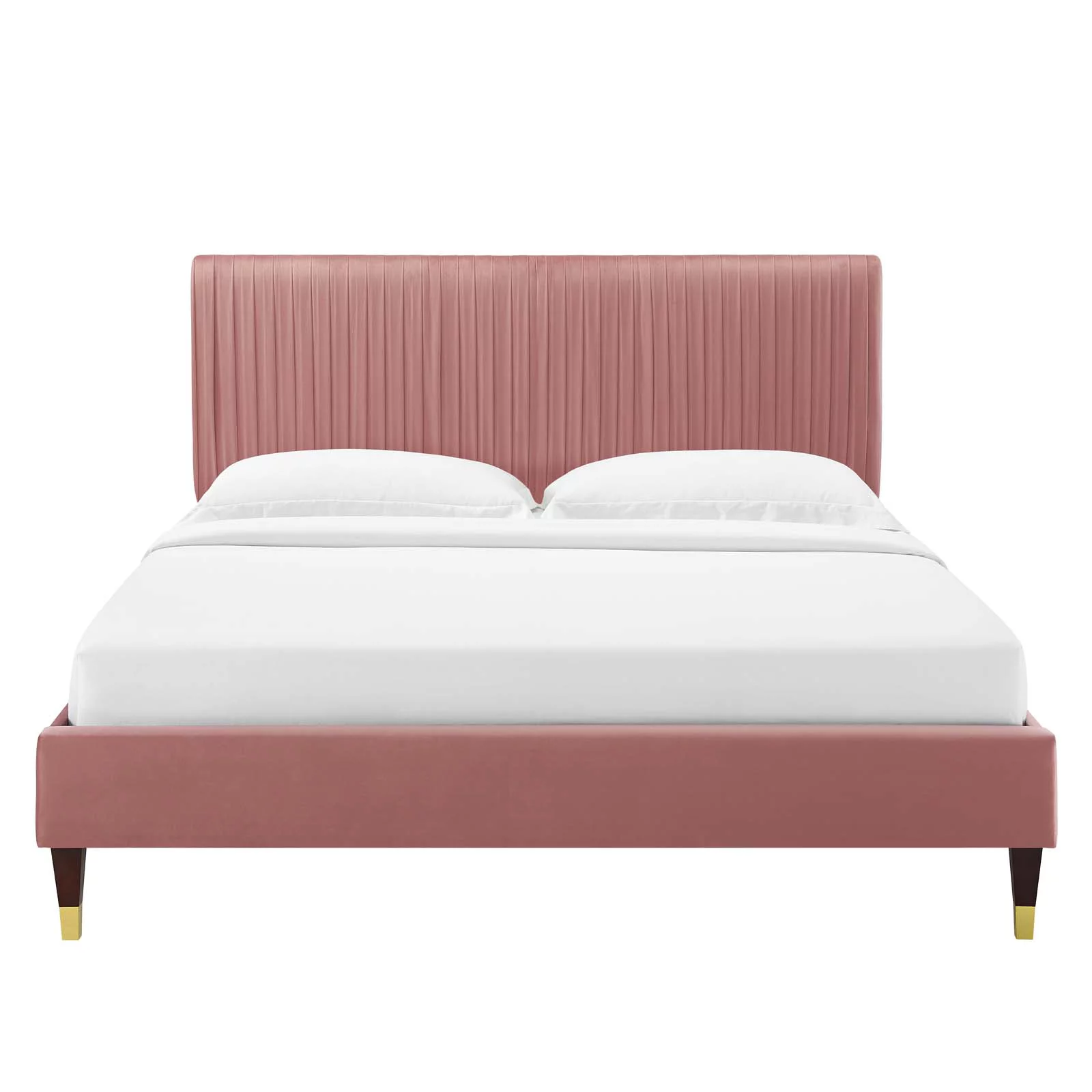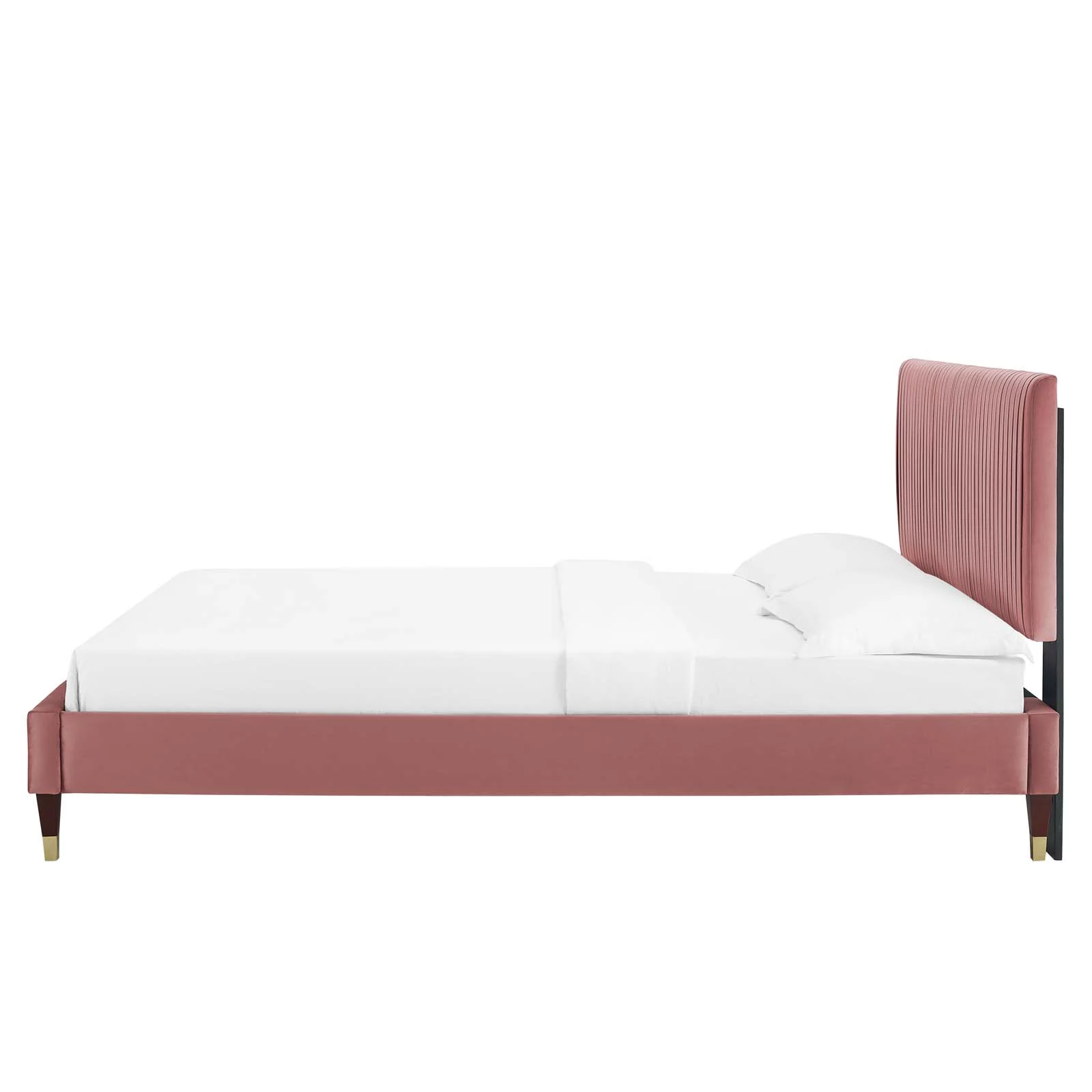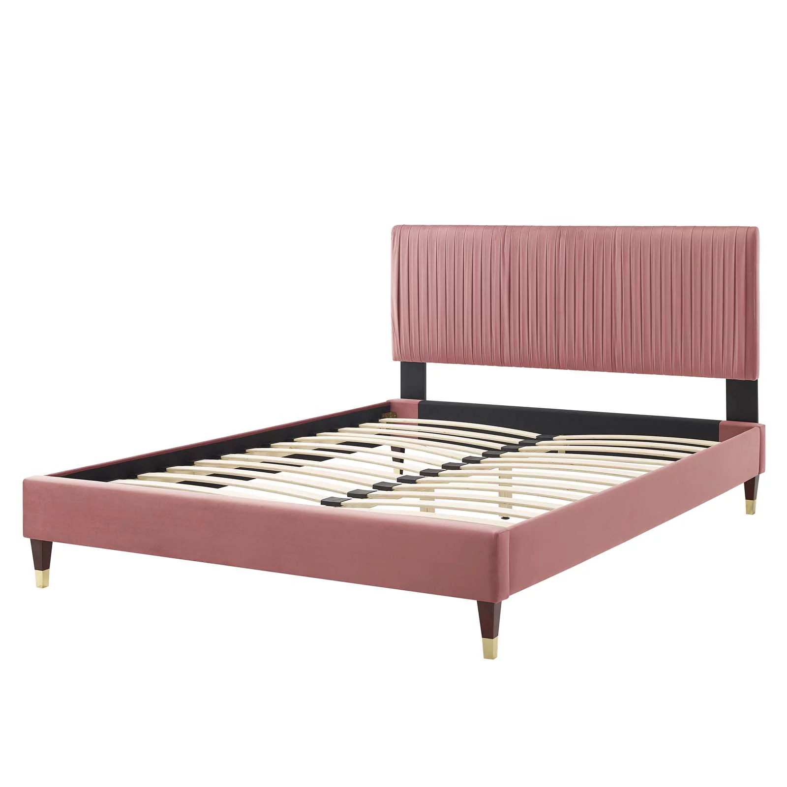 Platform Bed Frame, Full Size, Velvet, Pink, Modern Contemporary Urban Design, Bedroom Master Guest Suite