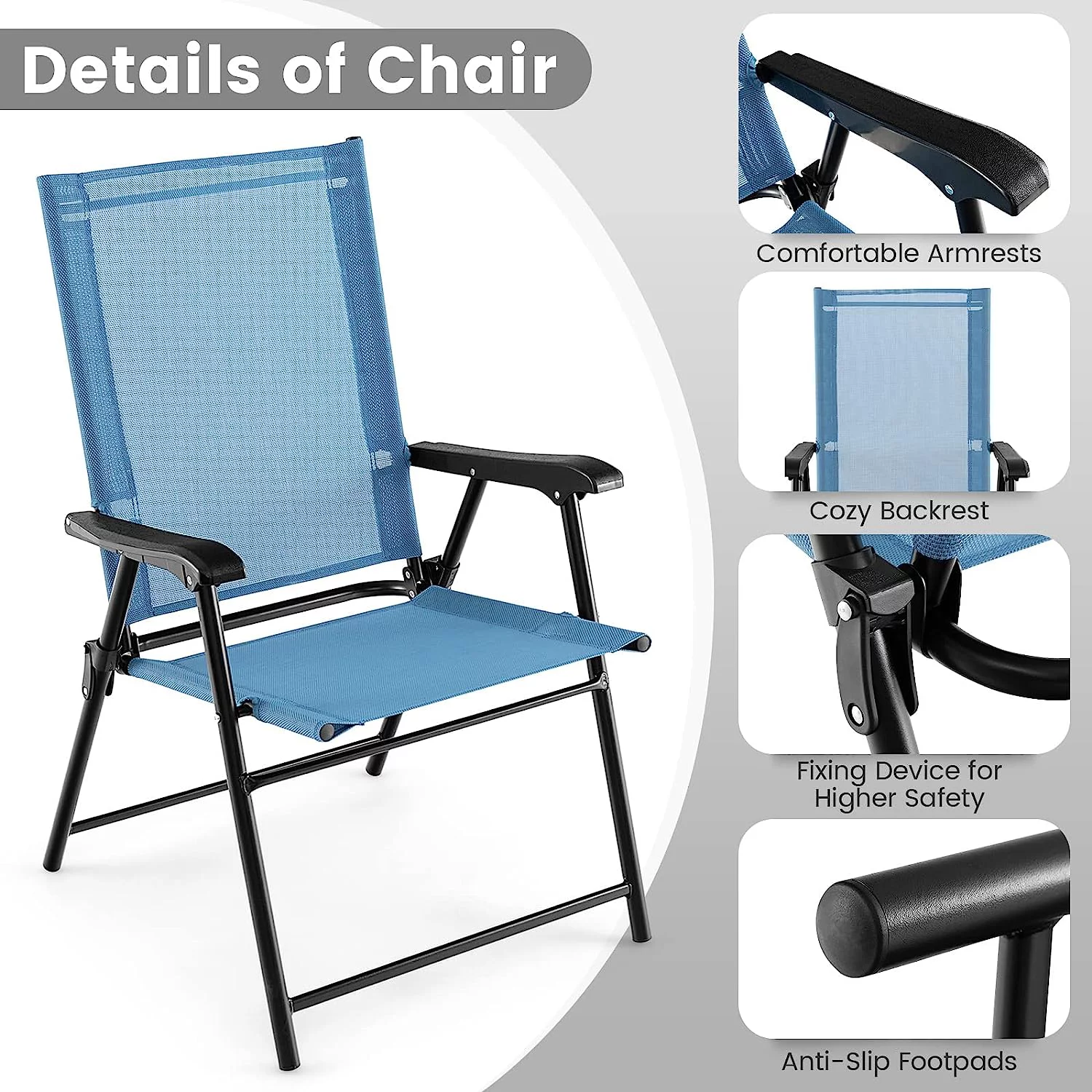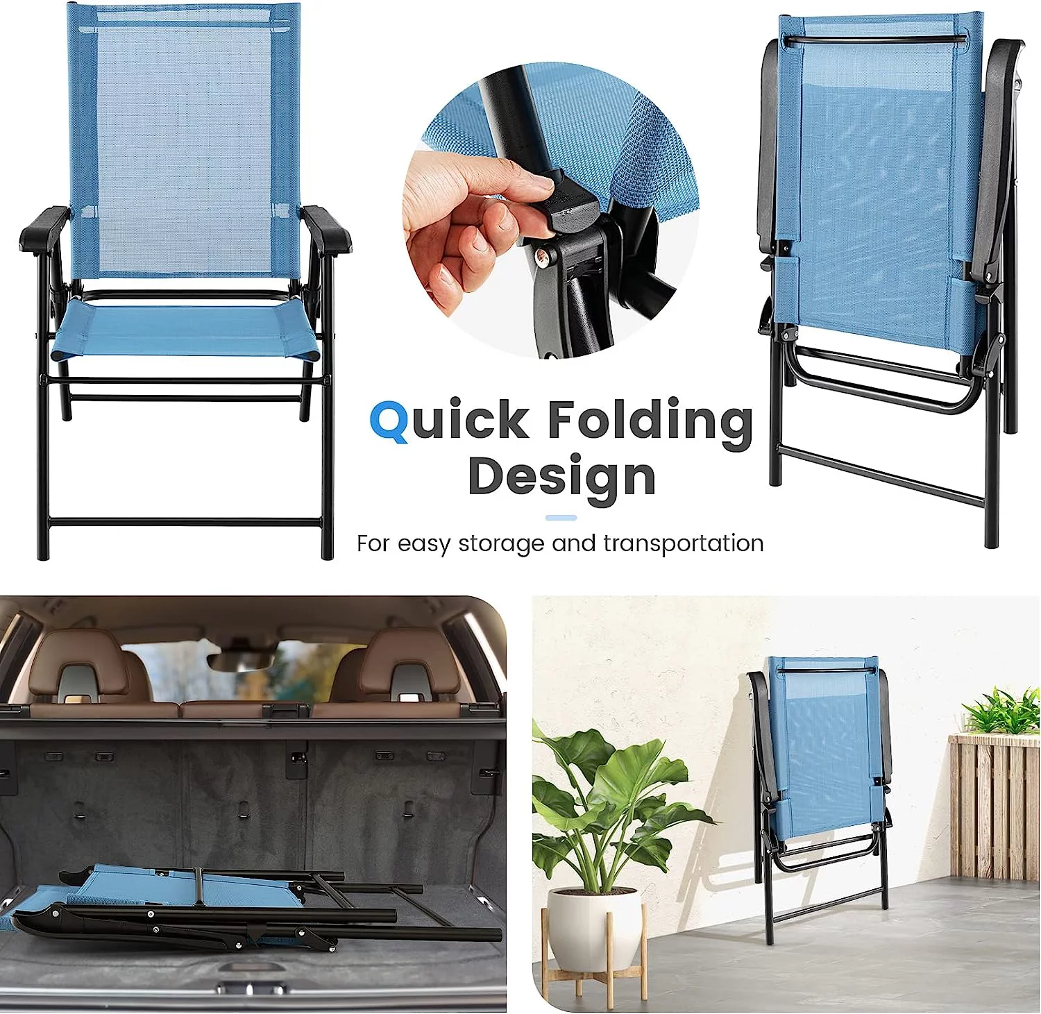 Patio Chairs Set of 4, Folding Patio Chairs for Deck Beach Camping Dining Picnic, Portable Sling Back Chairs Space Saving, Blue