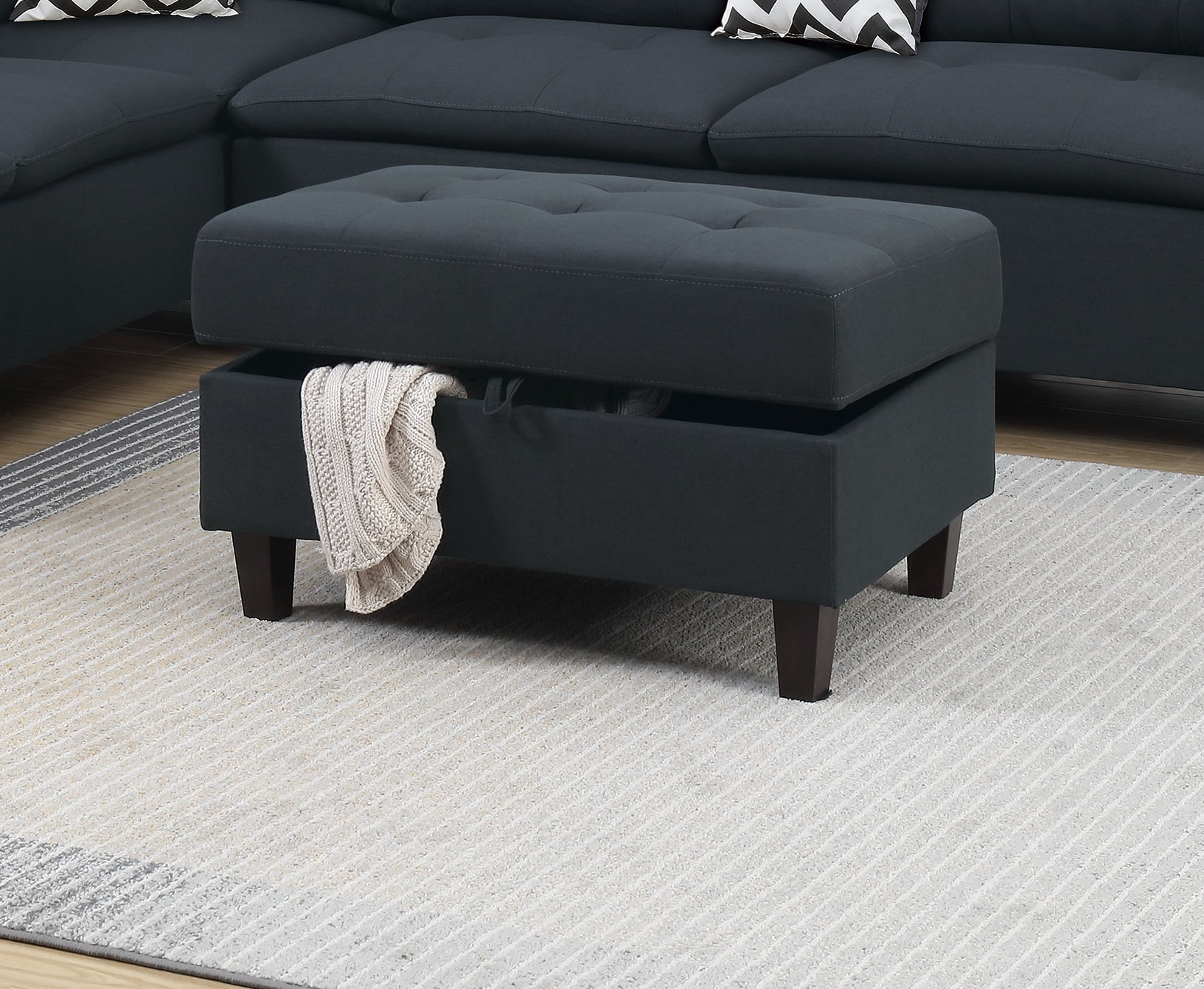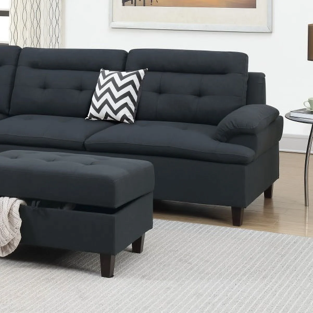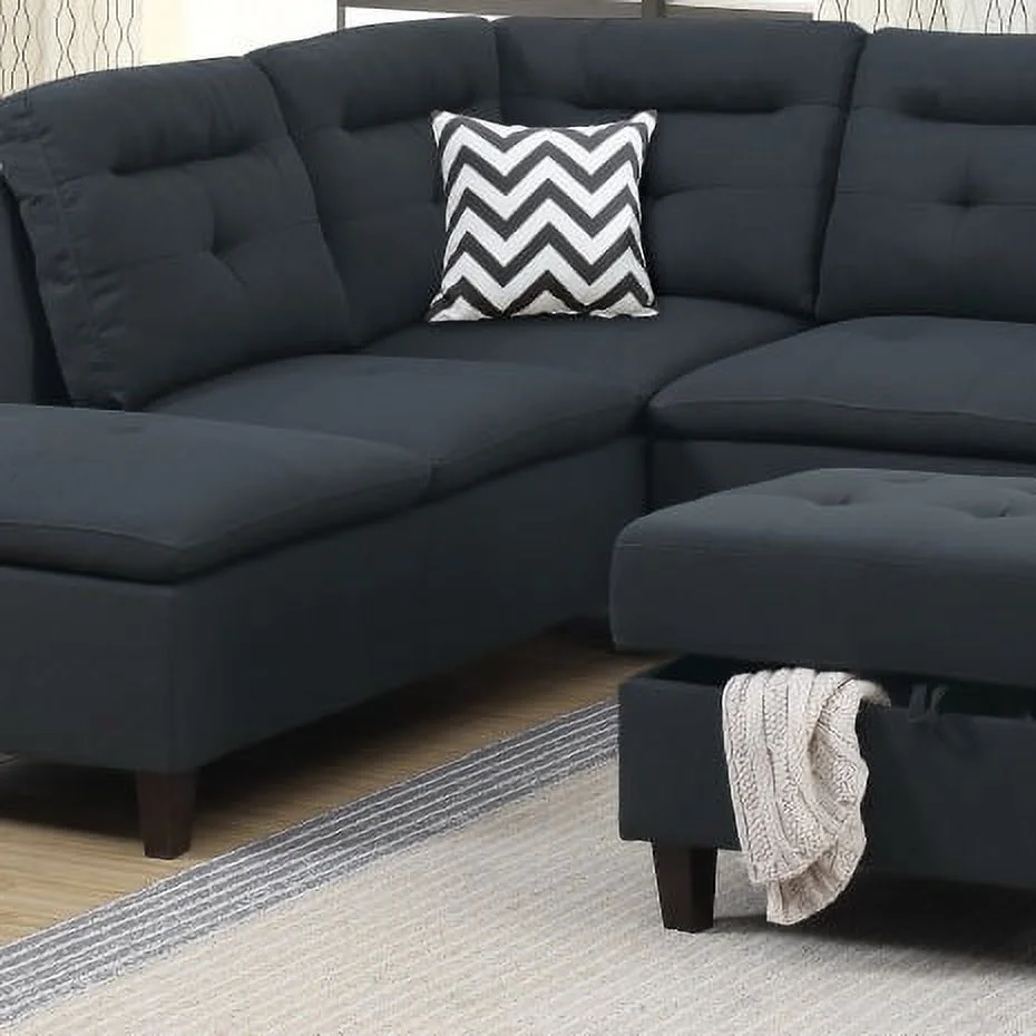 Stylish Modern Classic Look Black Color Couch Sectional Sofa Ottoman w Storage Living Room Furniture Couch Cushion Pillows
