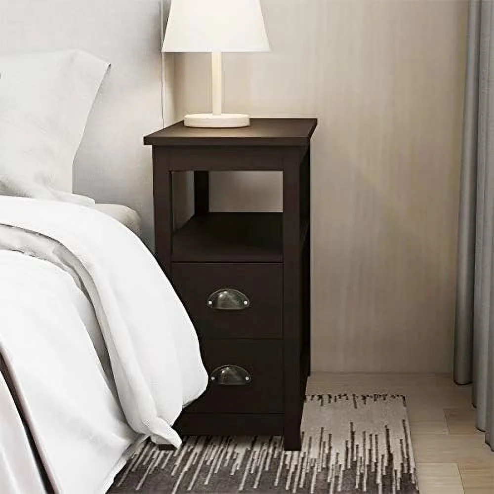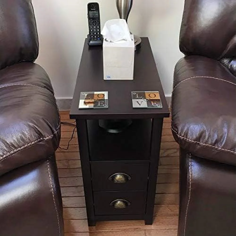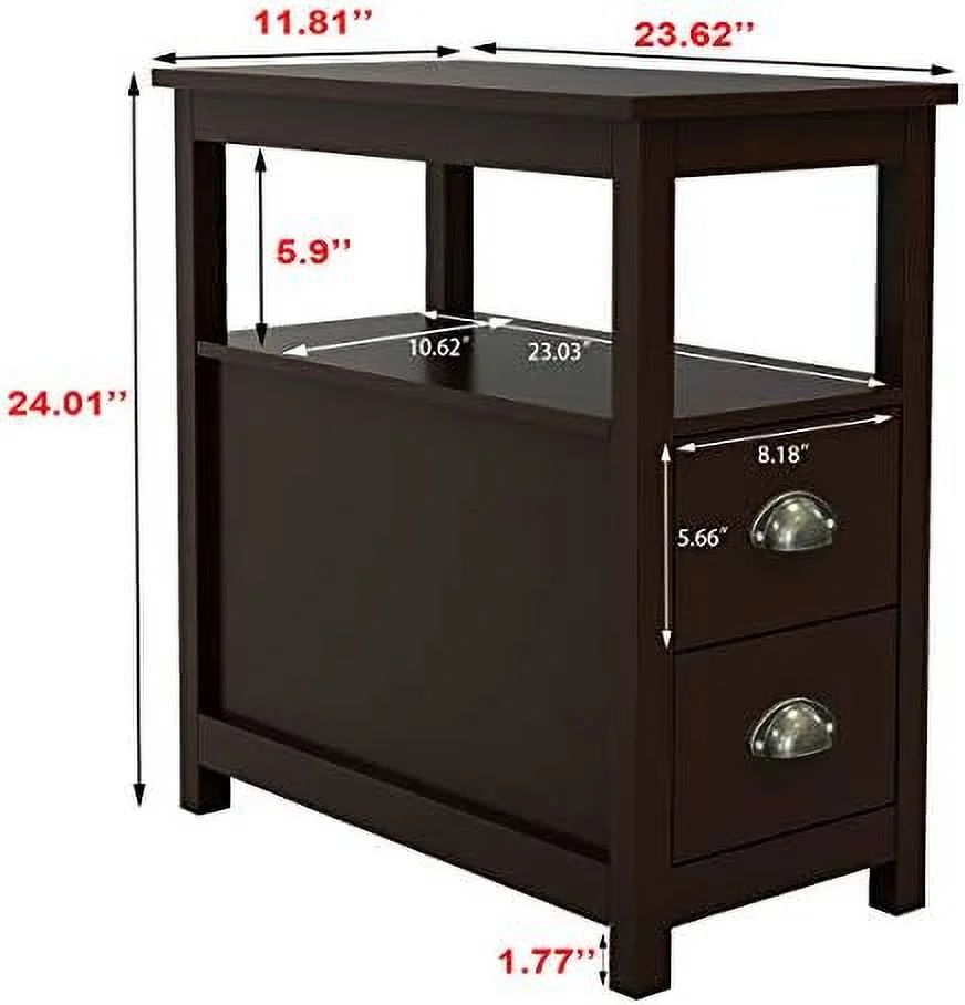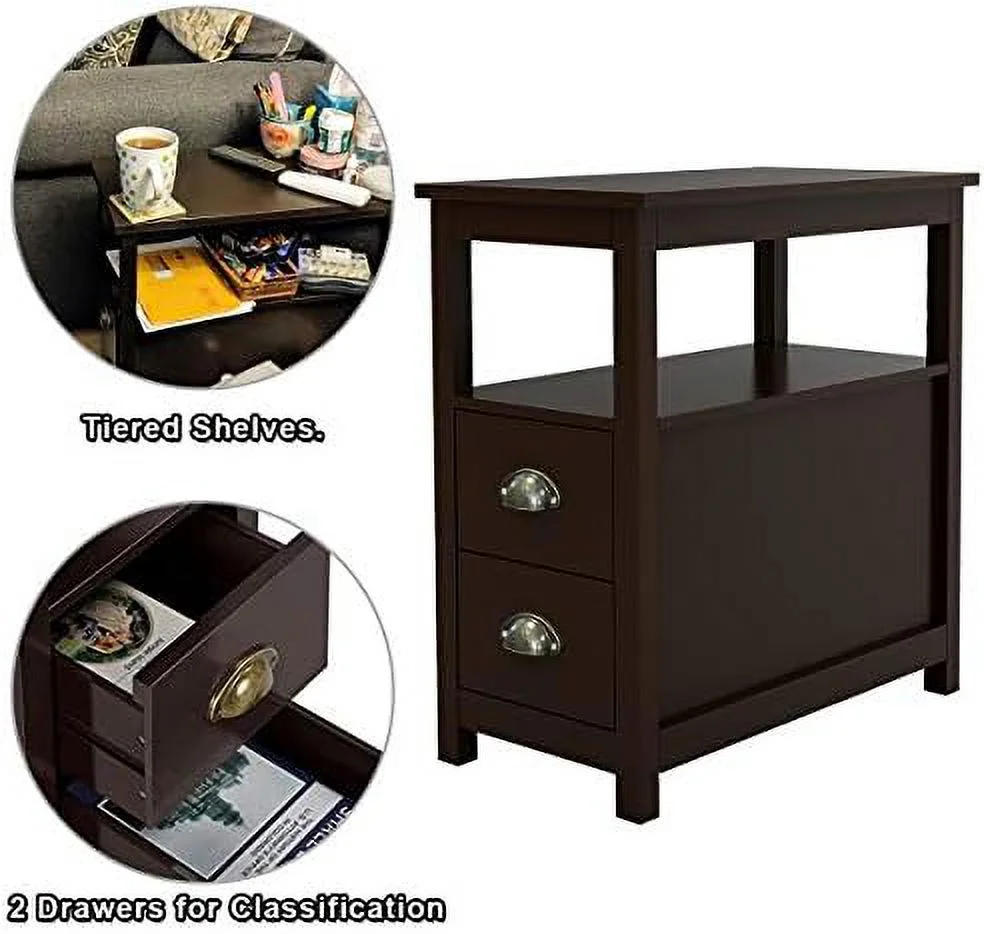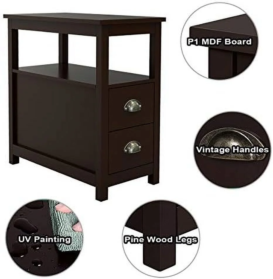 TJUNBOLIFE End Table with 2 Drawer and Open Narrow Nightstand for Living Room Sofa (Espresso)