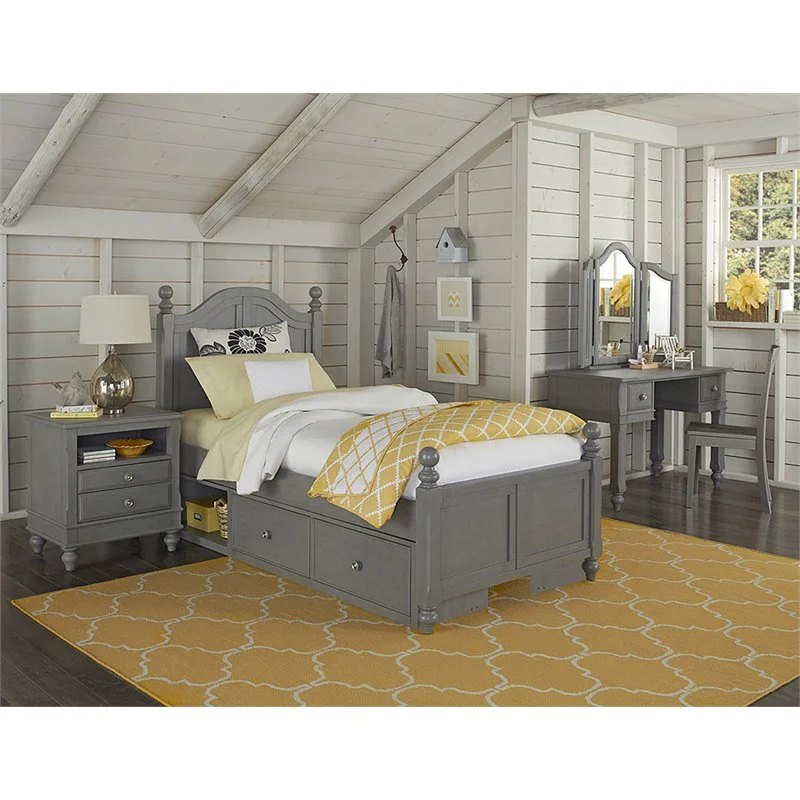 NE Kids Lake House Payton Wood Arch Twin Double Storage Bed in Gray Stone