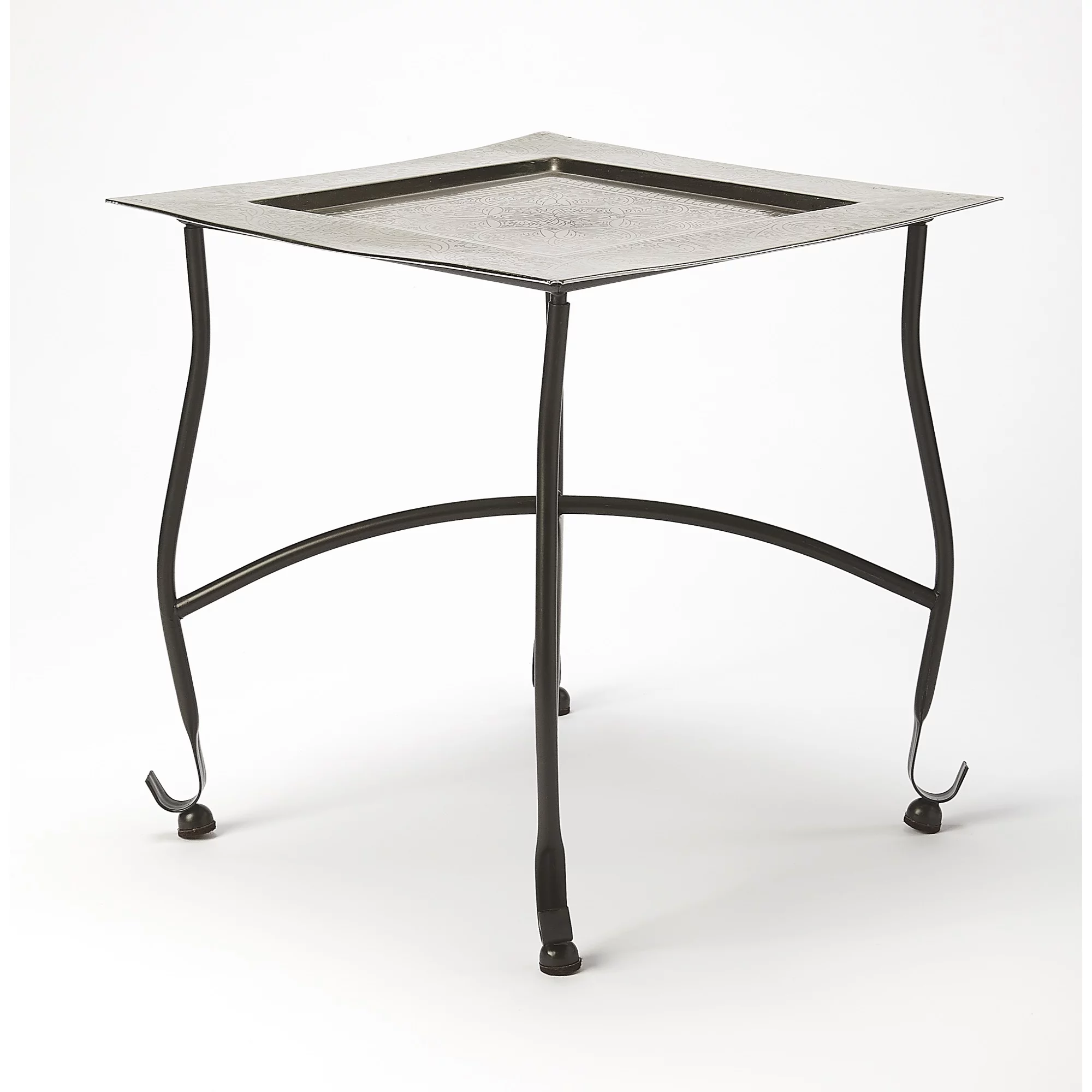 Butler Specialty Metalworks Moroccan Square Metal Tray Table in Silver