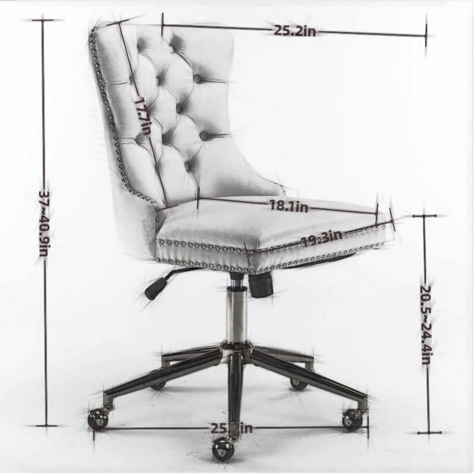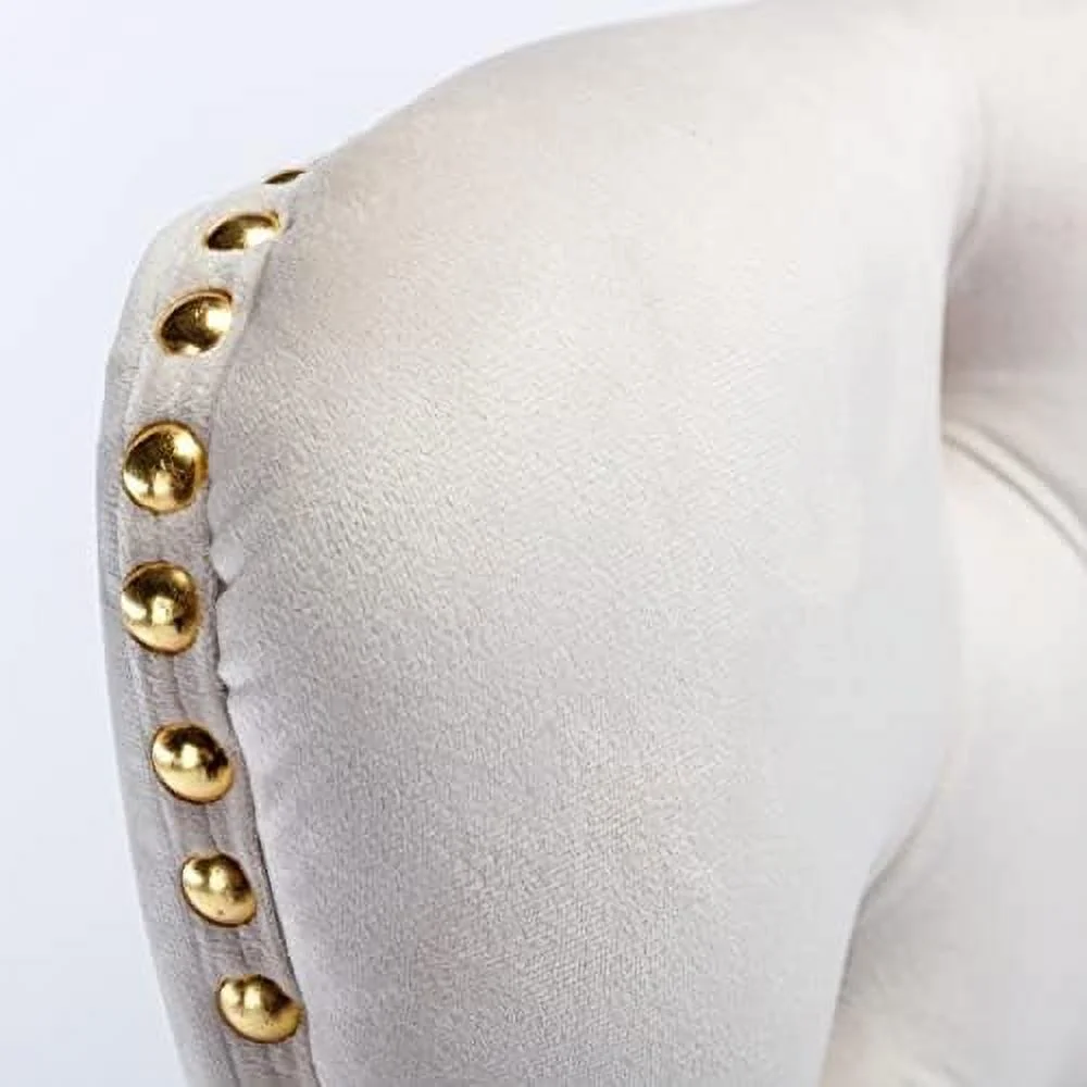 HJZBNONE Chair with Wheels Armless Home Office Desk Chairs with Button Back and Golden Metal Base Adjustable Swivel Task Computer Vanity Chair for Living Room Small Space Beige