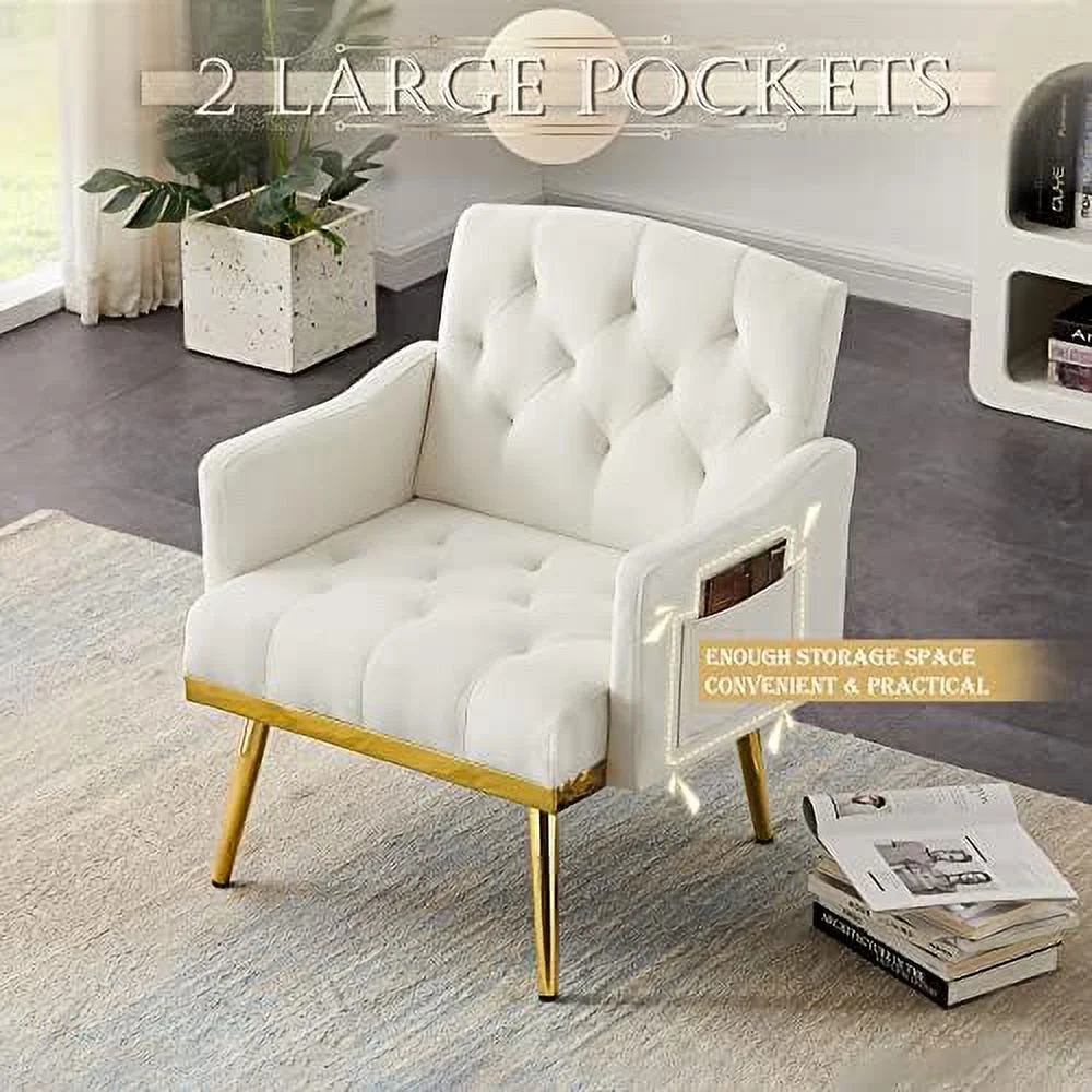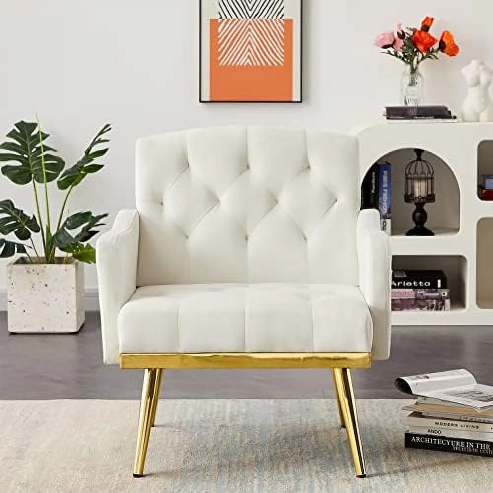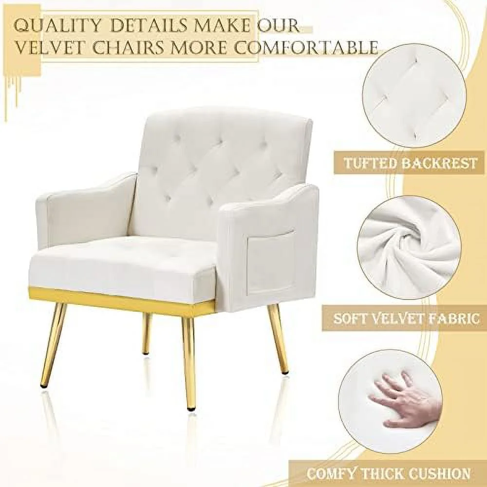 YZboomLife Upholstered Velvet Accent Chair Modern Armchair Single Sofa Arm Chair with Golden Metal Legs Tufted Lounge Reading Chair for Living Room Bedroom Office Pink