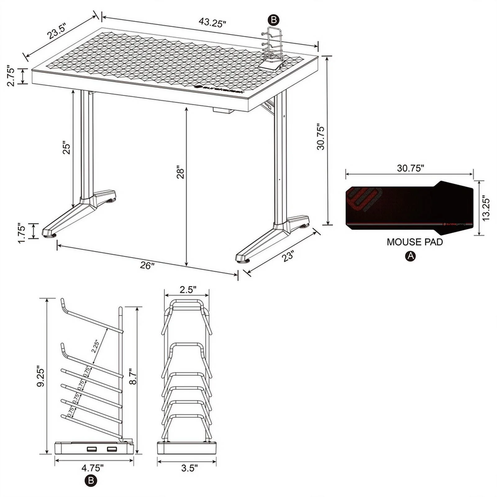 Pemberly Row Modern Metal Gaming Desk with Tempered Glass Top in Black