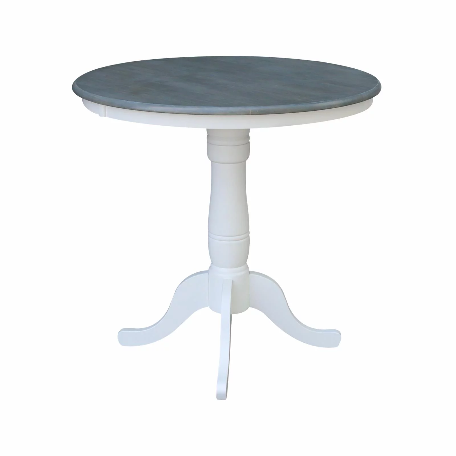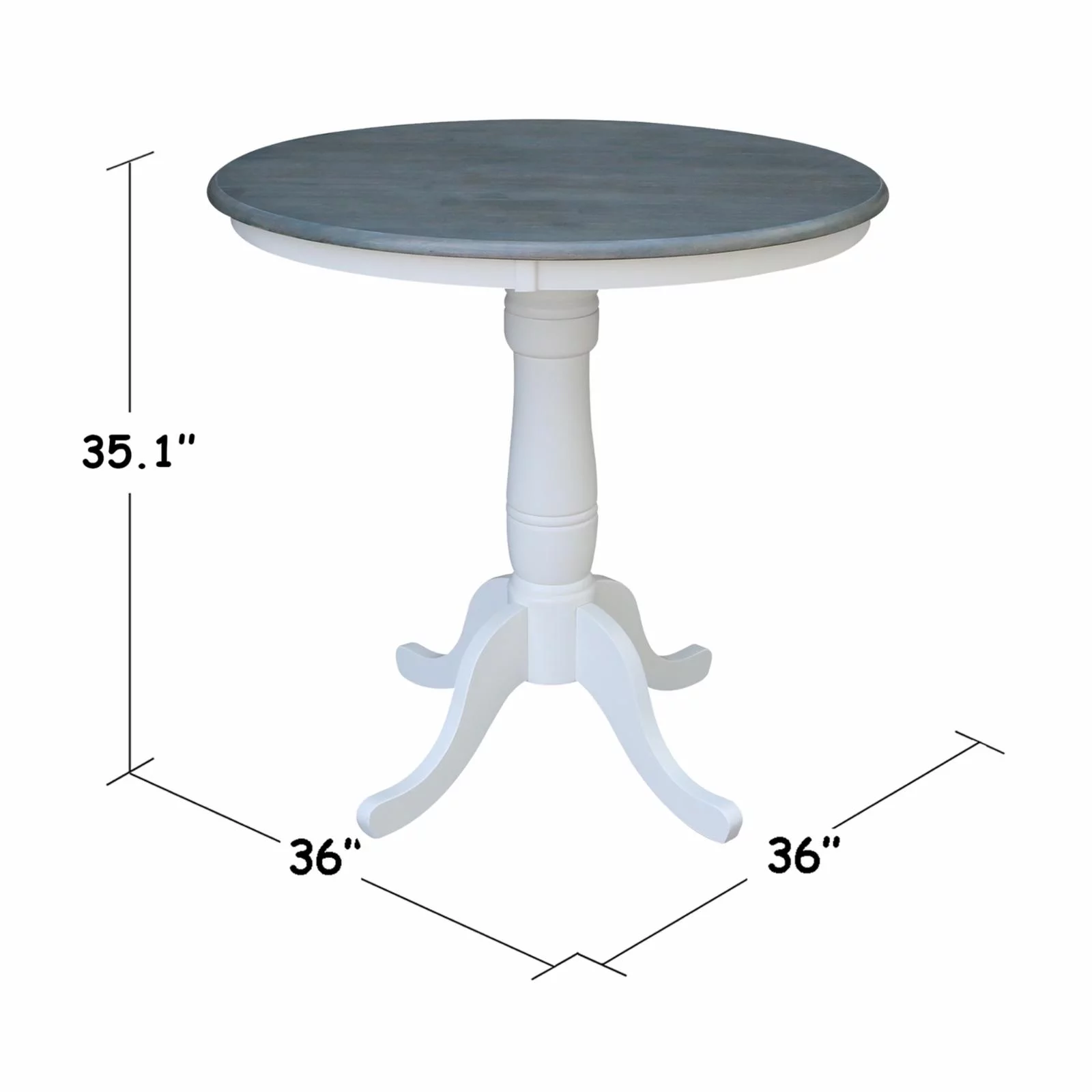 Solid Wood 36" x 36" Round Pedestal Dining Table in Washed Gray Taupe