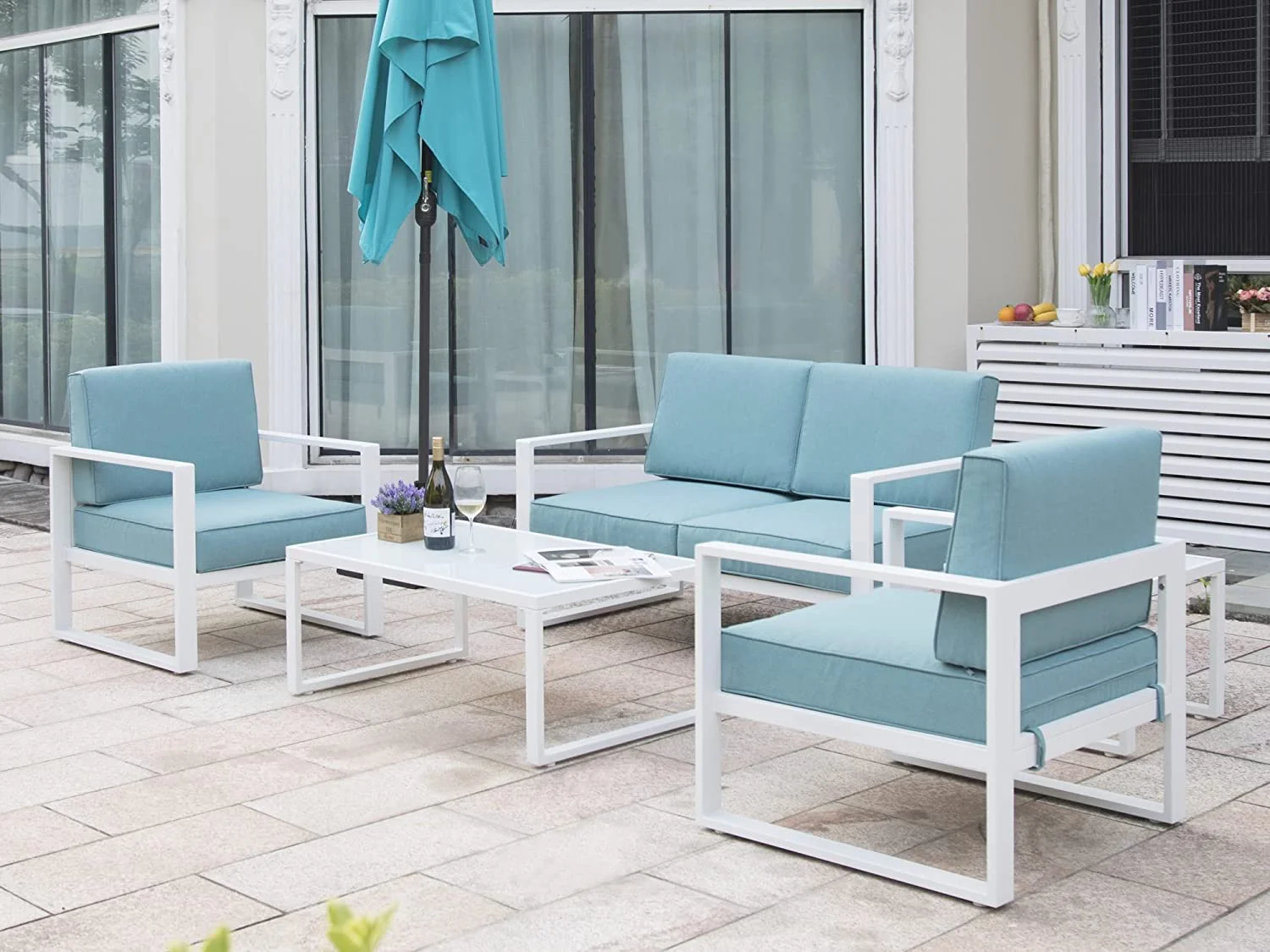 Popular Aluminum Patio Furniture Set 8 Pieces Outdoor Conversation Set All-Weather Modern Metal Couch Outdoor Sectional Sofa with Ottomans and Coffee Table (Grey)