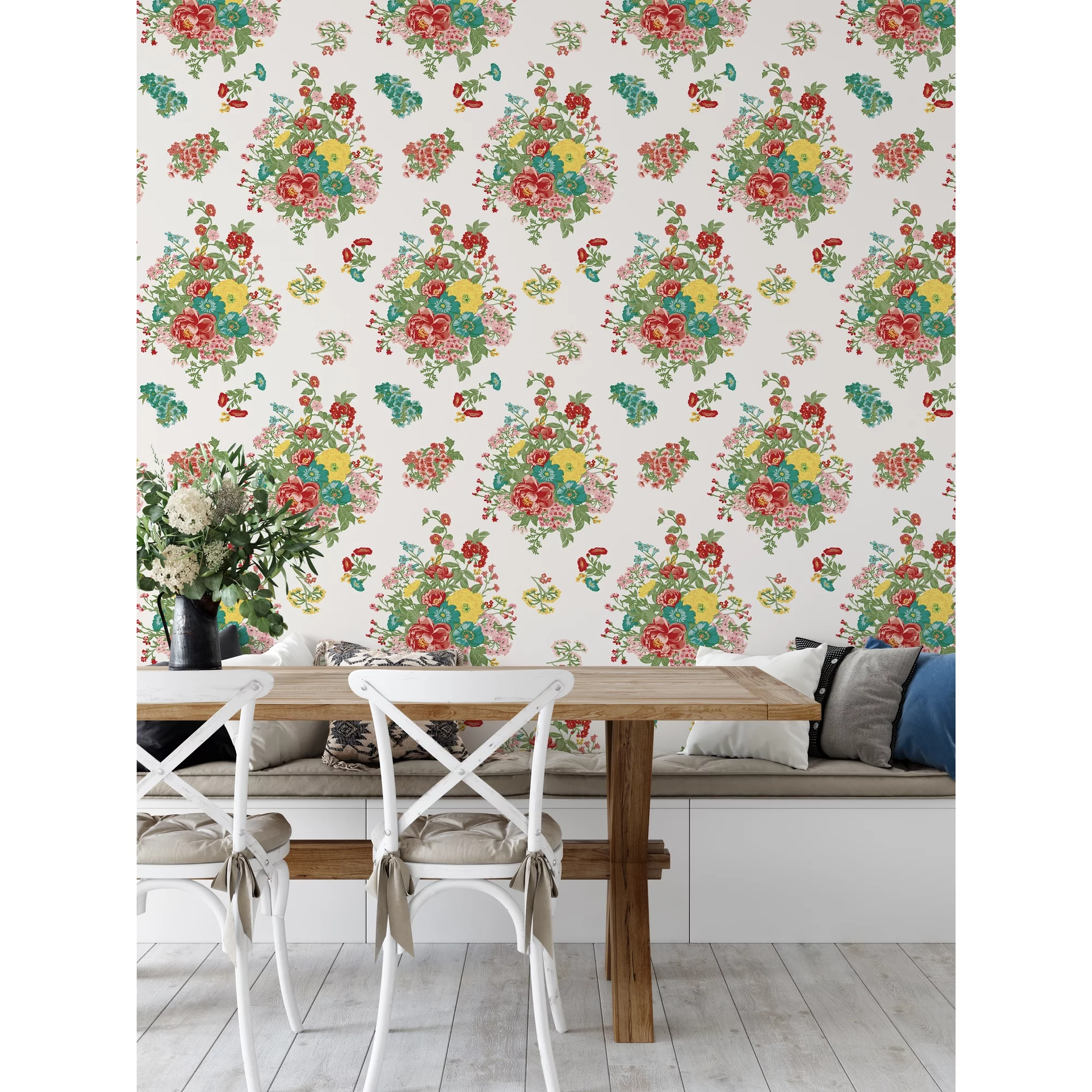 The Pioneer Woman White Fancy Flourish Floral Peel and Stick Wallpaper, 20.5" x 18'