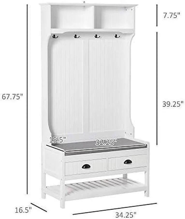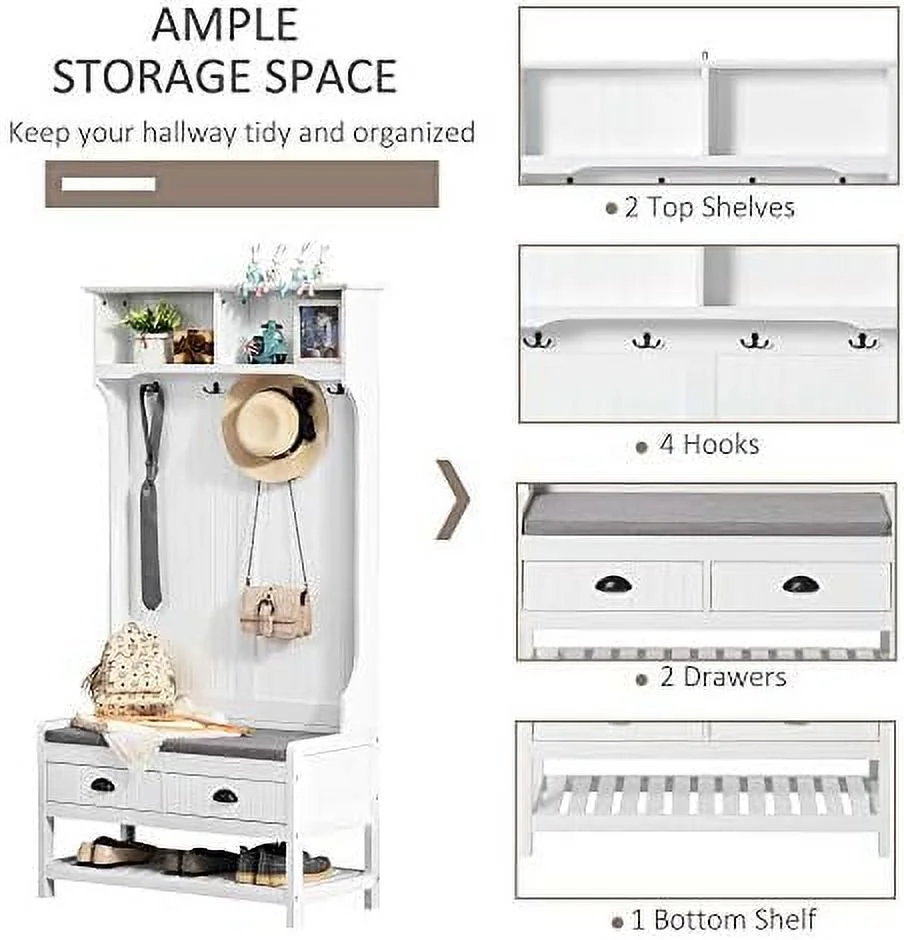 KHBIULIFE 3-in-1 Hall Tree Entryway Bench with Coat Rack Mudroom Bench with Shoe Rack 2 Drawers 4 Hooks and Padded Seat Cushions for Hallway Black