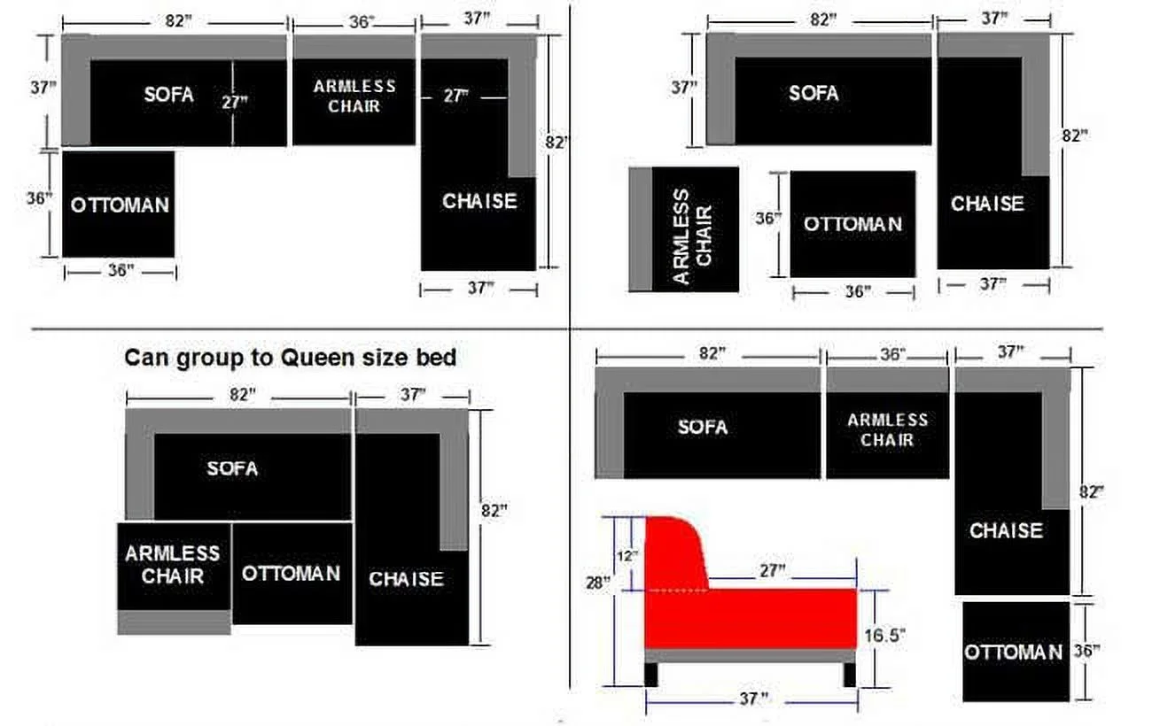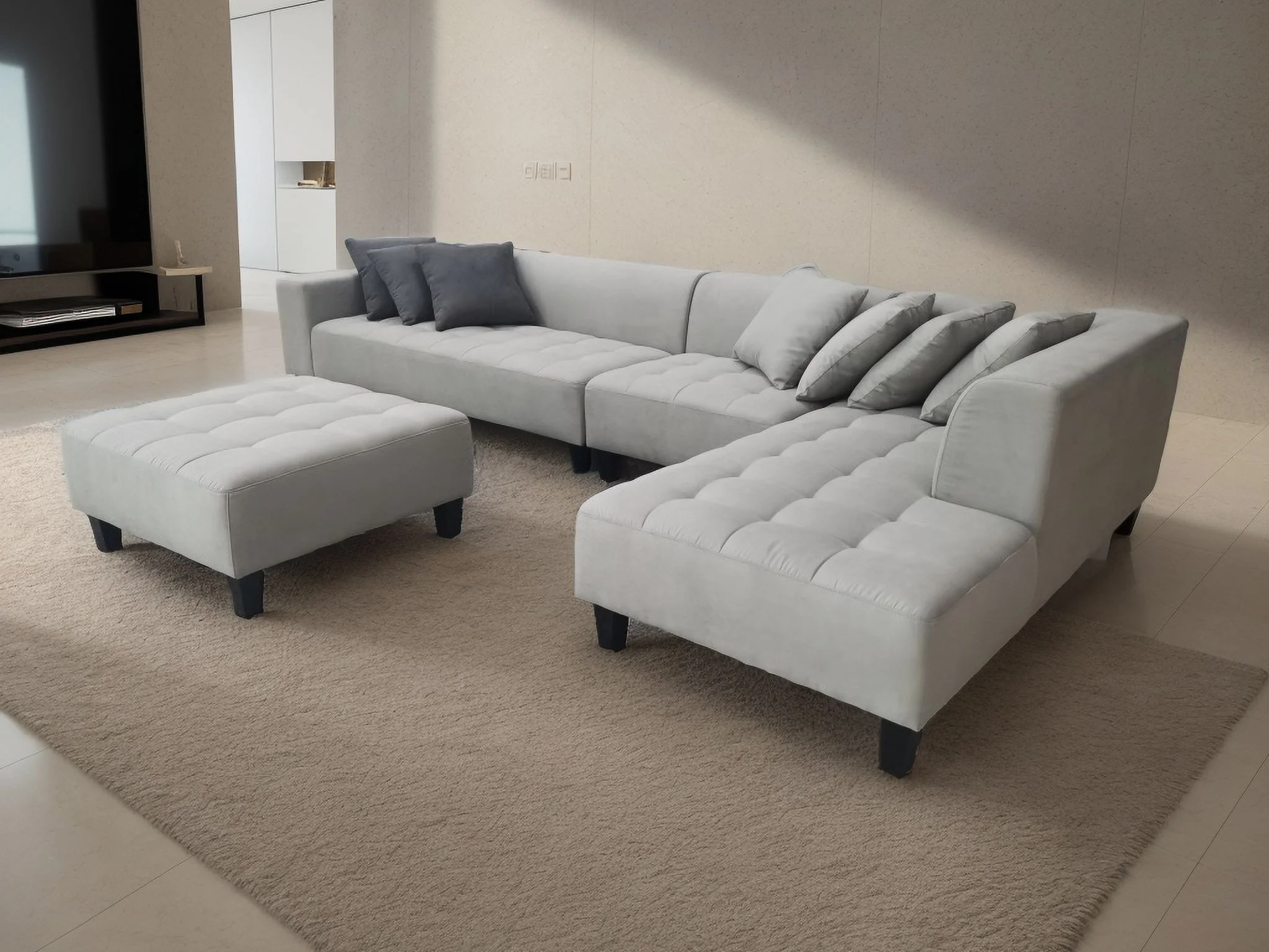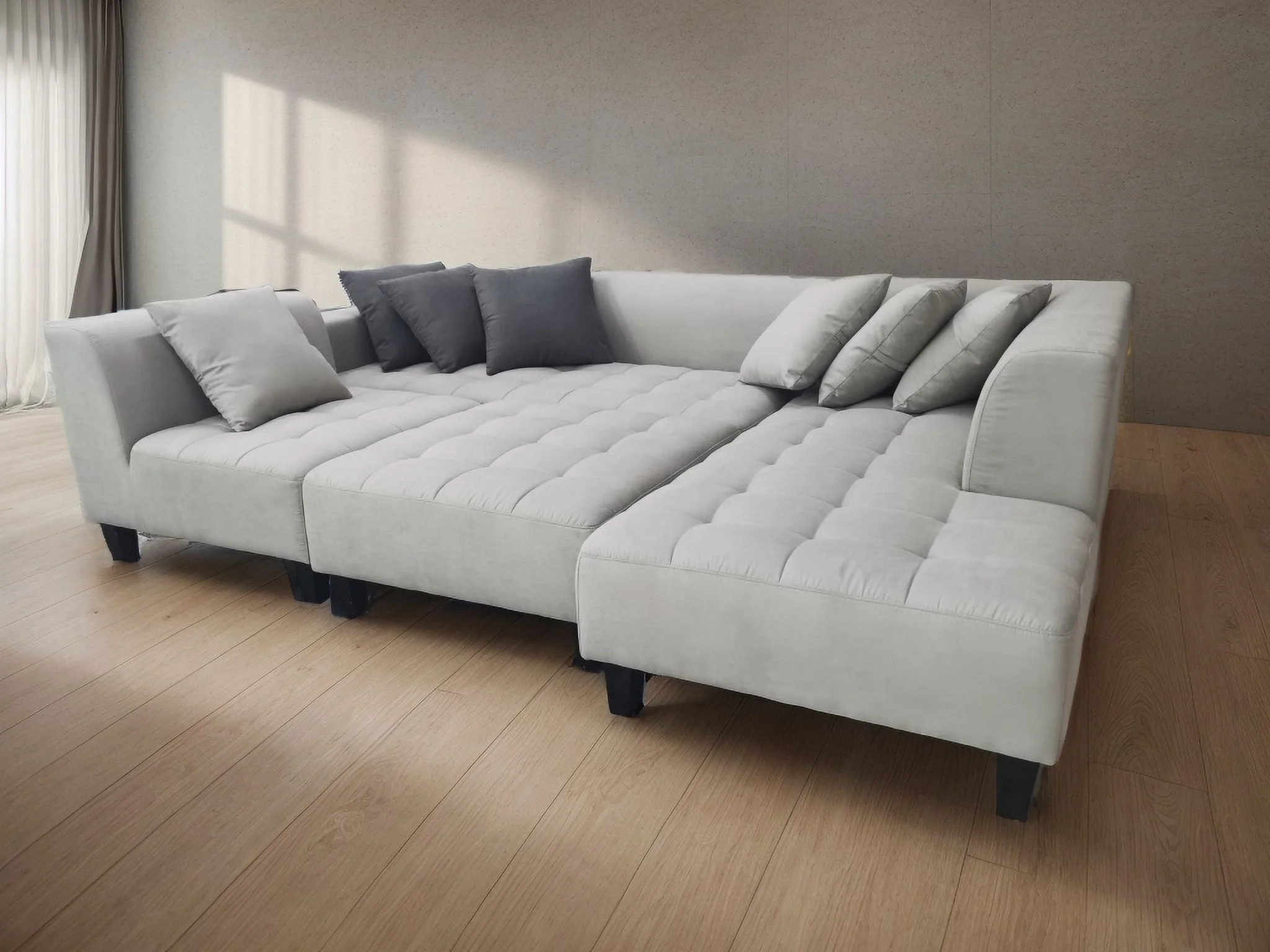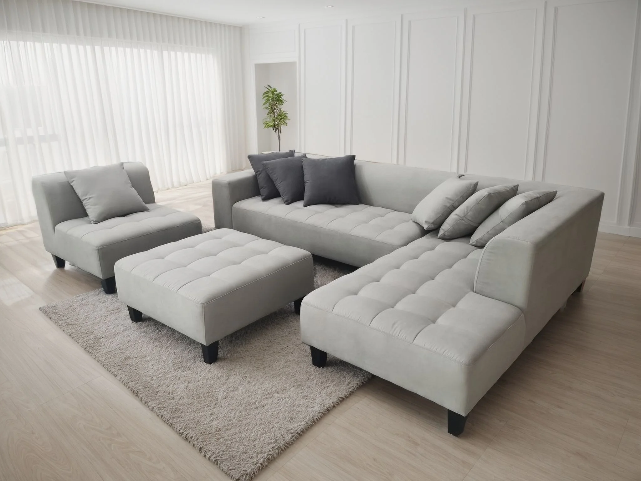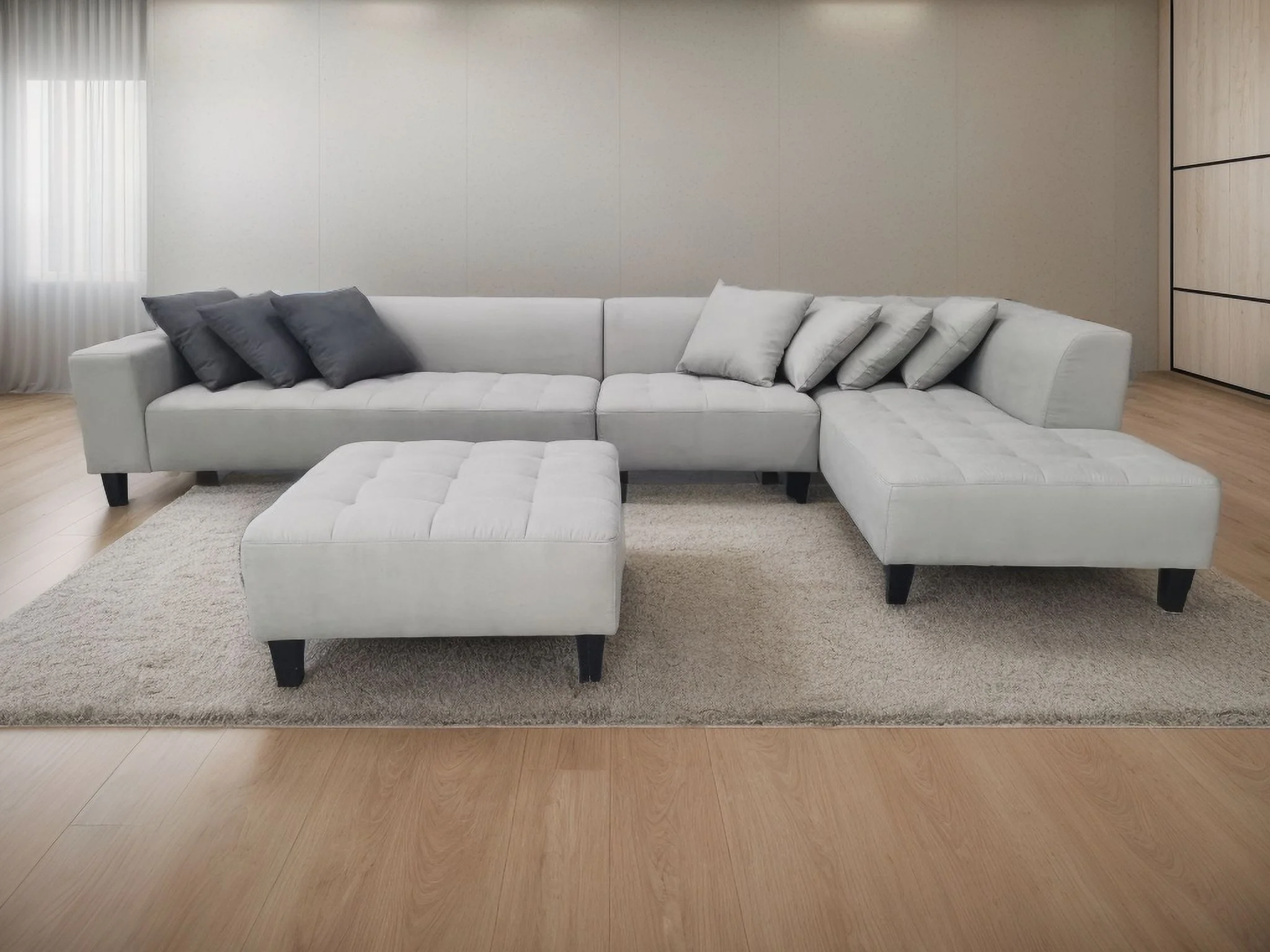Stendmar 4pc 117" to 153" Modern Grey Microfiber Sectional Sofa Chaise Chair Ottoman S1107BRG