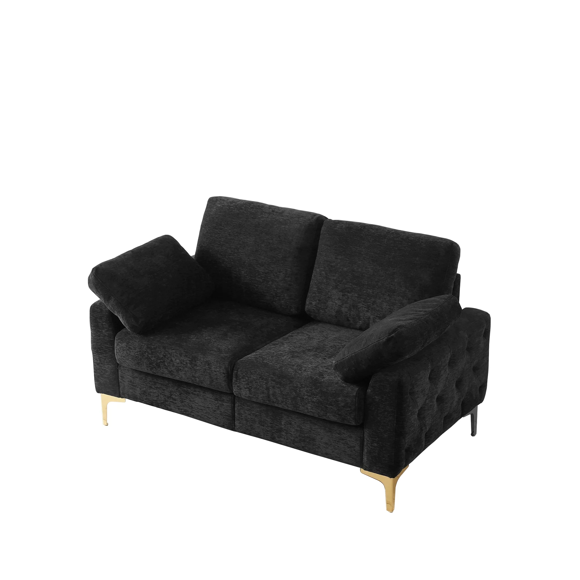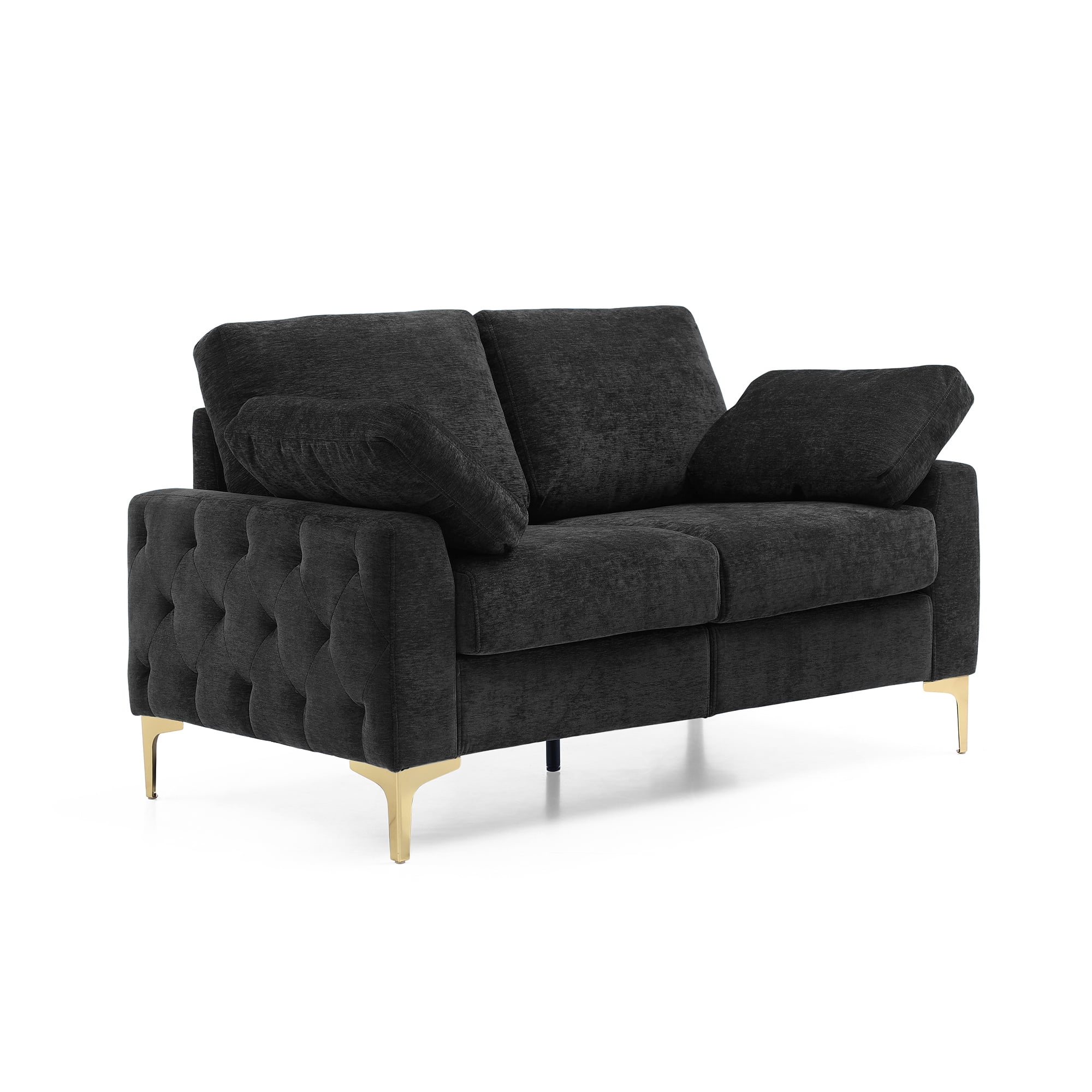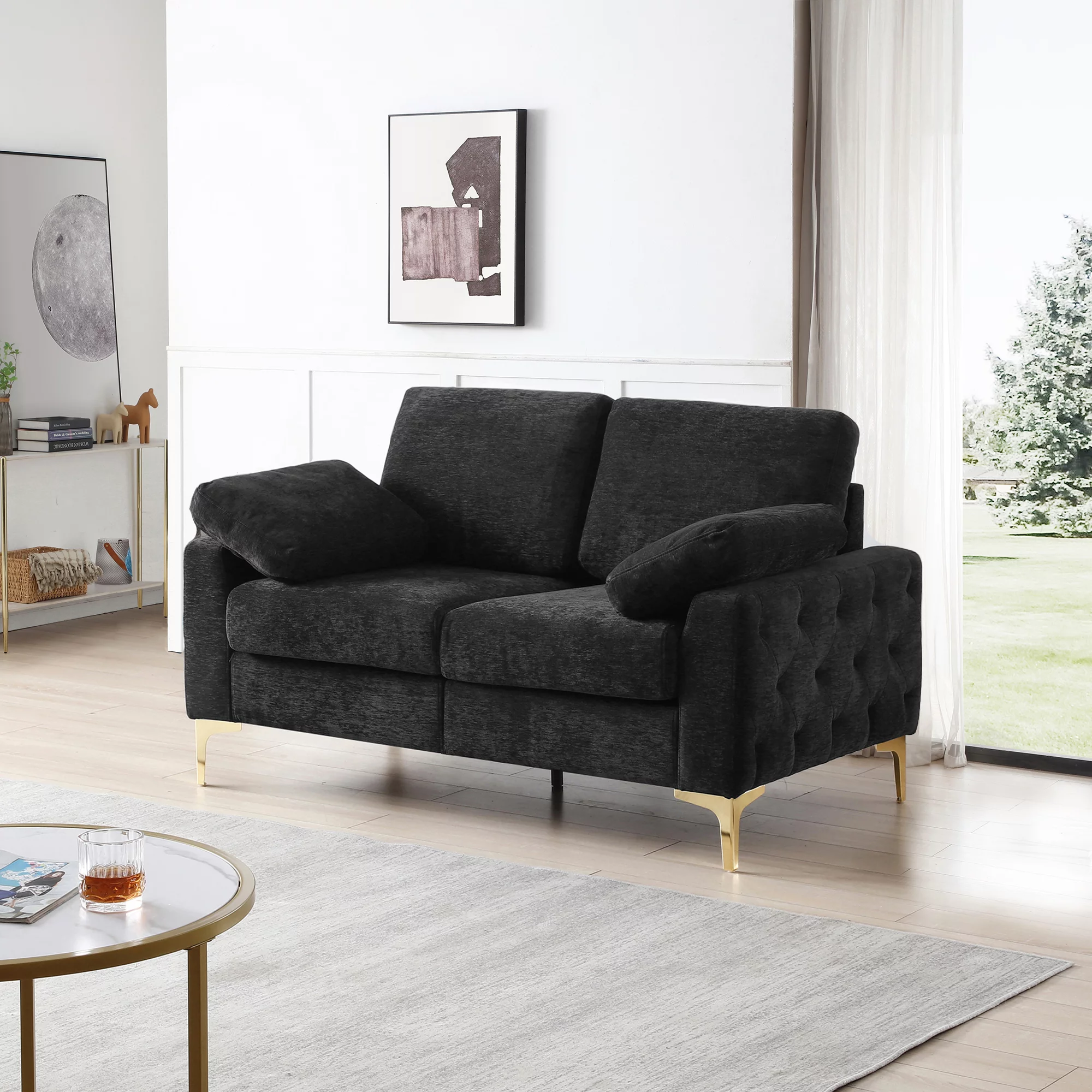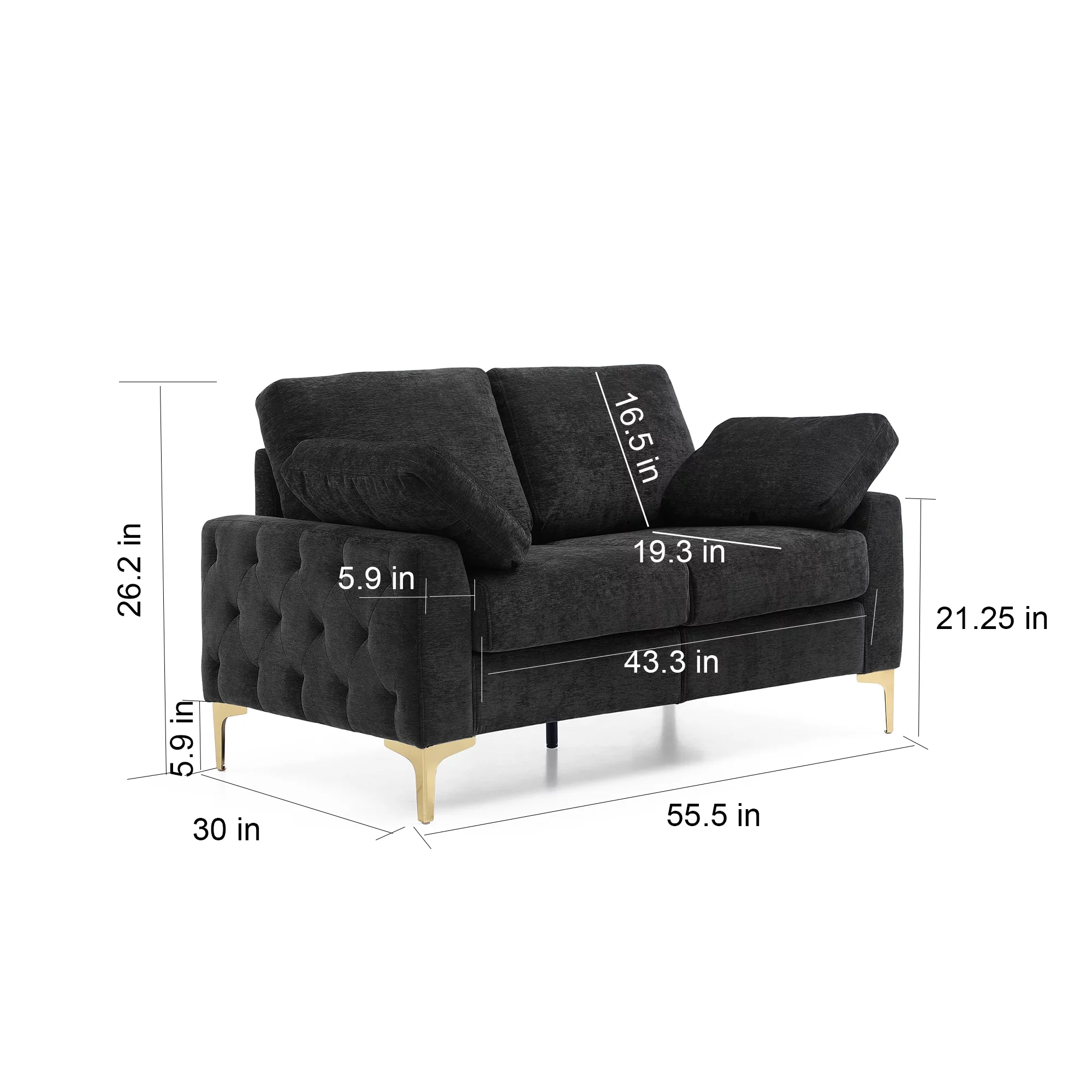 Modern Chenille Upholstered Loveseat, 2 Seater Tufted Sofa Couch with Arm Pillows Metal Legs Removable Cushions for Living Room Bedroom Apartment