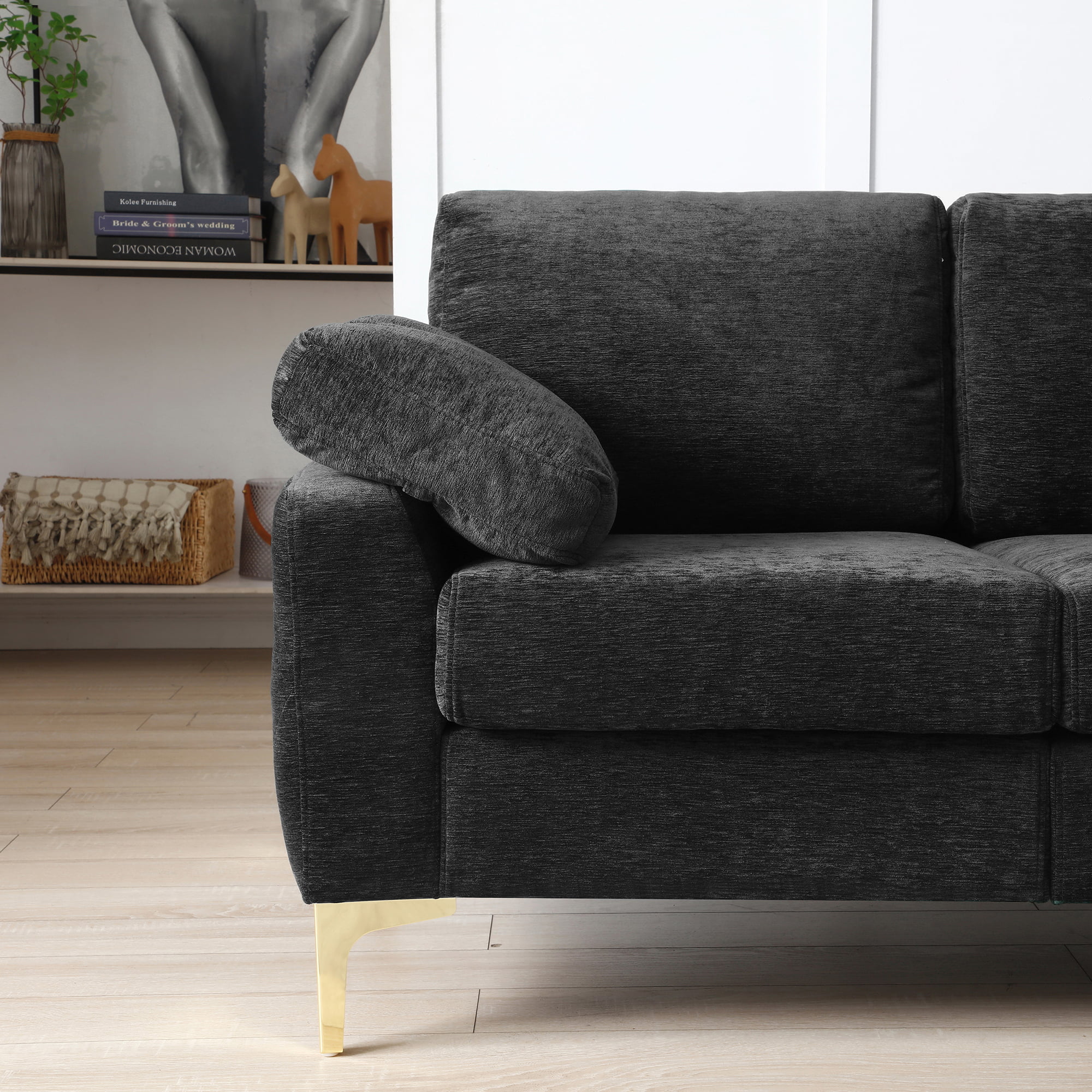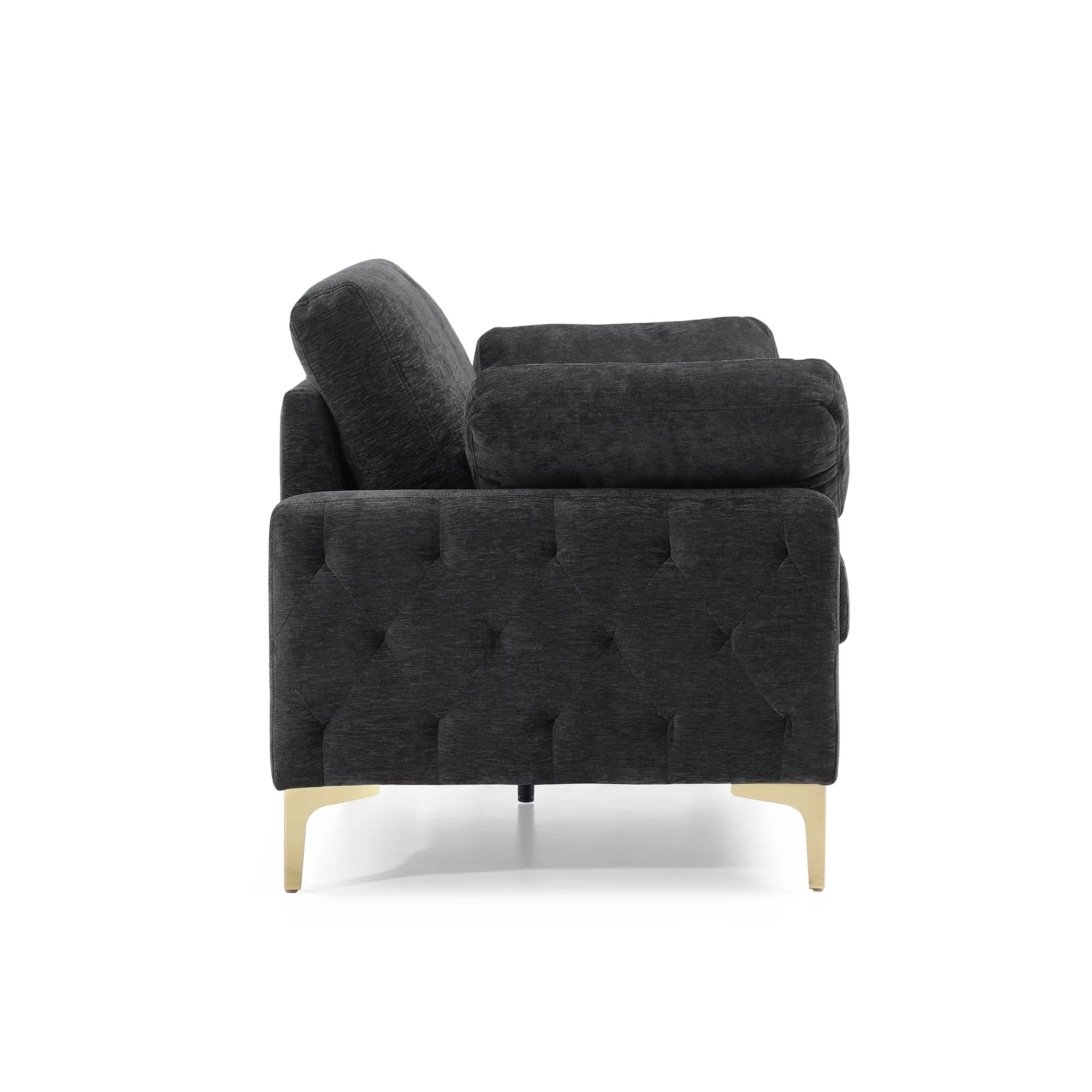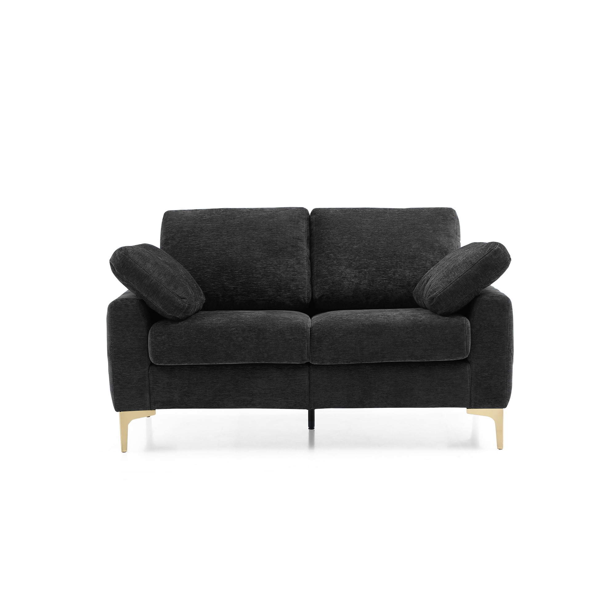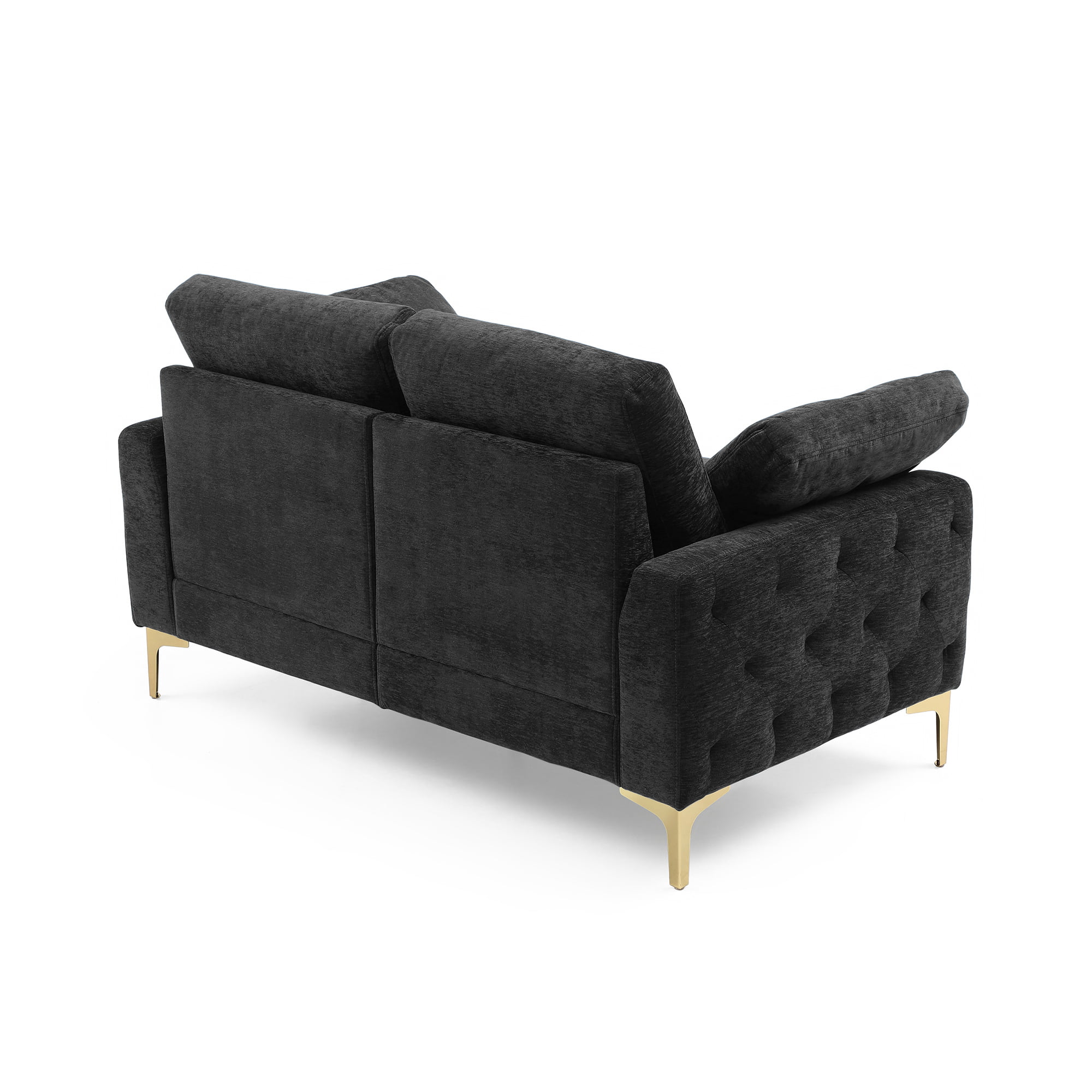 Modern Chenille Upholstered Loveseat, 2 Seater Tufted Sofa Couch with Arm Pillows Metal Legs Removable Cushions for Living Room Bedroom Apartment