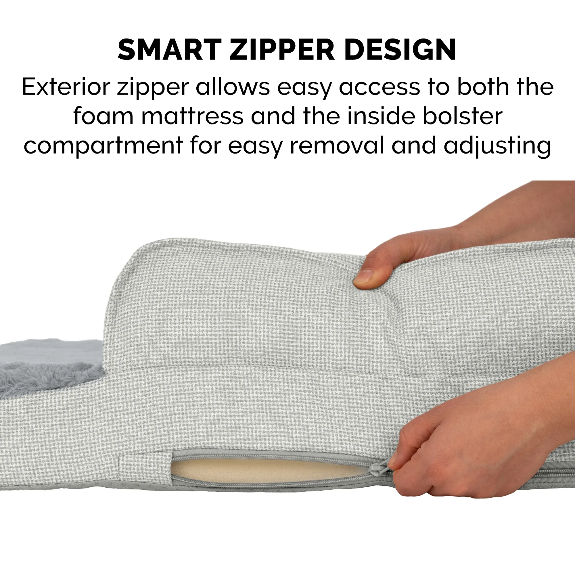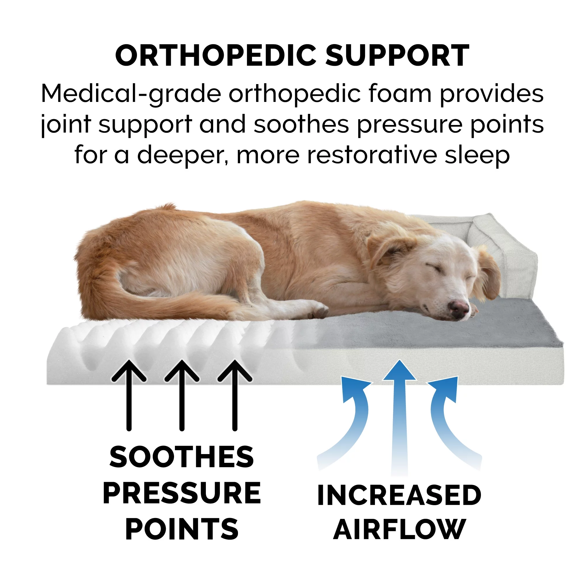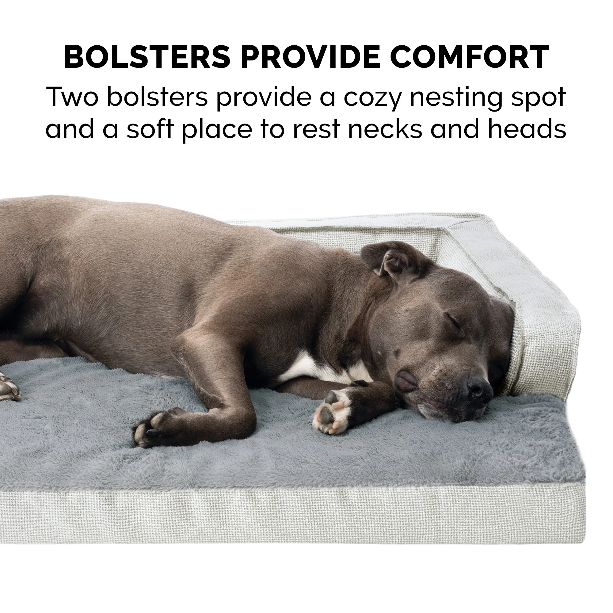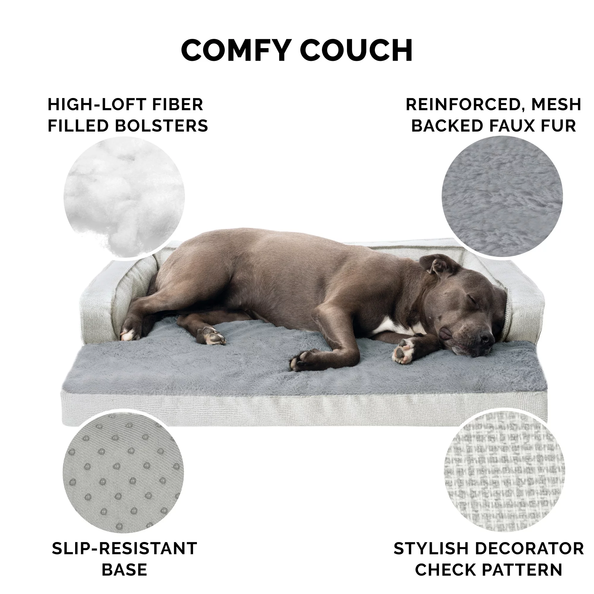 FurHaven Pet Products Large Plush & Decorator Check Orthopedic Comfy Couch Dog Bed, Gray